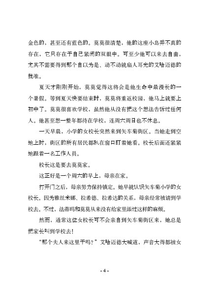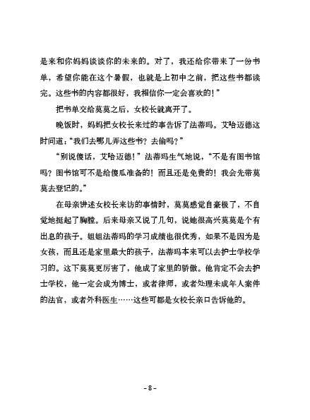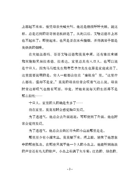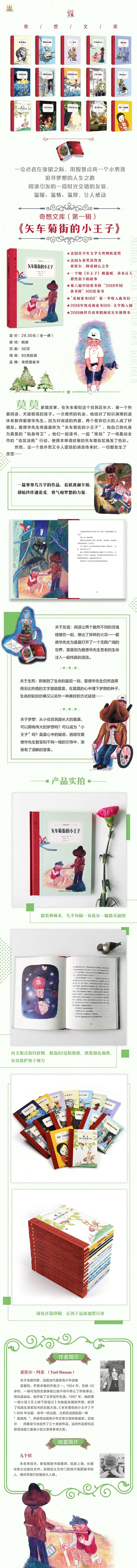 这本书讲述了一个爱与友谊的温暖故事:退休老教师爱德华在生命的*后日子,用无私的爱点亮了小男孩莫莫的人生。《矢车菊街的小王子》同《小王子》一样,不仅仅是写给孩子的,更是写给大人的。愿孩子们在读完这本书后,能像莫莫一样,发现更多的人生可能性,坚定地追寻自己的梦想。愿大人或家长们能像爱德华先生一样,领悟到教育的真谛,在孩子的生活中注入爱与美的点滴,精心呵护孩子心中的那个“小王子”。毕竟,成长中的每一次“破茧成蝶”都需要得到鼓励与支持。
