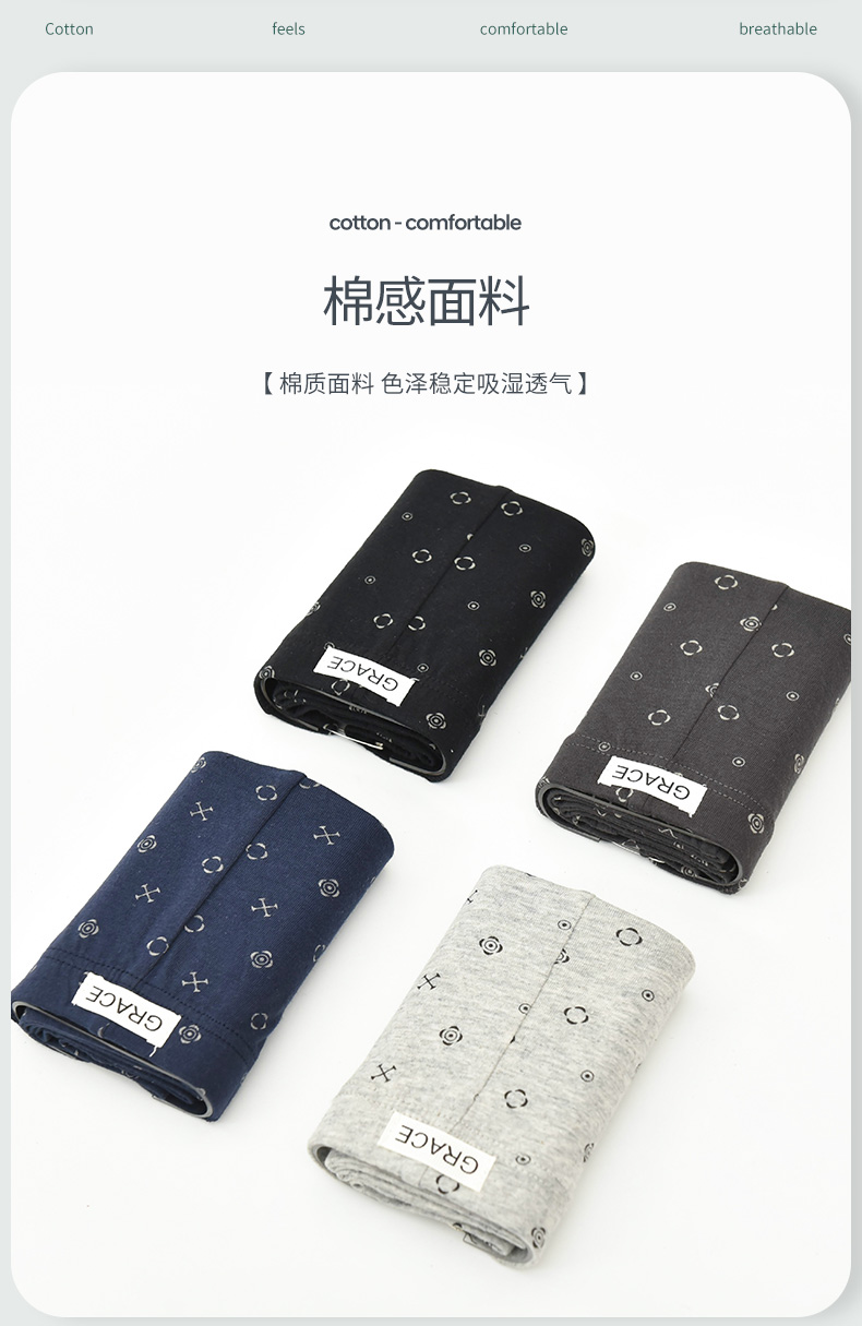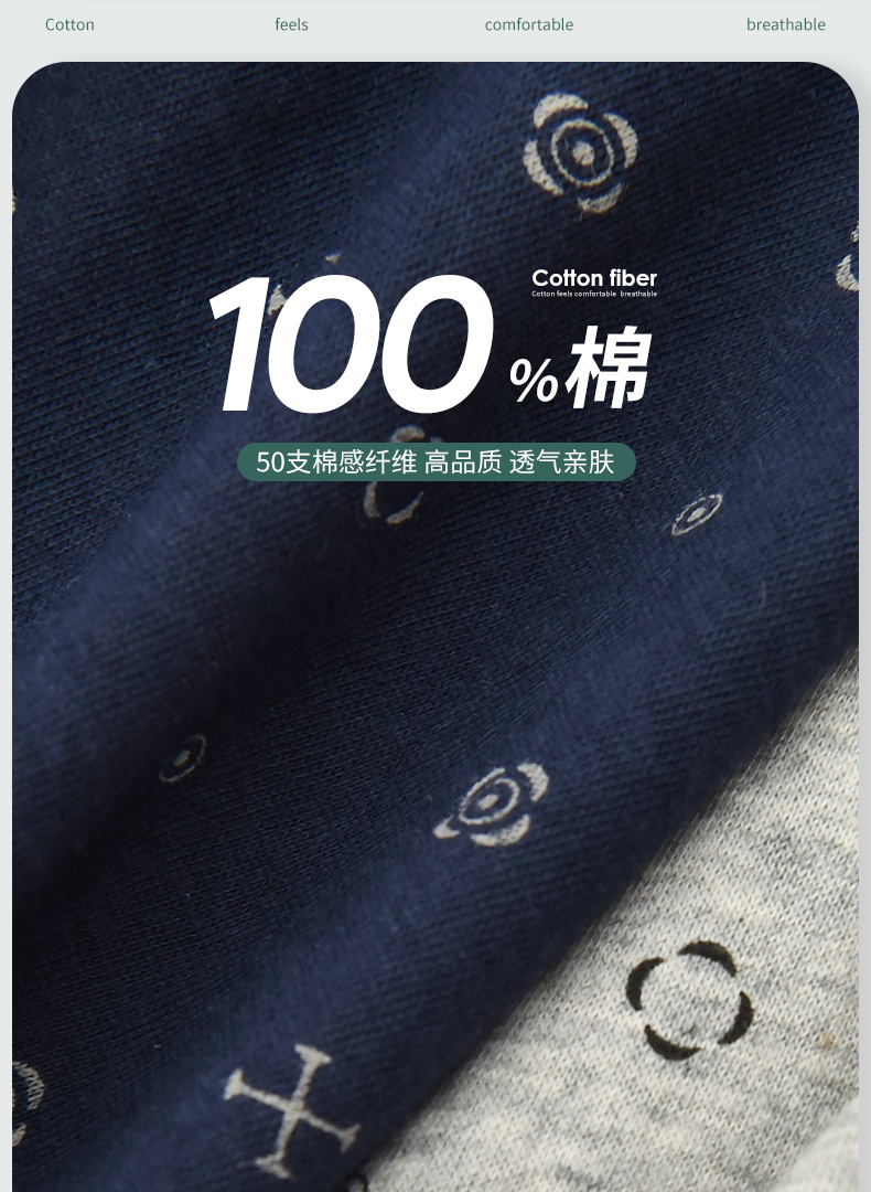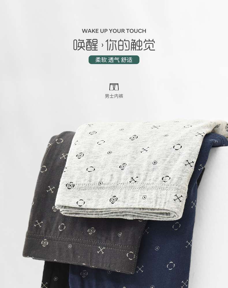 洁丽雅中腰纯棉男士内裤运动休闲印花青年男生裤头裤衩平角内裤男