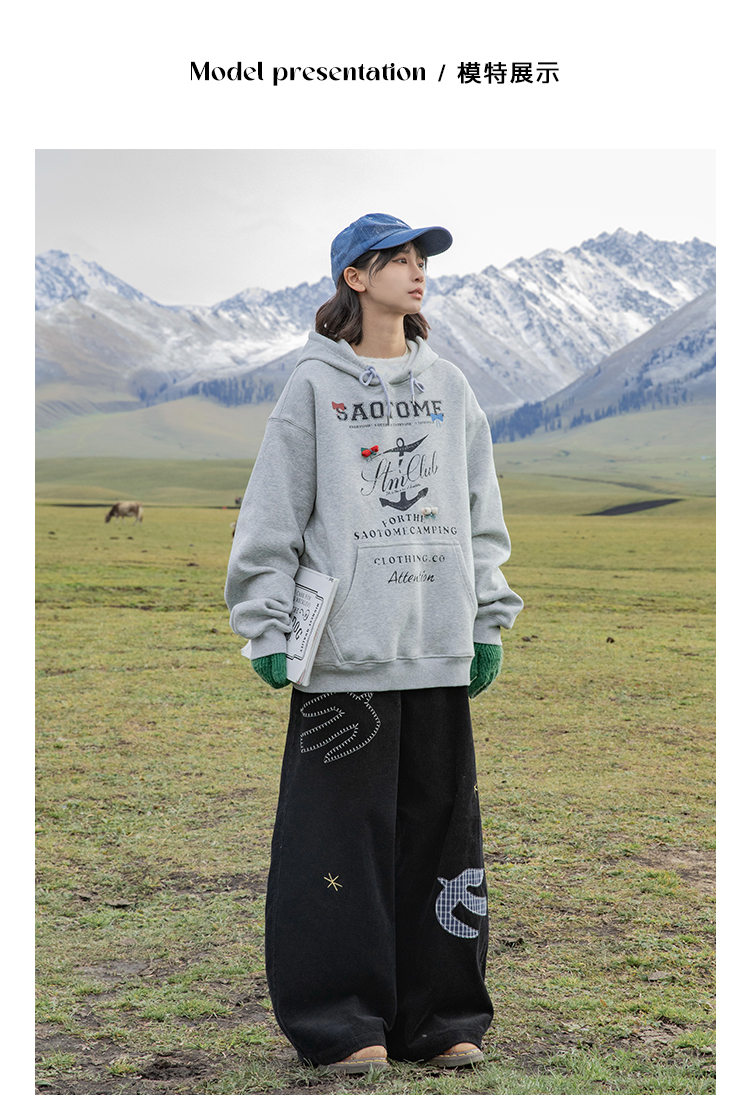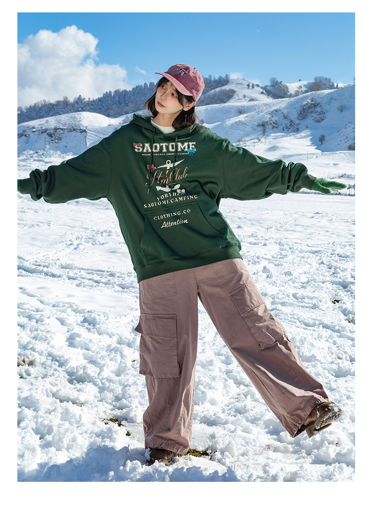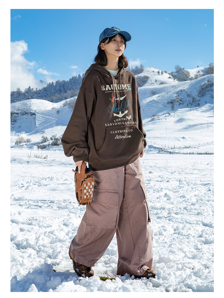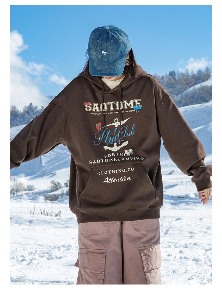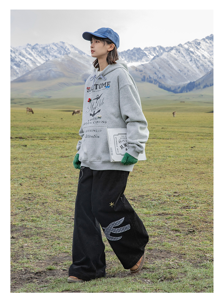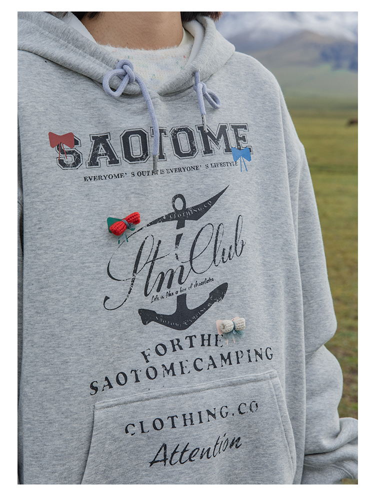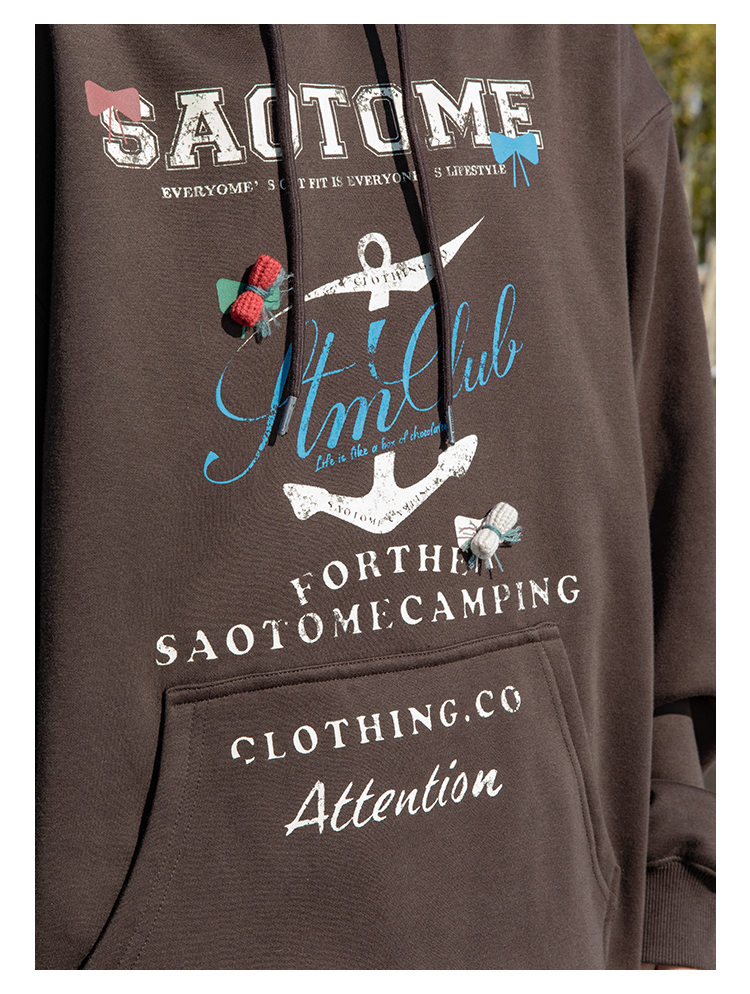 早乙女惠子saotome/STMWY244493/做旧印花蝴蝶结连帽卫衣