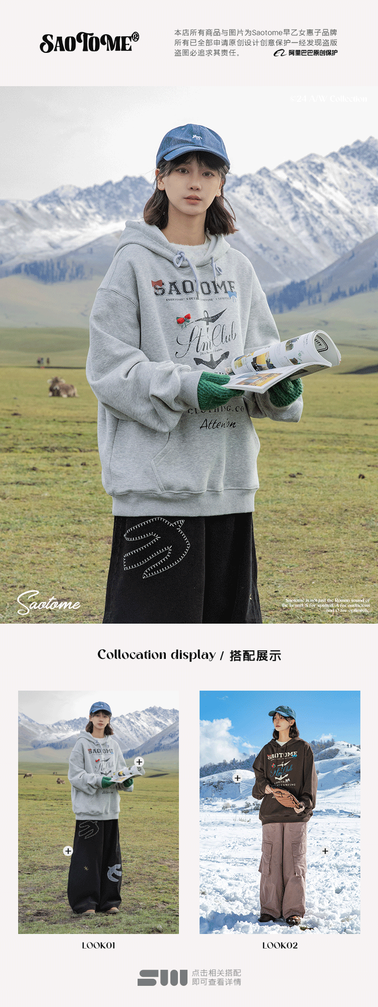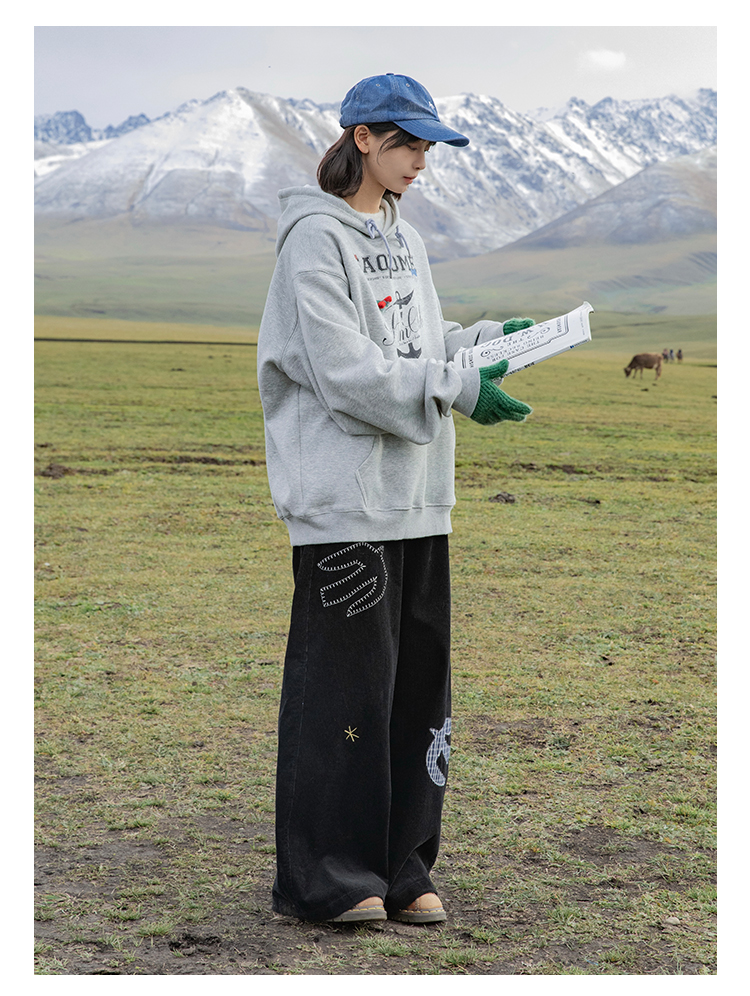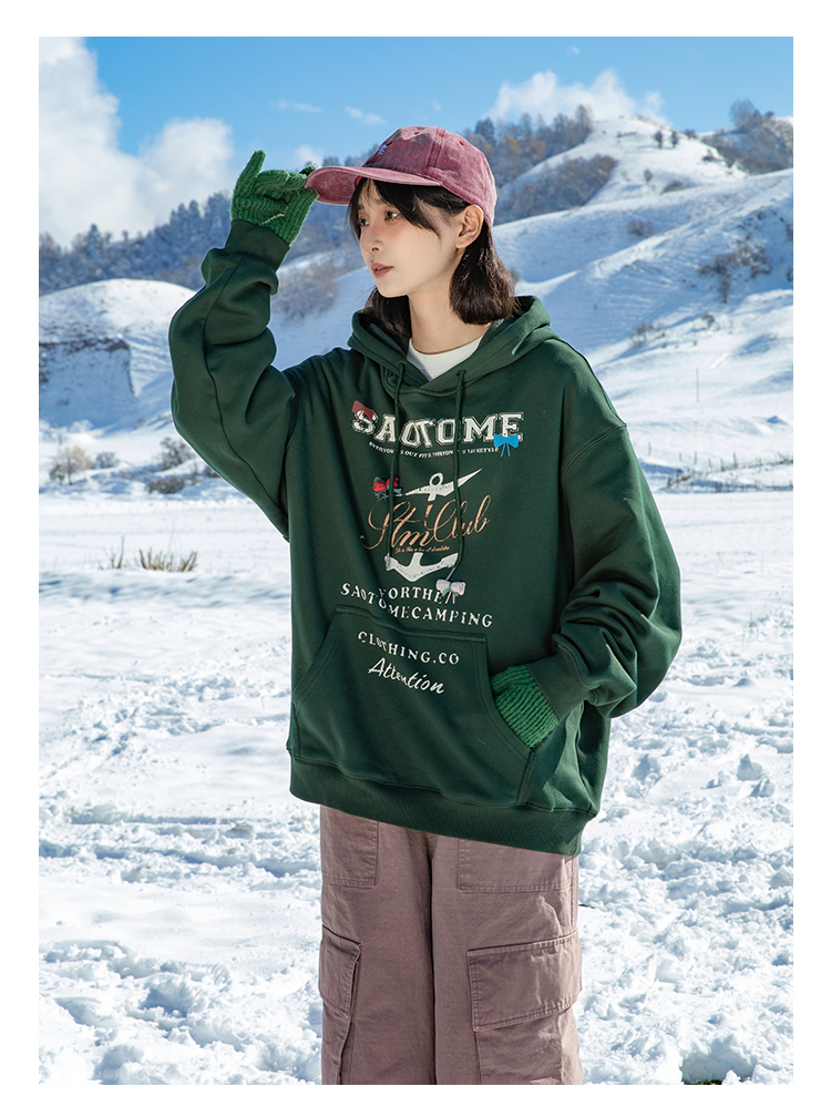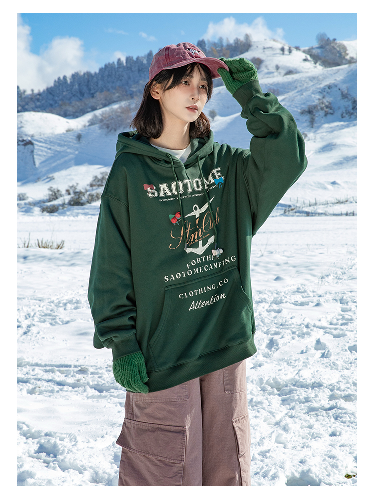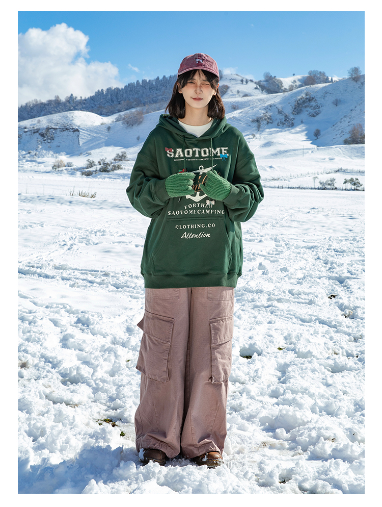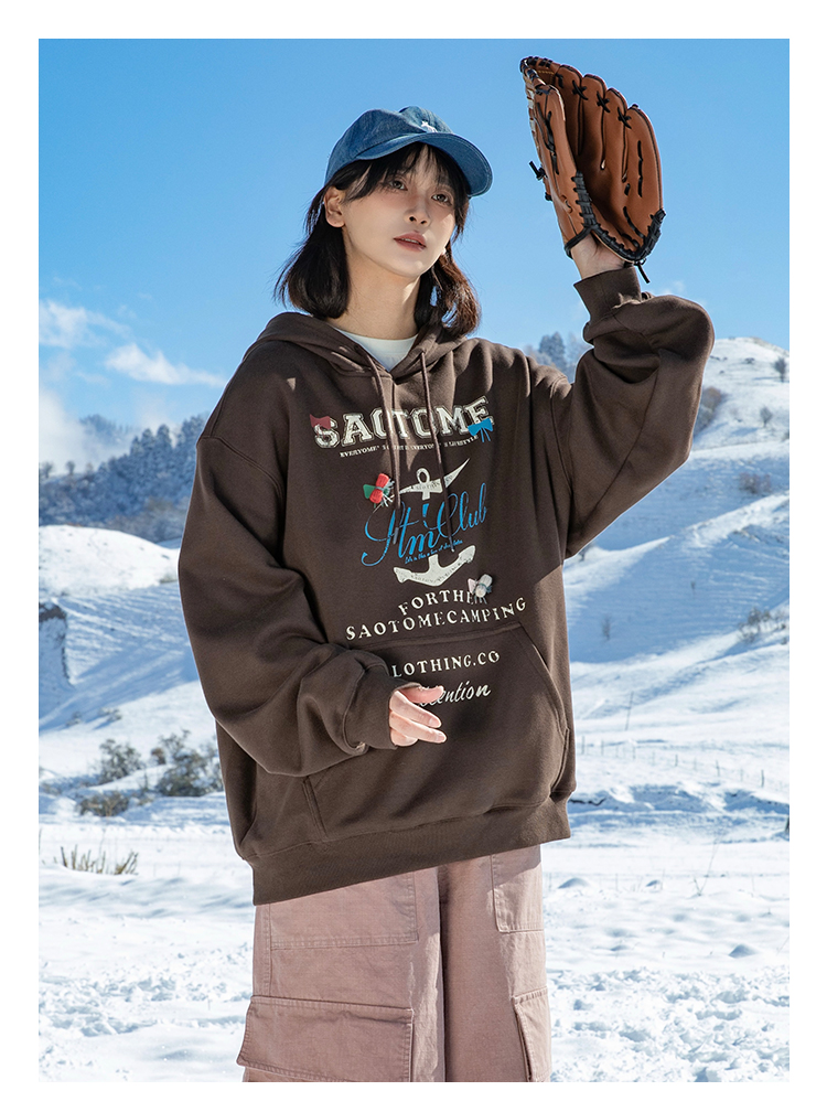 早乙女惠子saotome/STMWY244493/做旧印花蝴蝶结连帽卫衣
