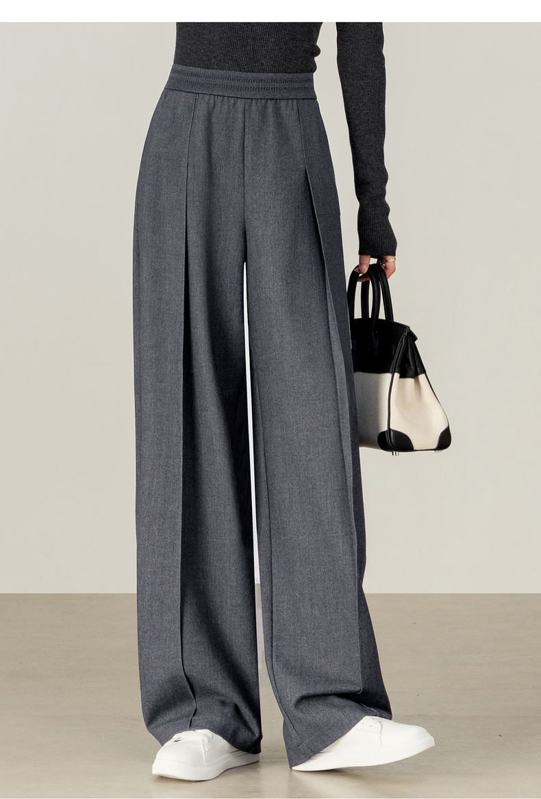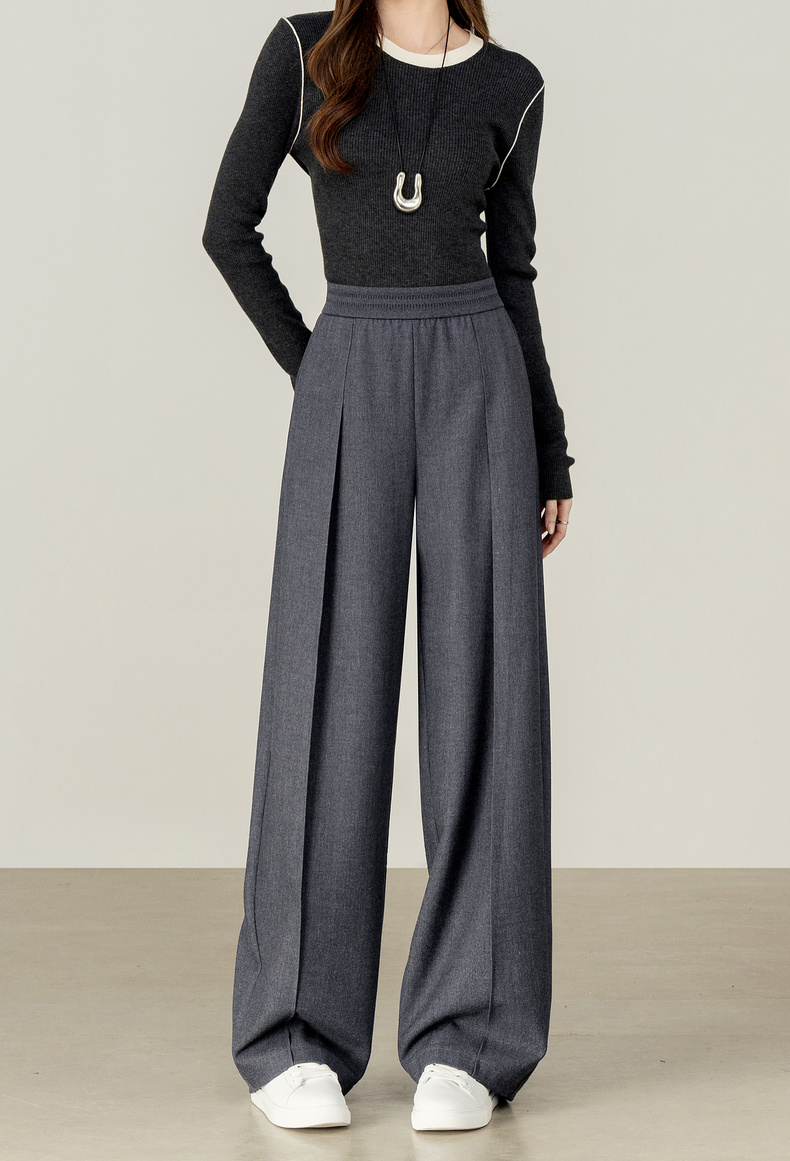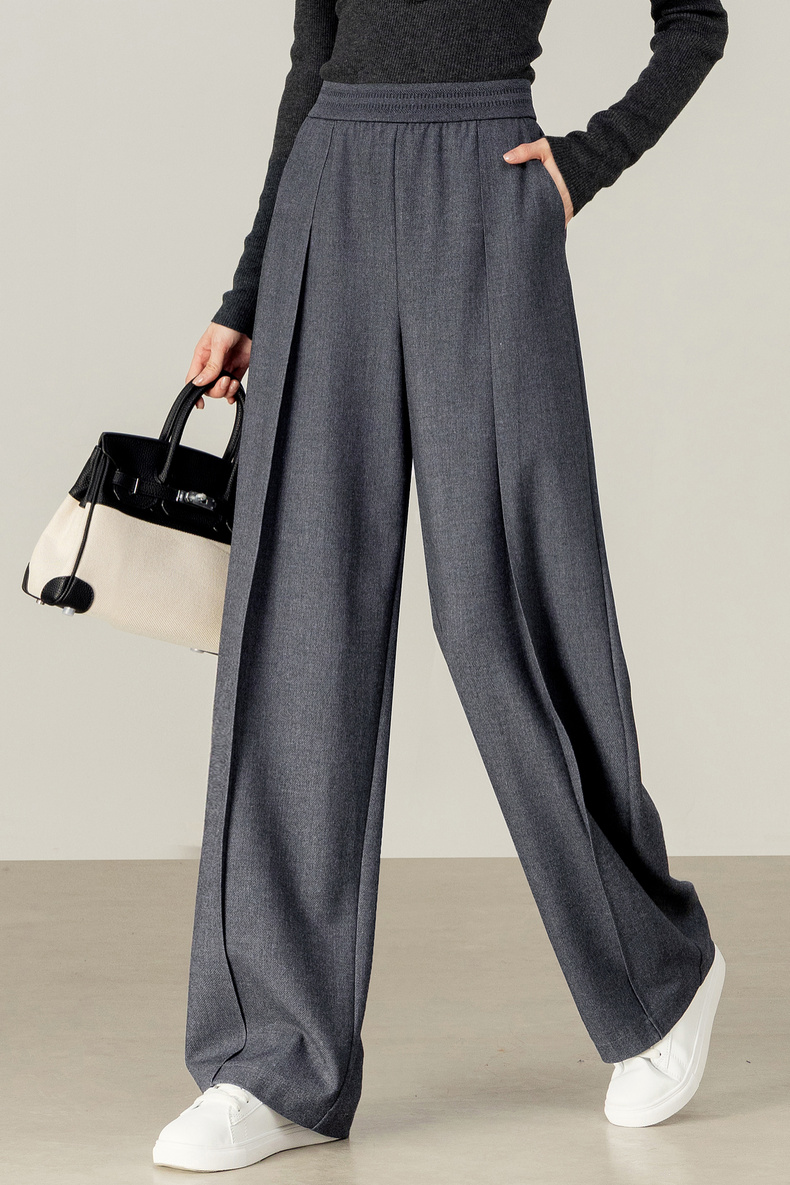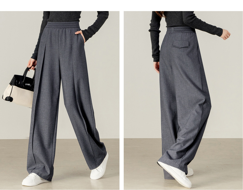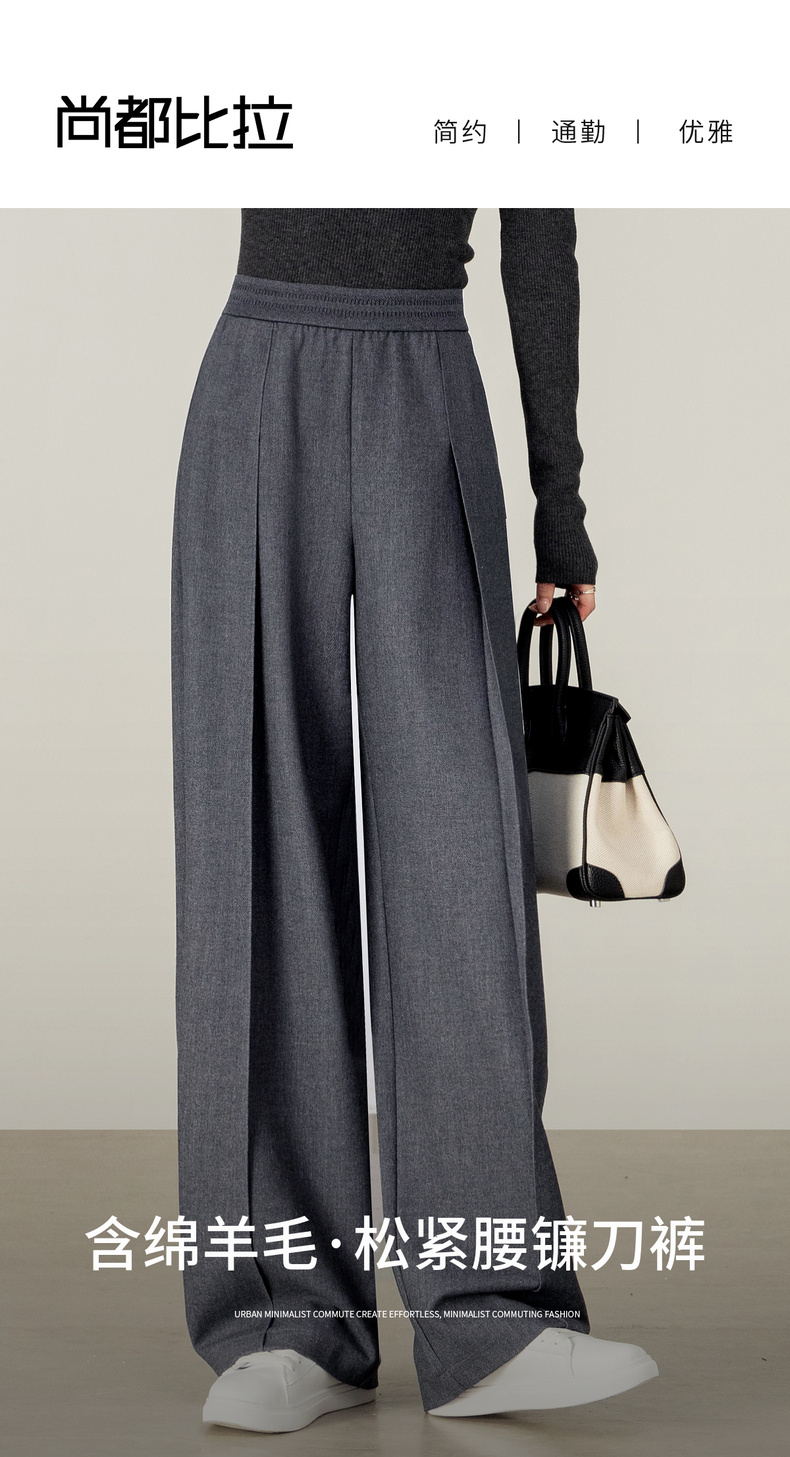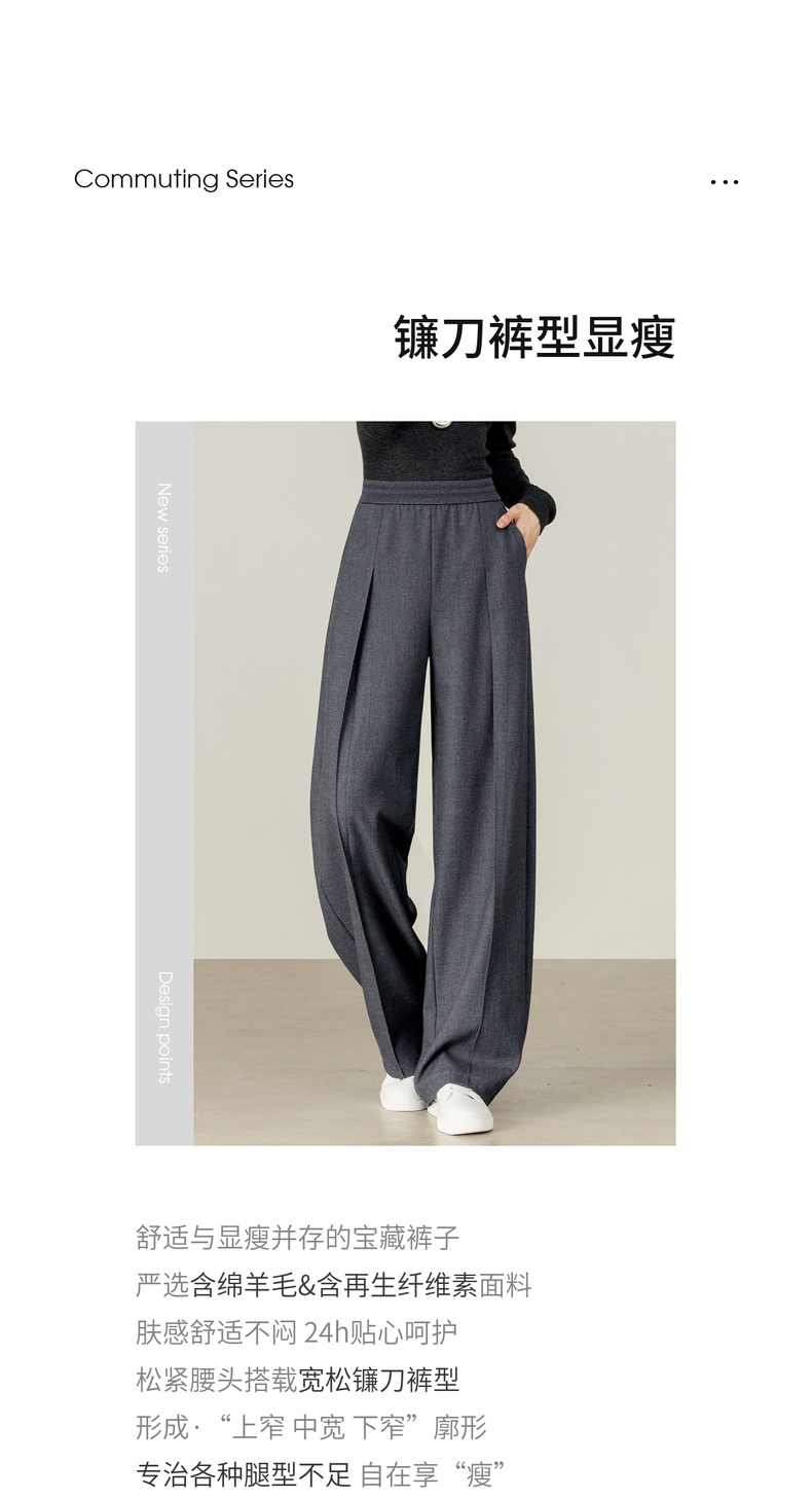 【内购】【含绵羊毛】通勤梨型身材松紧腰立体中缝线宽松显瘦镰刀裤长裤-153KN1628