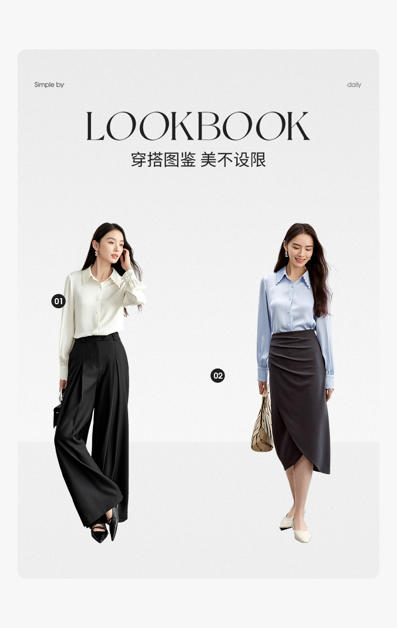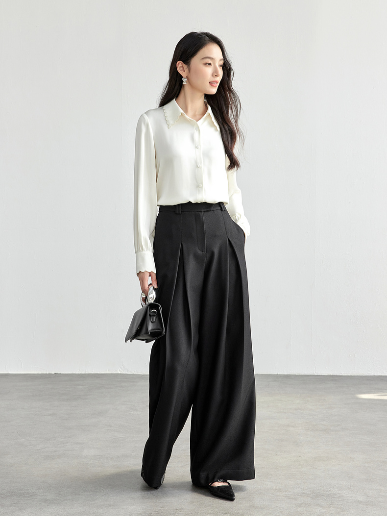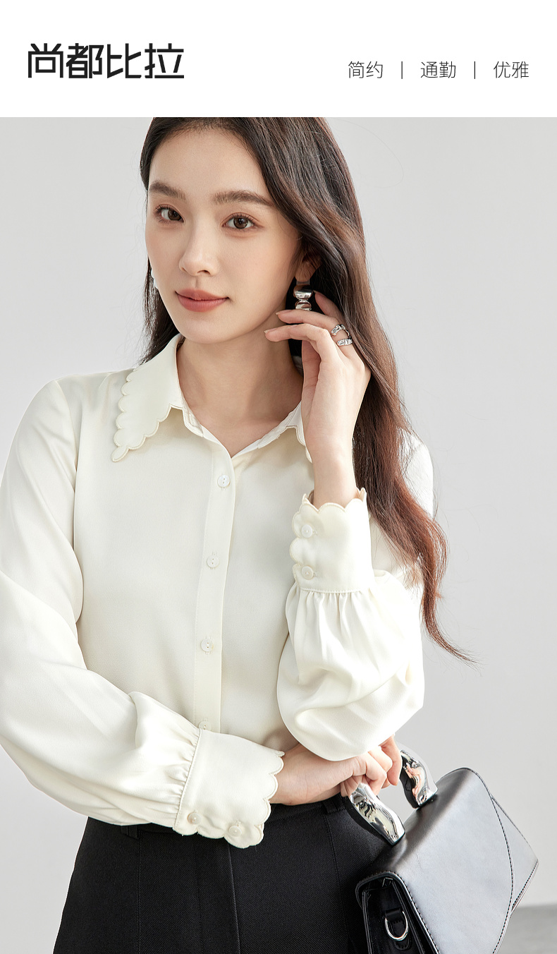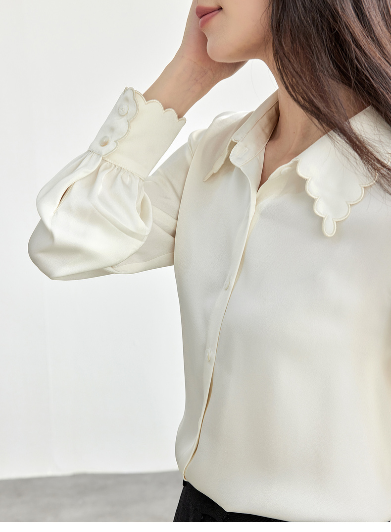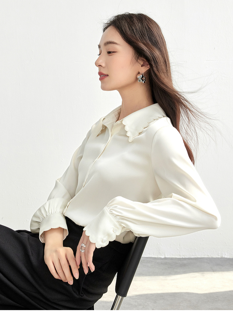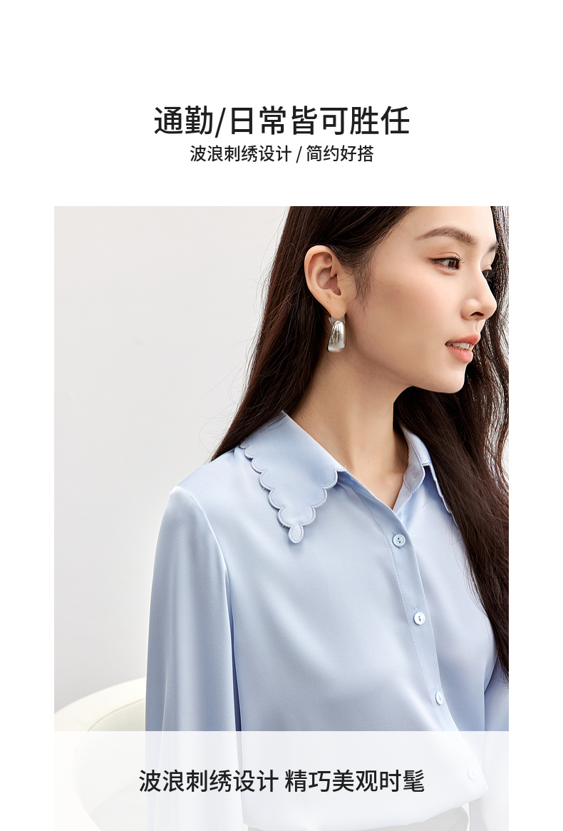 【内购】轻职场通勤上班波浪刺绣衬衣领哑光垂感衬衫-151C57952