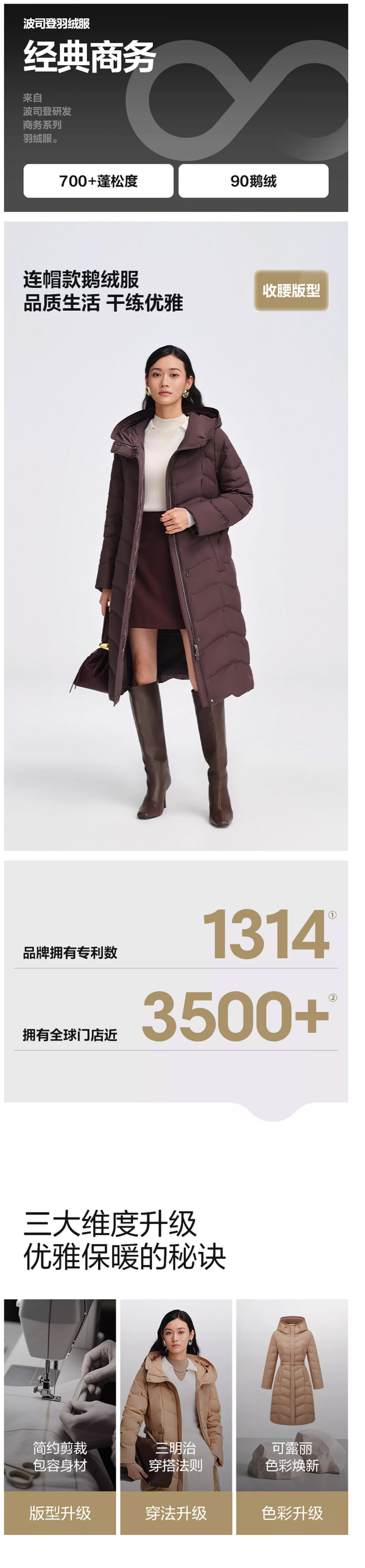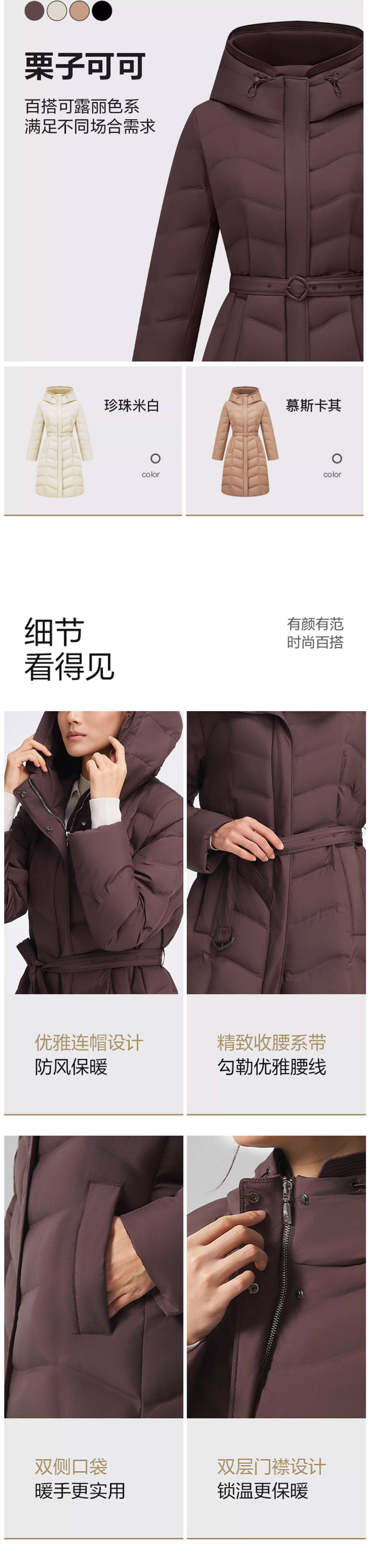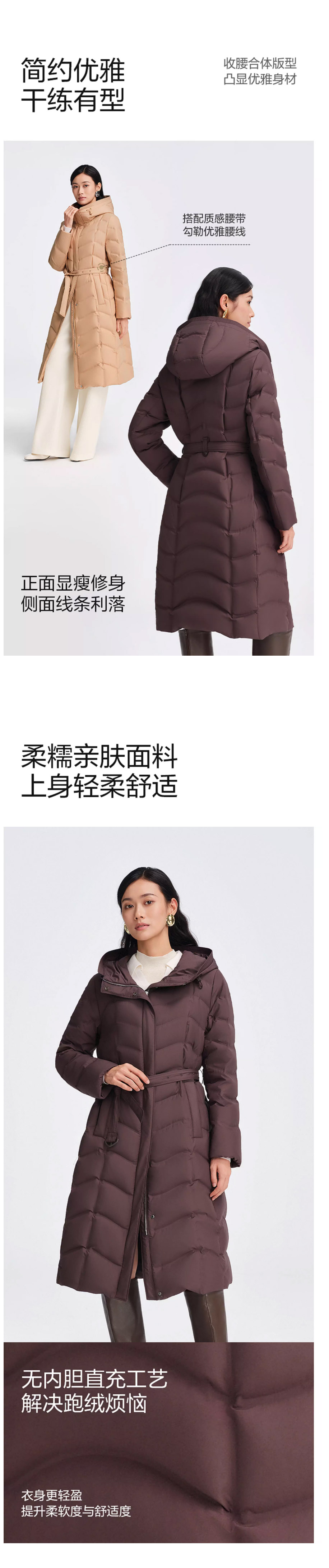 波司登2025秋冬新款女长款鹅绒羽绒服连帽加厚修身外套B250134172