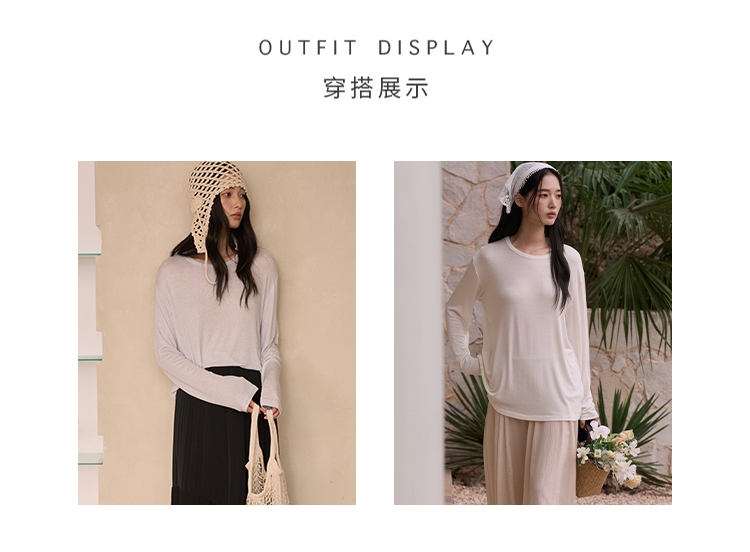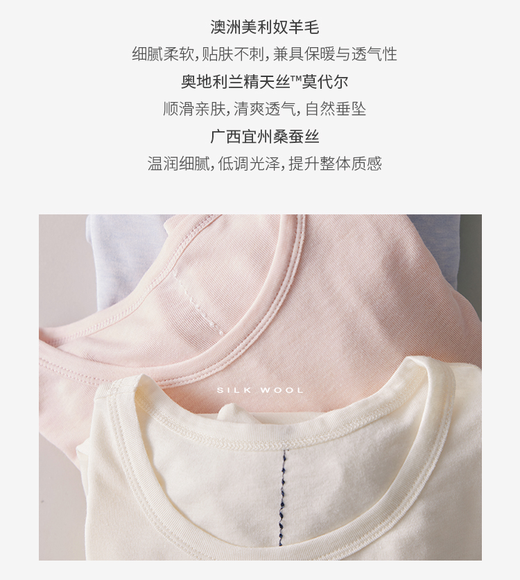 莫代尔混着羊毛和桑蚕丝,贴肤像第二层皮肤,凉丝丝的又带着软糯感,贴身穿完全不想脱下来。而且它巨透气,哪怕夏天也可以当防晒衣穿~