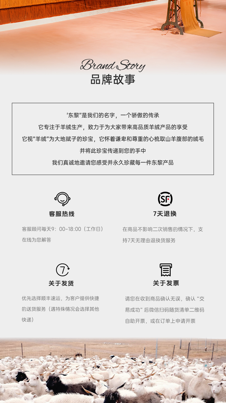 东黎羊绒是赤峰东荣集团自主品牌,自有牧场/羊绒制品全产业链优势,实现了羊绒从“牧场”到“商场”的华丽转变。