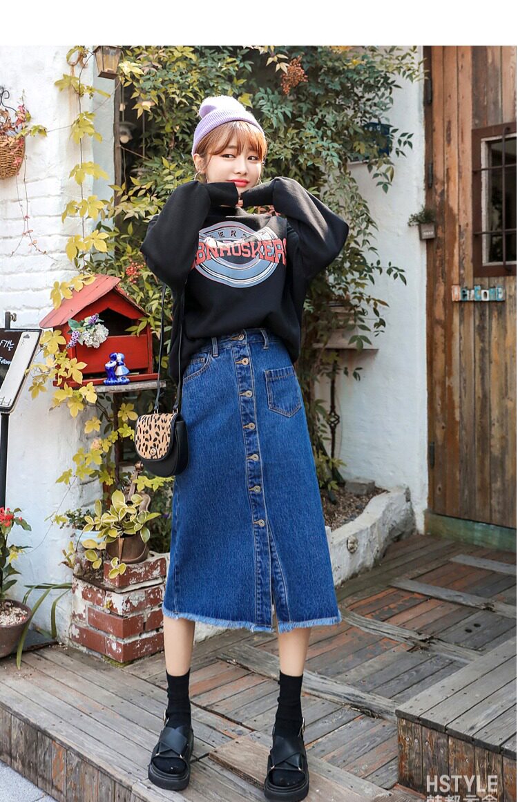 韩都衣舍2019春装新款女韩版裙子a字裙中长款牛仔半身裙DU8925樱
