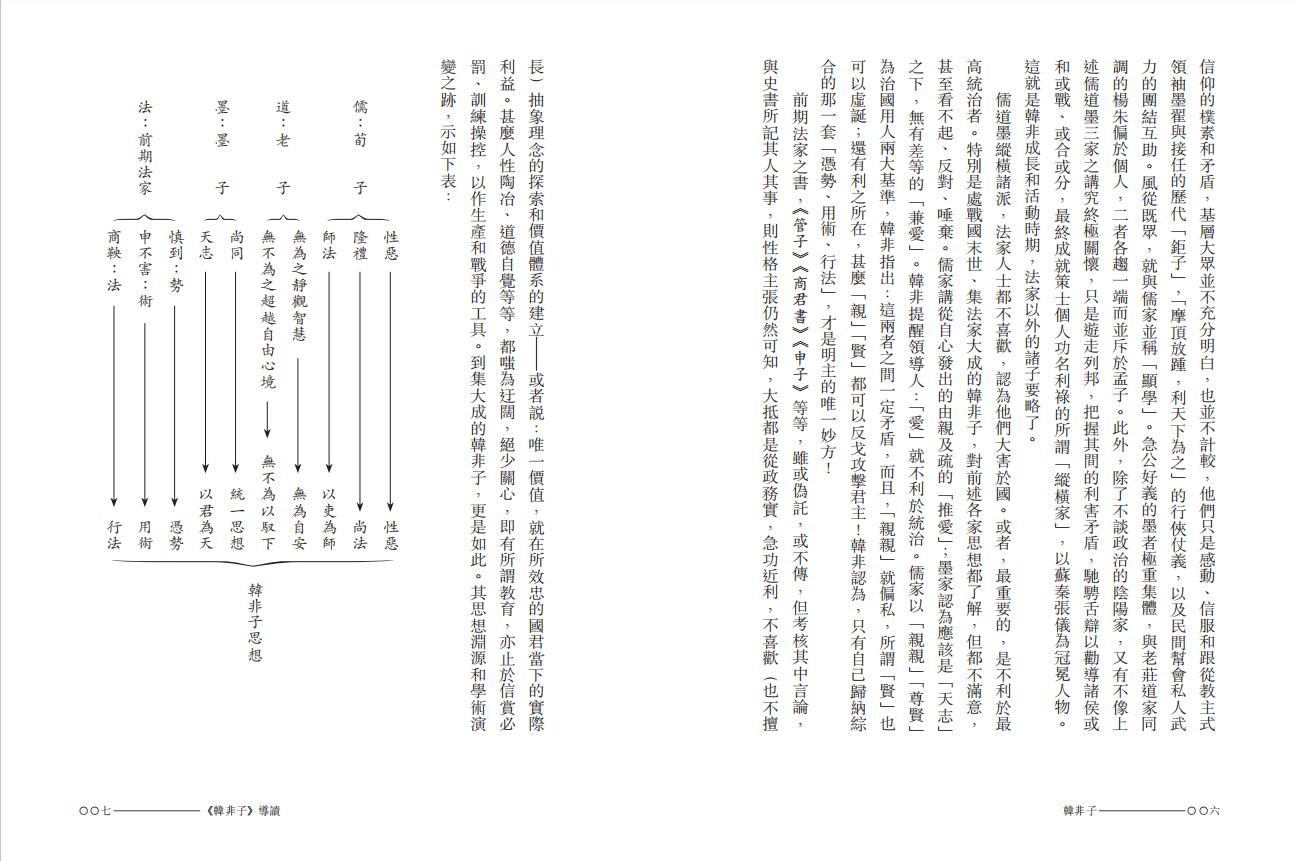 先秦法家思想之集大成者——韓非子,秉持“以霸王之業教君”的宗旨,歸納整合出一套“憑勢、用術、行法”的治國理念,中國第一個極權皇帝,欣賞他,自然也疑忌他;第一個全國的權相,畏忌他,害死他,但更貫徹、執行他的計策。漢以後歷朝政治莫不陽儒陰法,於是韓非死了,而又還沒有死。