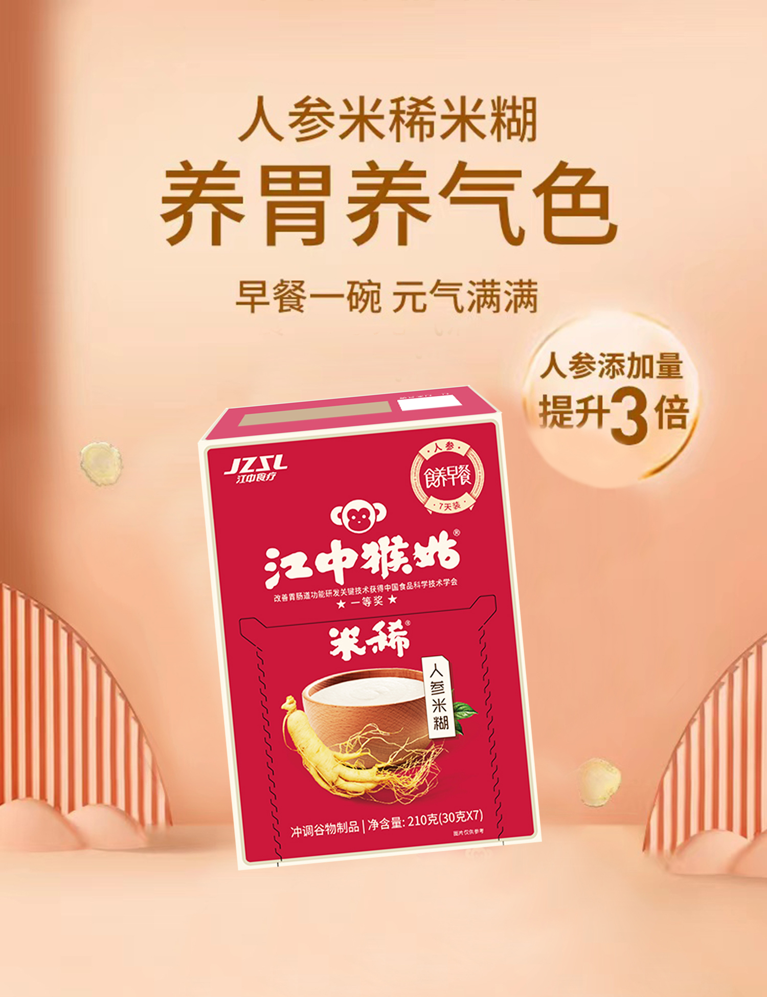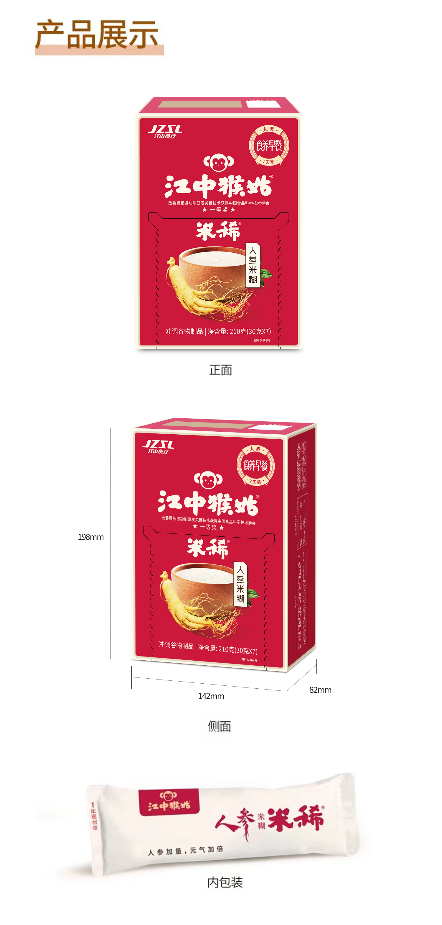 4盒/8盒/13盒*江中猴姑米稀人参米糊210g/7条/盒 营养早餐 人参含量提升3倍保质期至26年10月