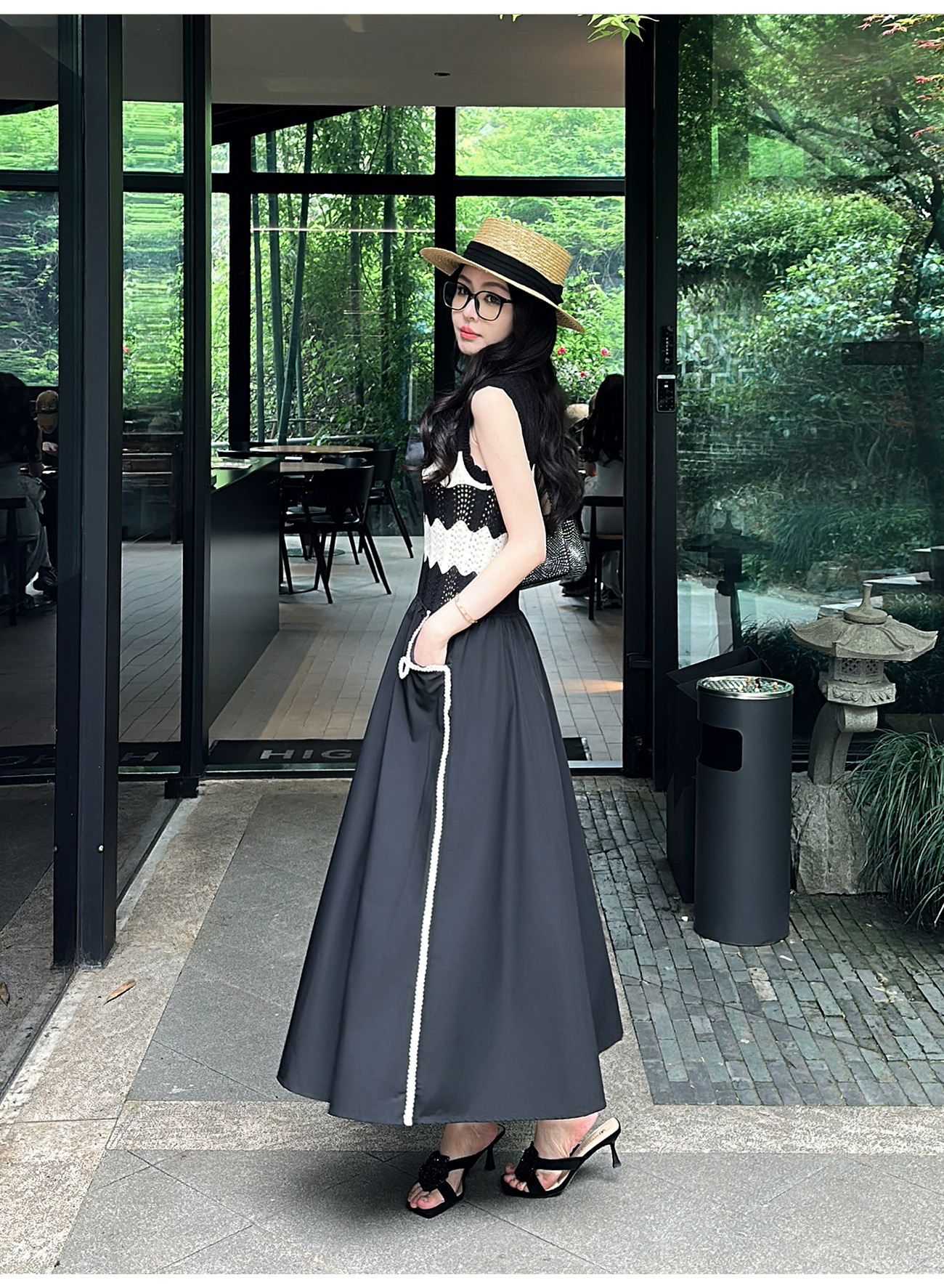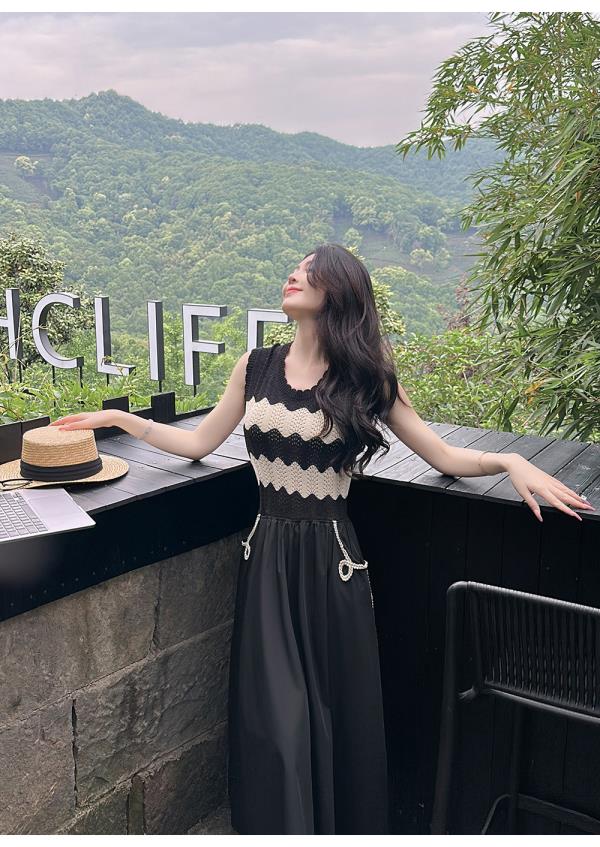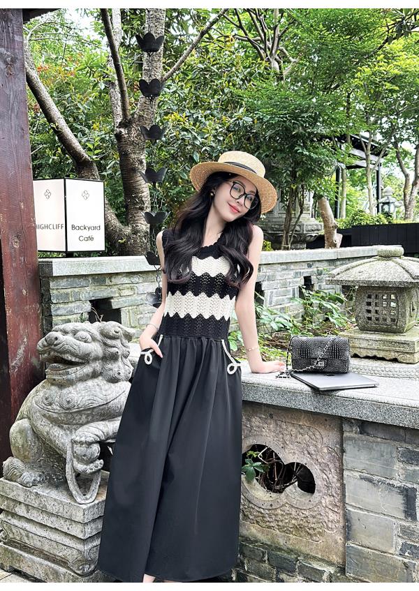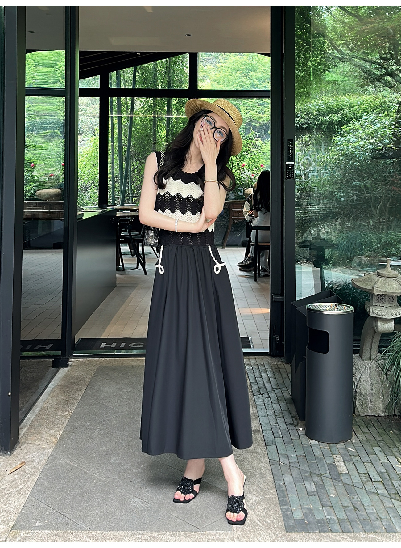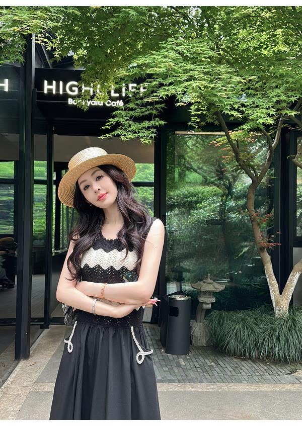 BeQueenStory【黑白情调】设计感拼接大A版背心裙&圆领短袖毛衫