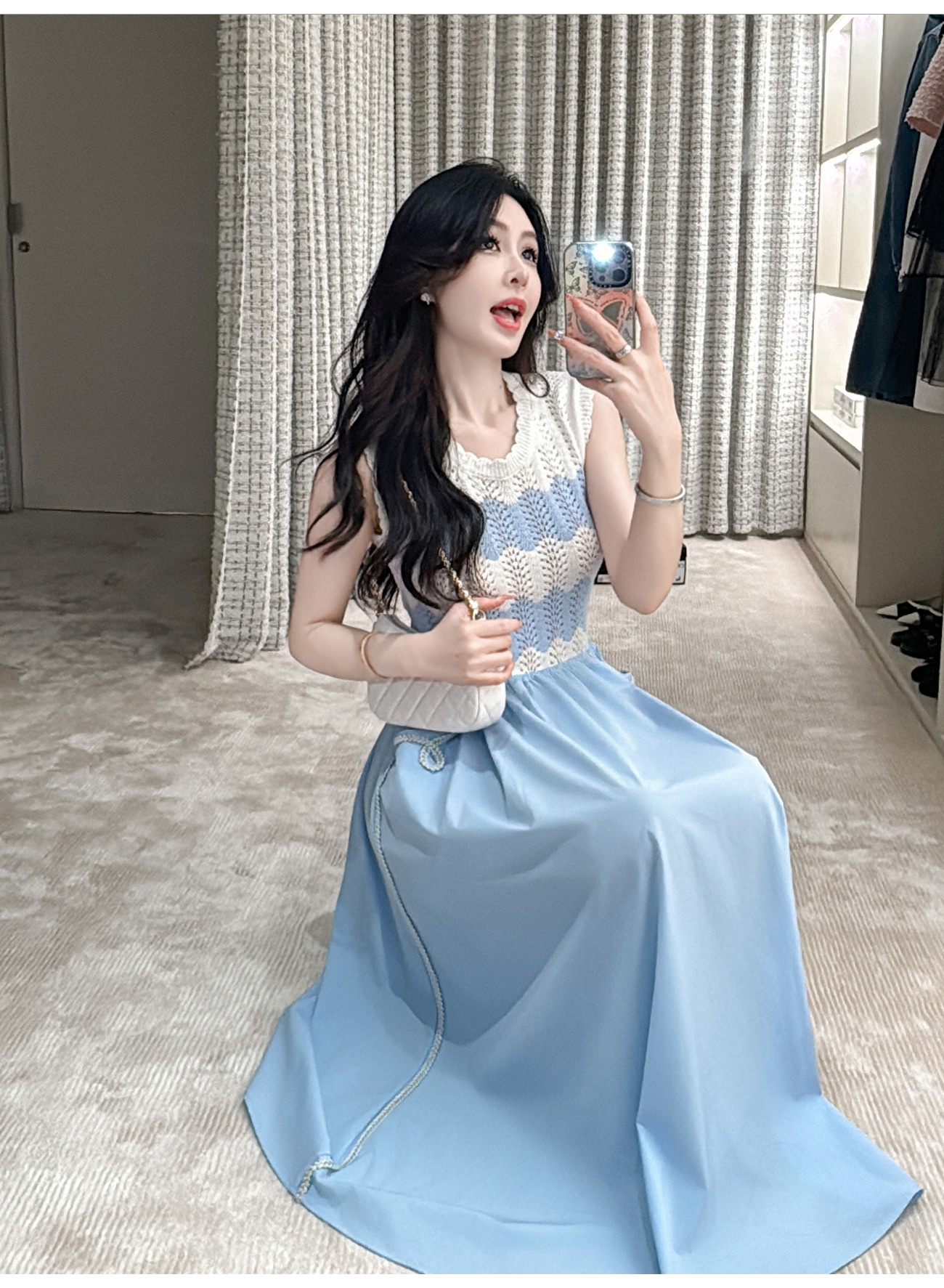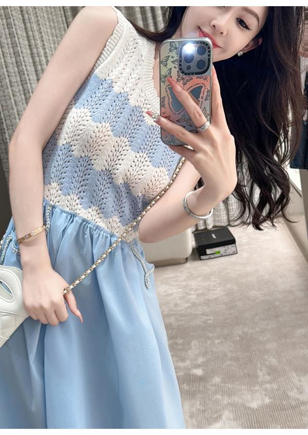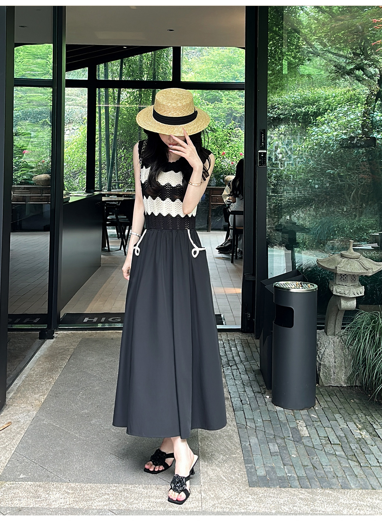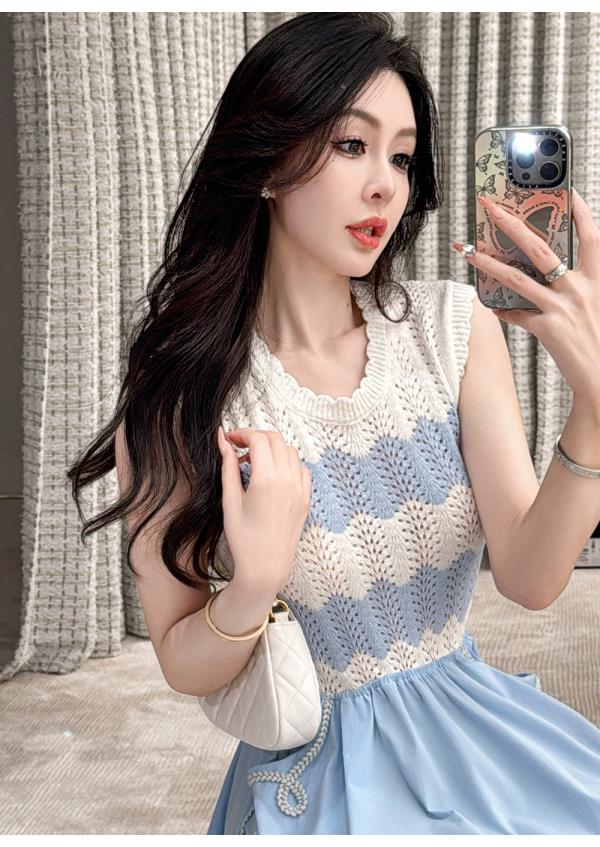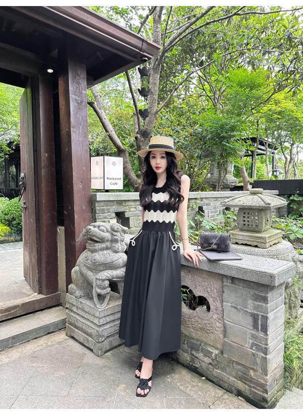 BeQueenStory【黑白情调】设计感拼接大A版背心裙&圆领短袖毛衫