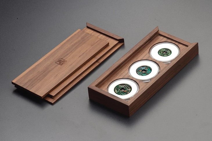黑胡桃52圆盒三枚套装钱币盒,采用进口A级美国黑胡桃整版料精工细作,尺寸:长192mm*宽85mm*高28mm,盒盖松紧适当,外盒方正,素雅无文字,内盖板居中刻有老钱庄商标,木盒里面磨光无毛刺,不伤币壳,整体作天然植物环保漆以保护钱币盒不易变型!适用于各式三枚一套的钱币系列,如古钱(天定大义至正龙风等)小平、折二、折三一套系列,外出携带方便,展示收藏多用,送礼用盒高端上乘之选!
