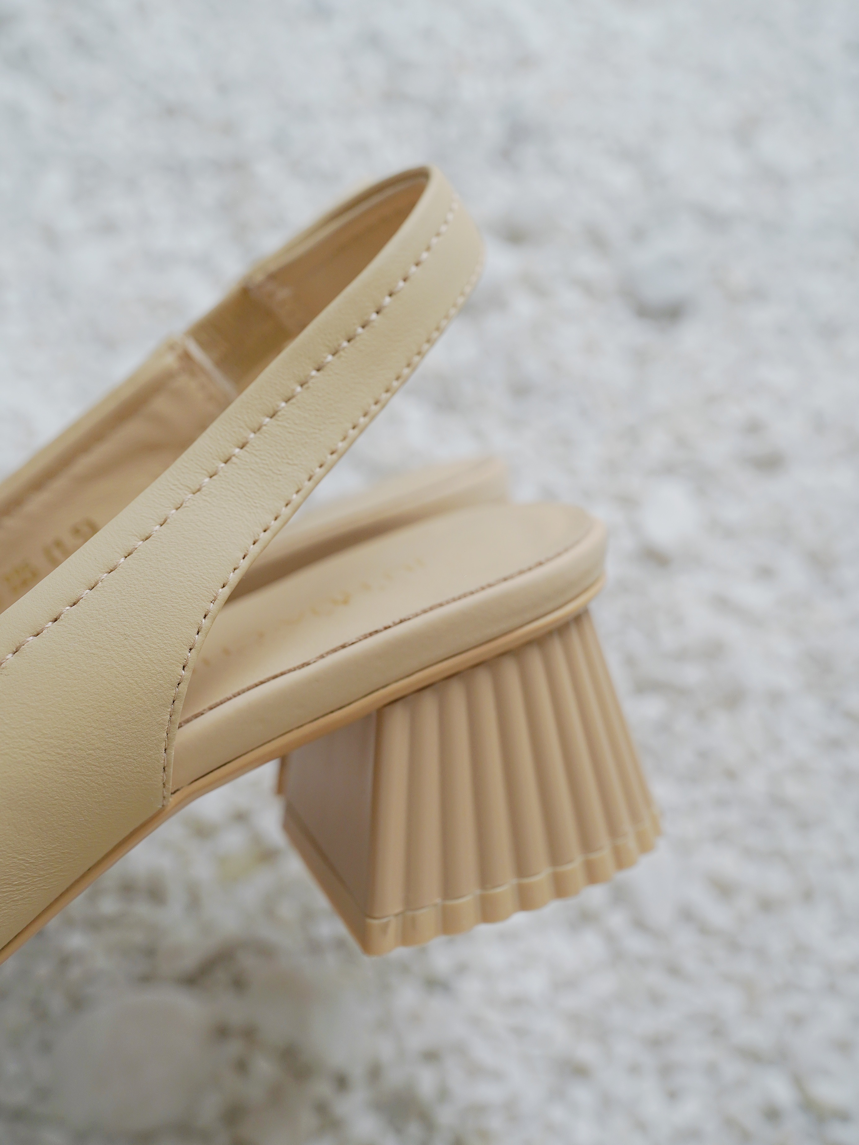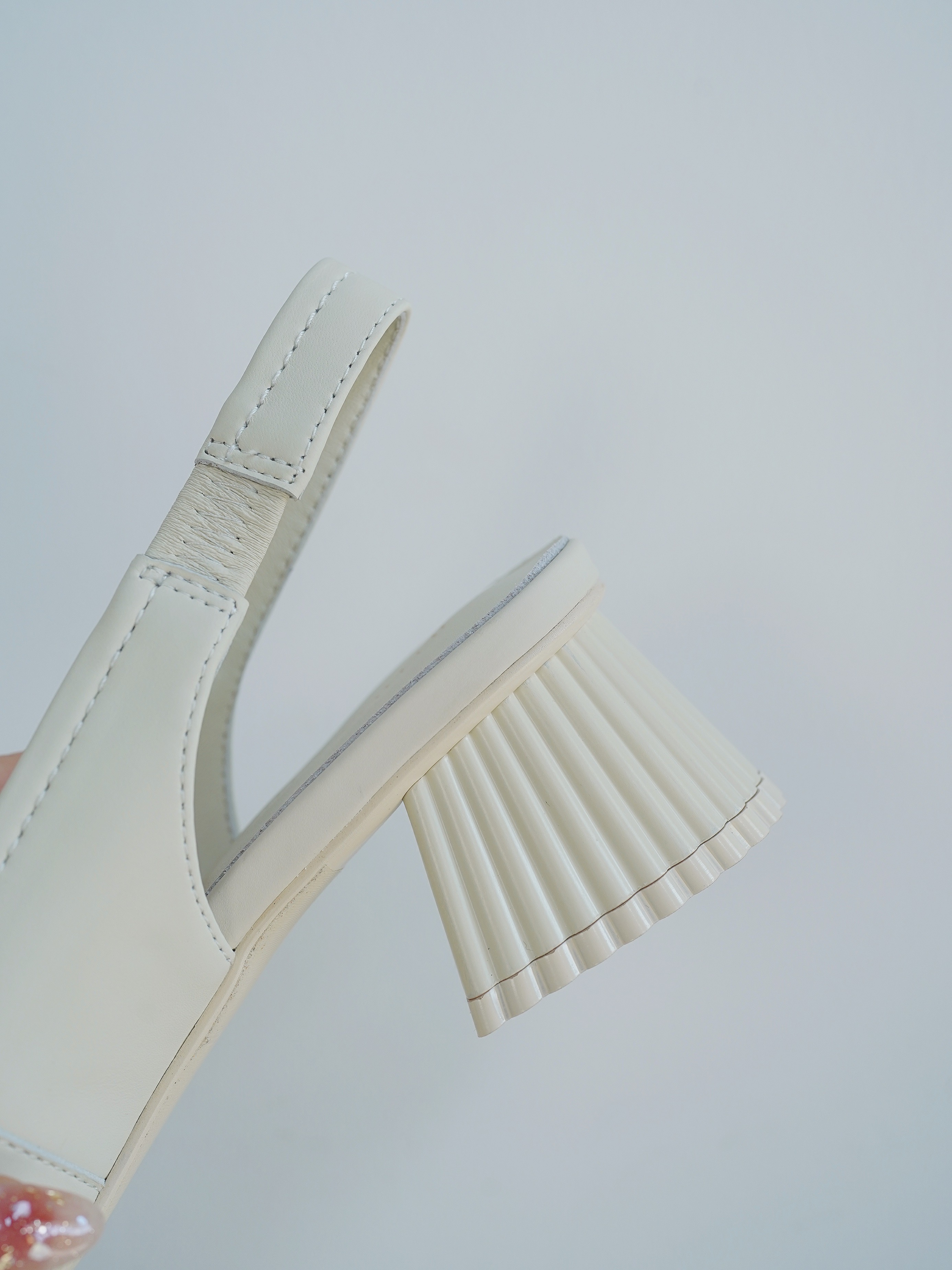另外,我看中这款鞋子还有一点就是这个鞋跟,做的是贝壳跟,好看!精致复古!鞋跟是工厂特别定制款,可惜的是今天问工厂,这个贝壳跟目前缺货了,要重新开模定制,起订量要两百双,当时定做了少量新货,拍完暂不预售补货了!