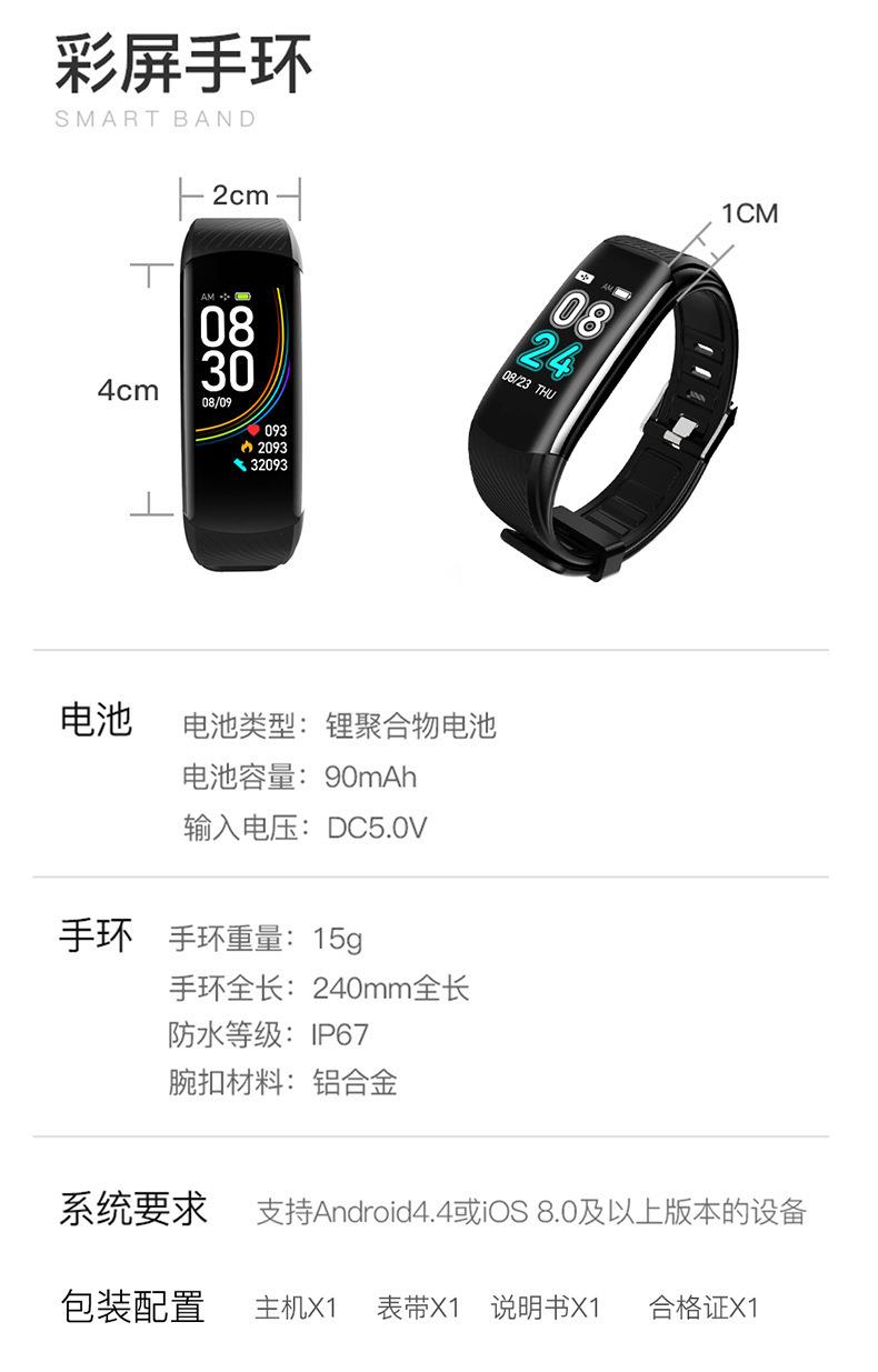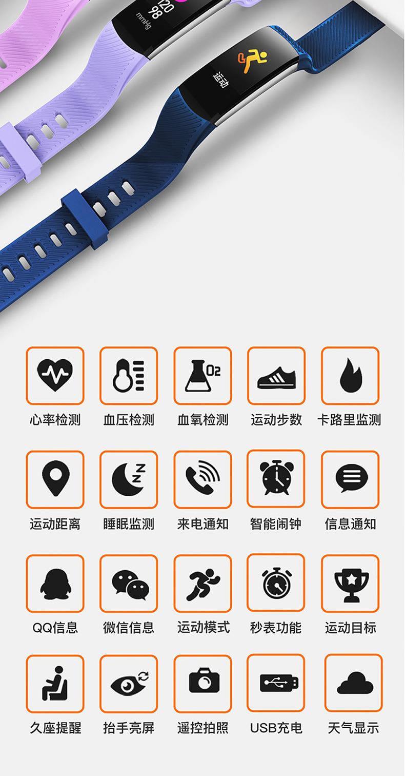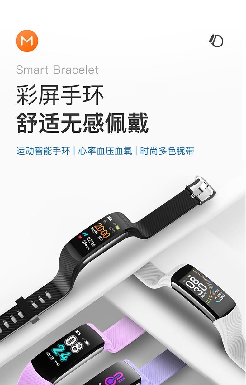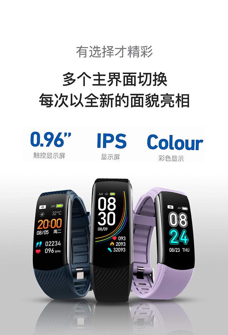 C6S智能手环彩屏大字蓝牙运动心率血压血氧睡眠礼品手环