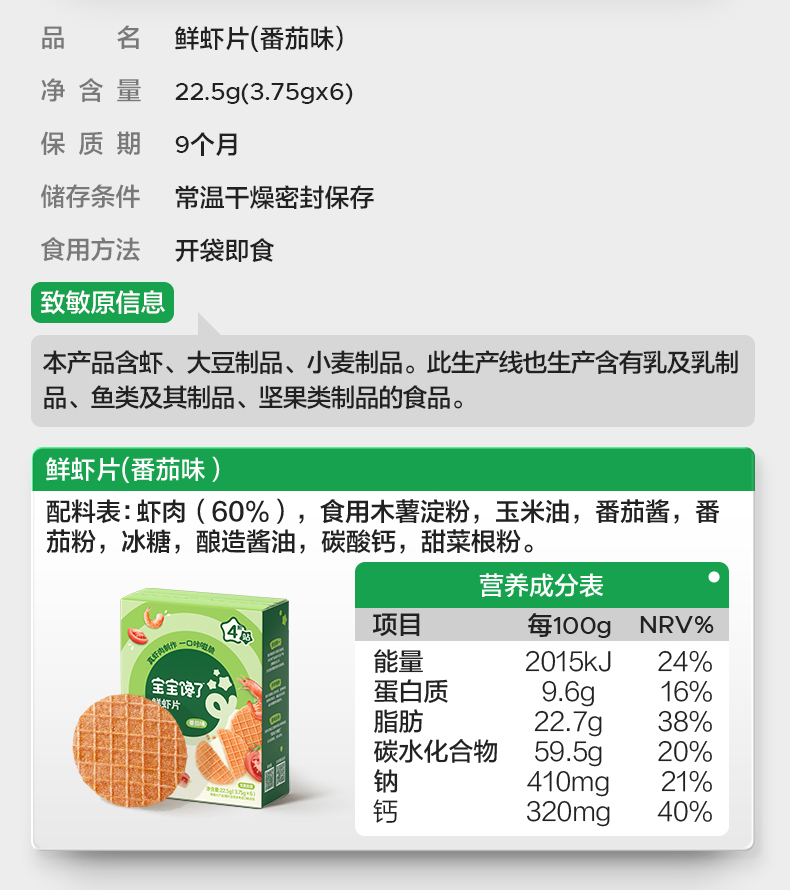 宝宝馋了 鲜虾片(原味/番茄/芝士/海苔)22.5g*3 多规格
