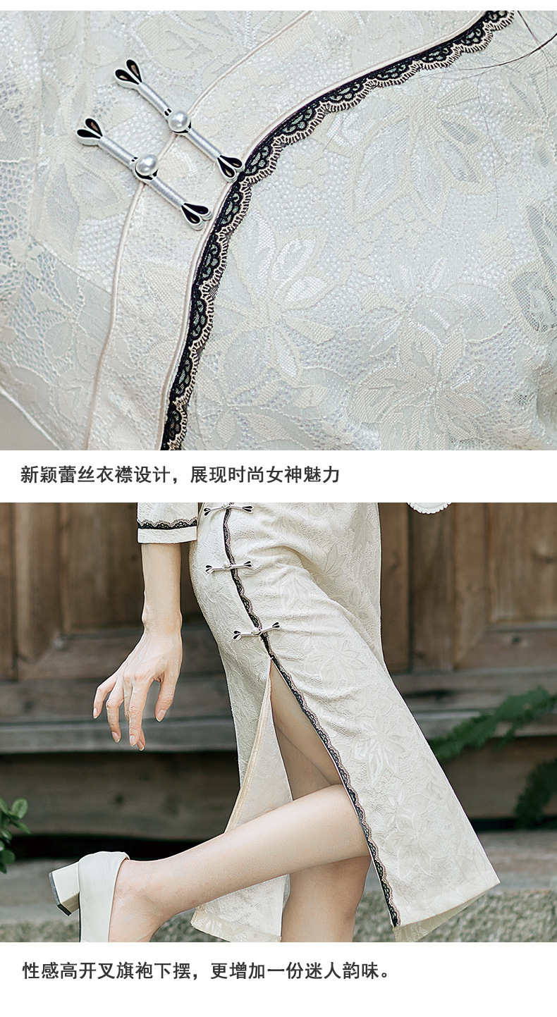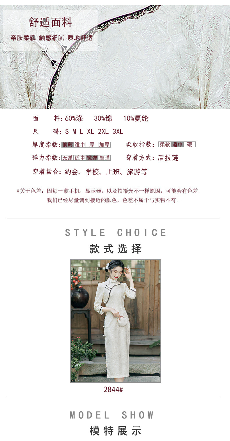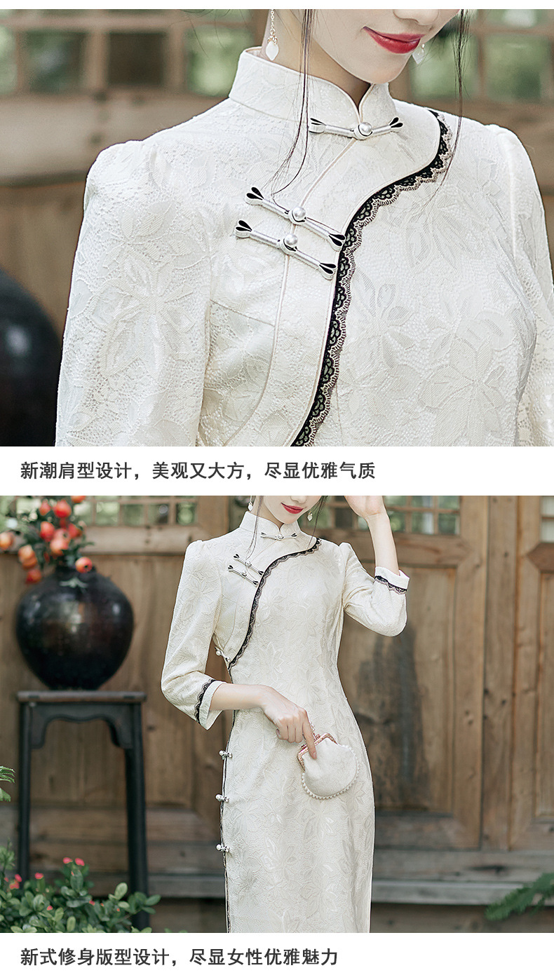 蕾丝花边锦纶提花旗袍,文艺复古中国风宴会礼服走秀旗袍BS-2844