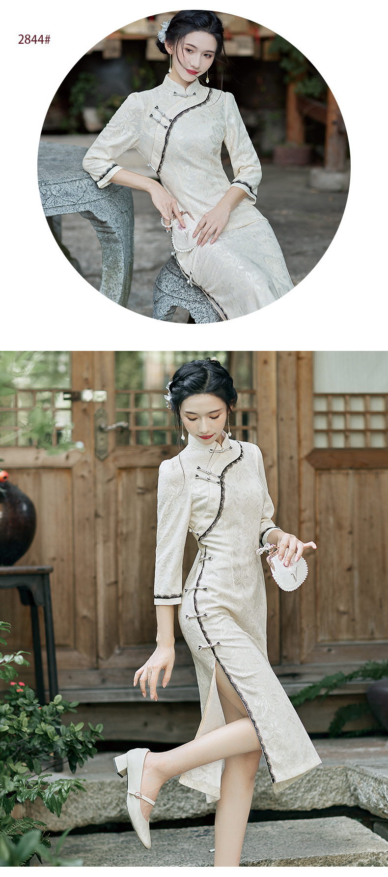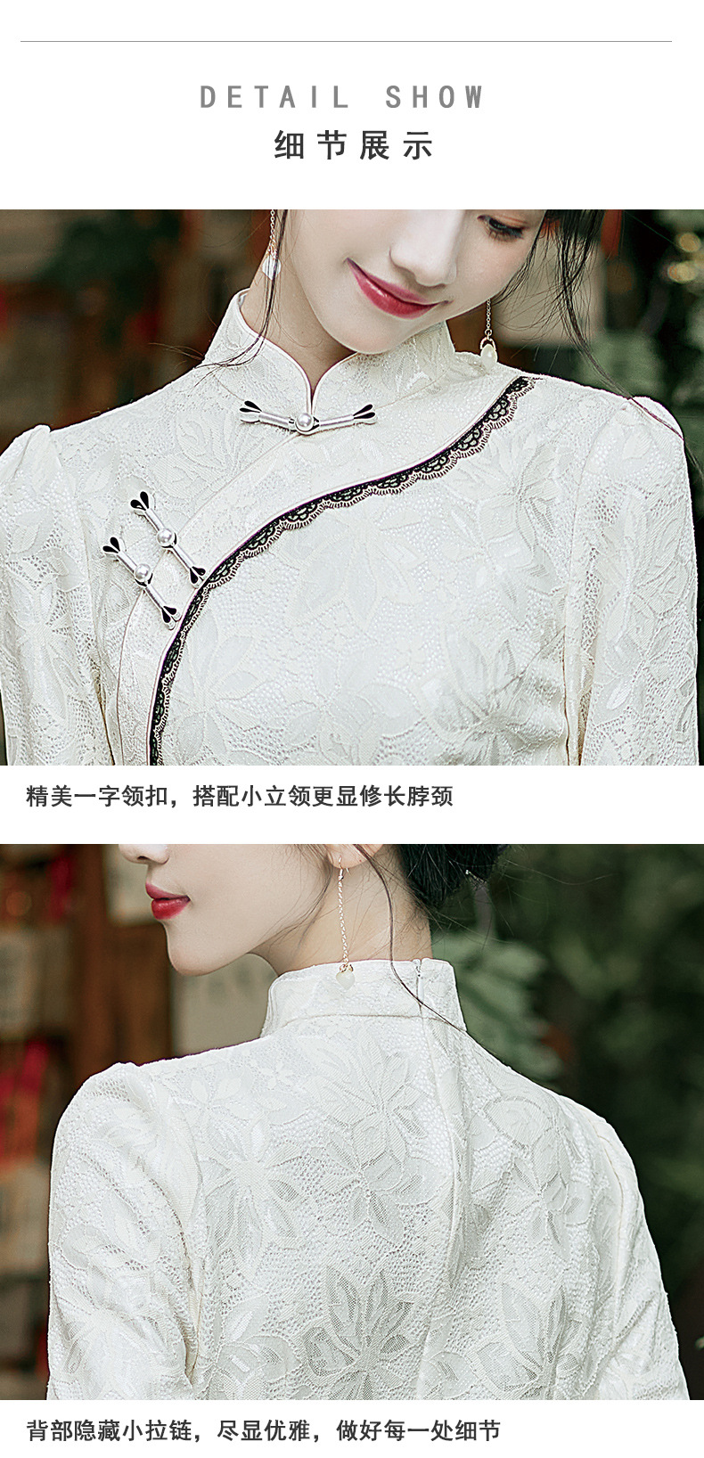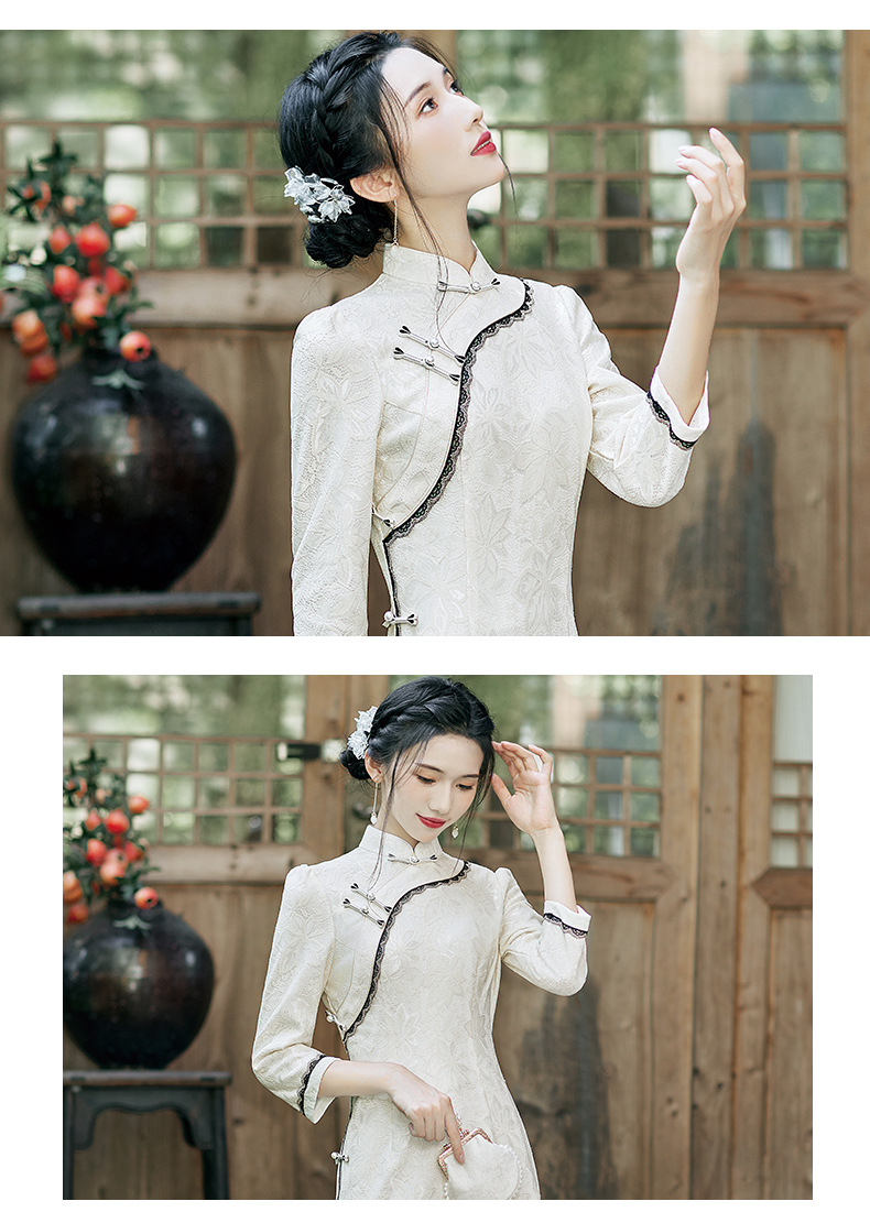 蕾丝花边锦纶提花旗袍,文艺复古中国风宴会礼服走秀旗袍BS-2844