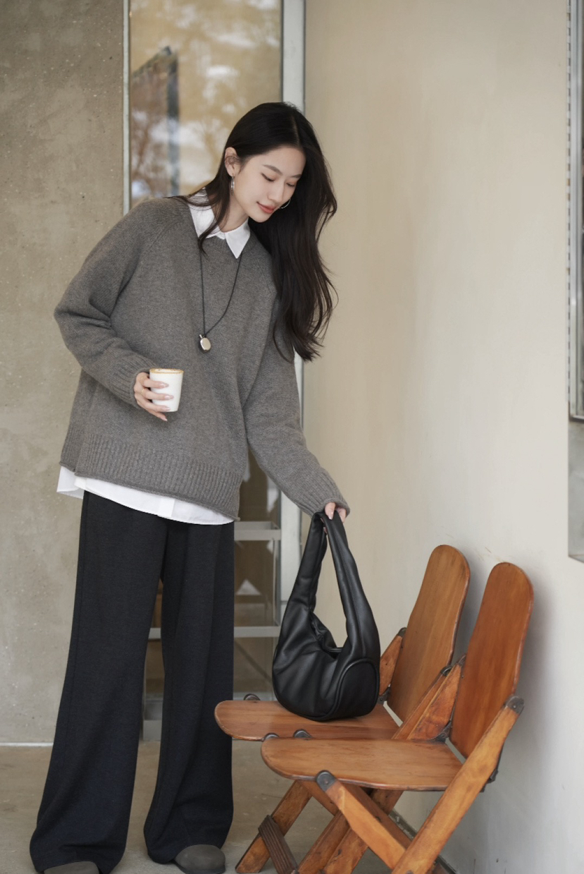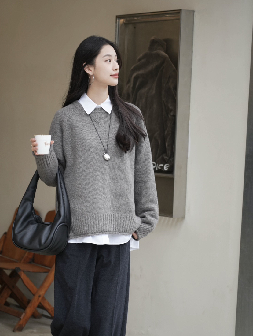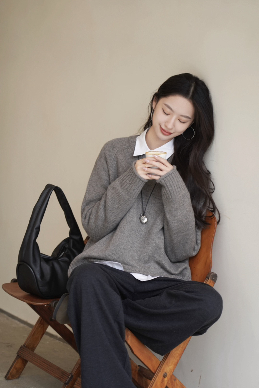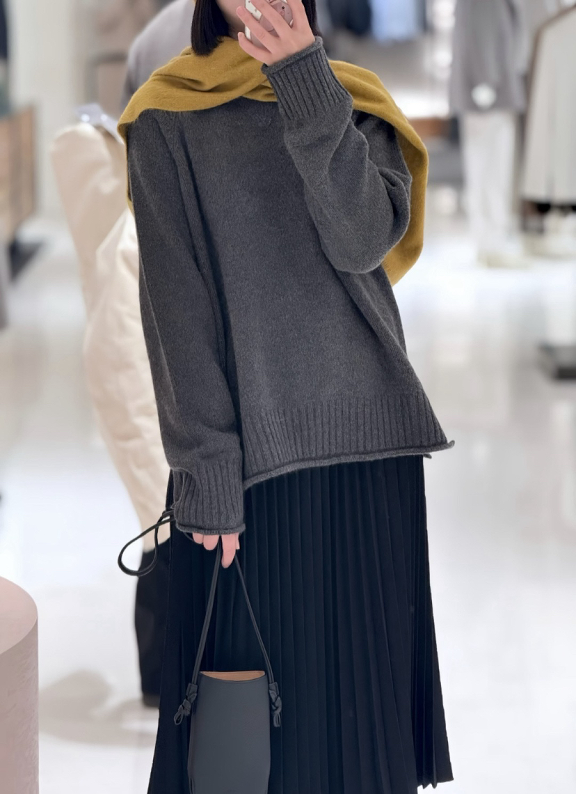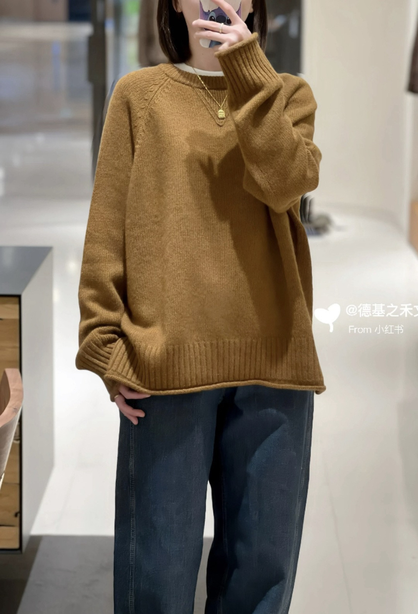 重磅羊绒,宽松版型藏肉绝了,下摆的波浪边更是点睛之笔,随便搭条牛仔裤都像博主出门。