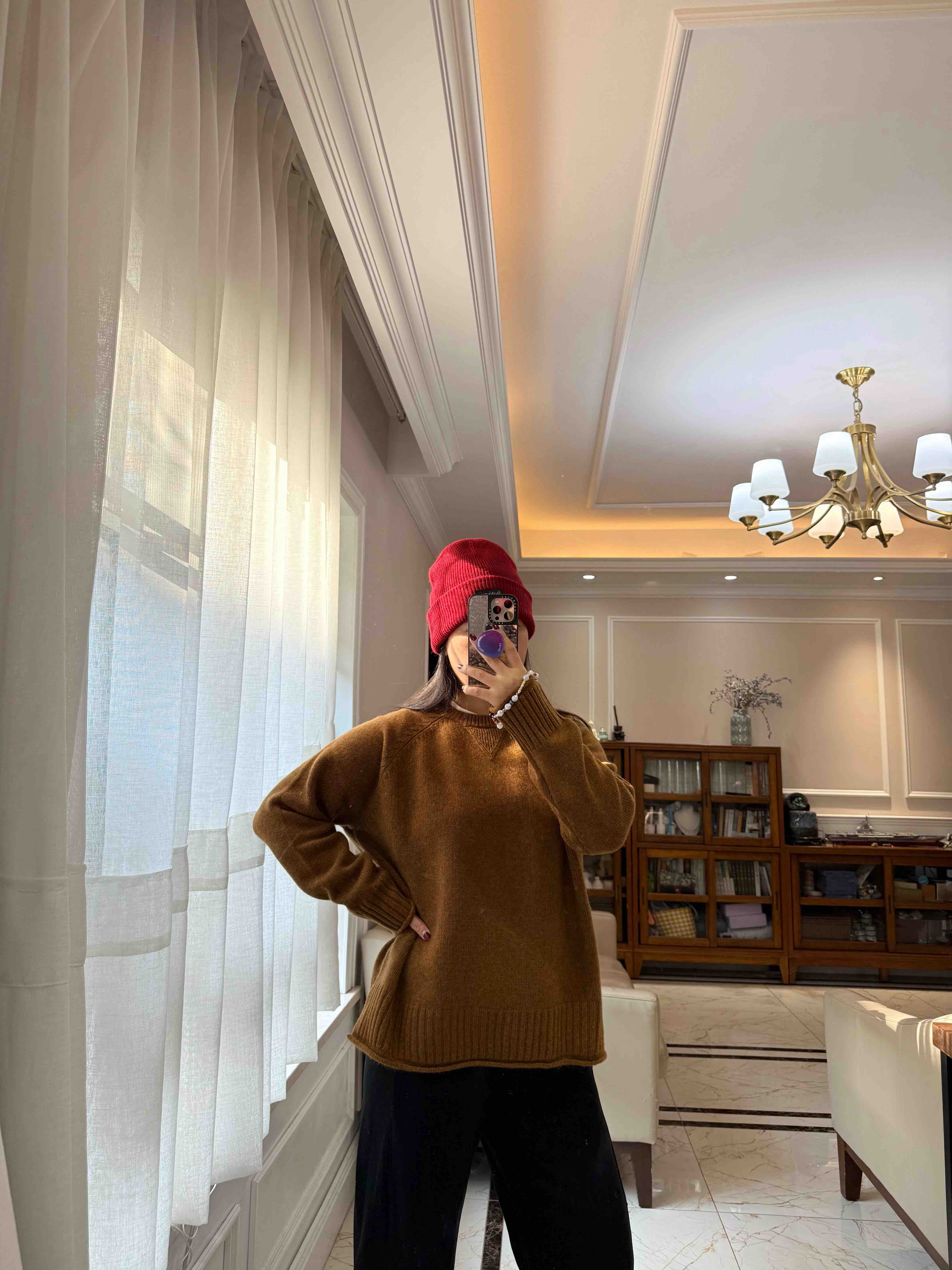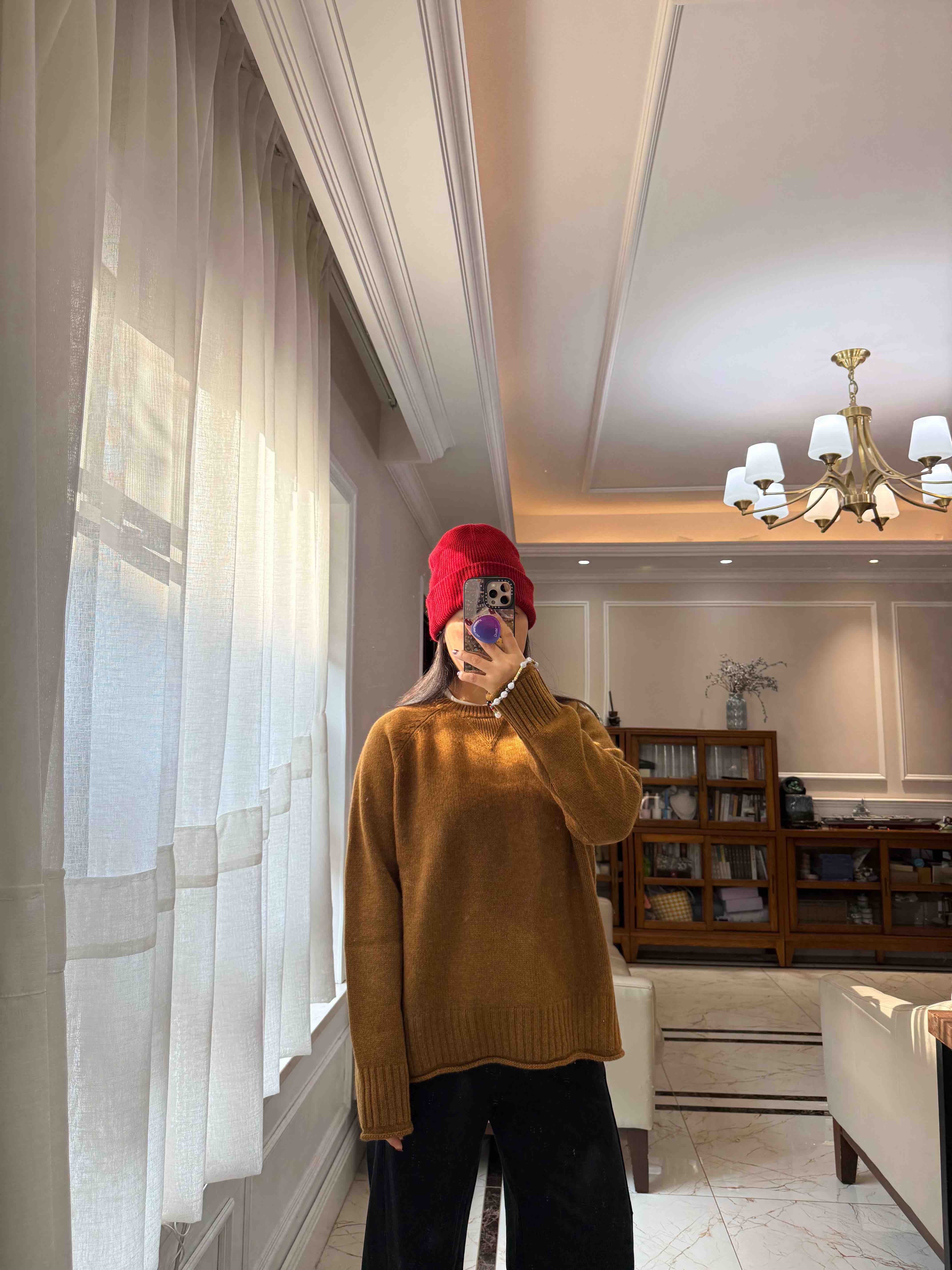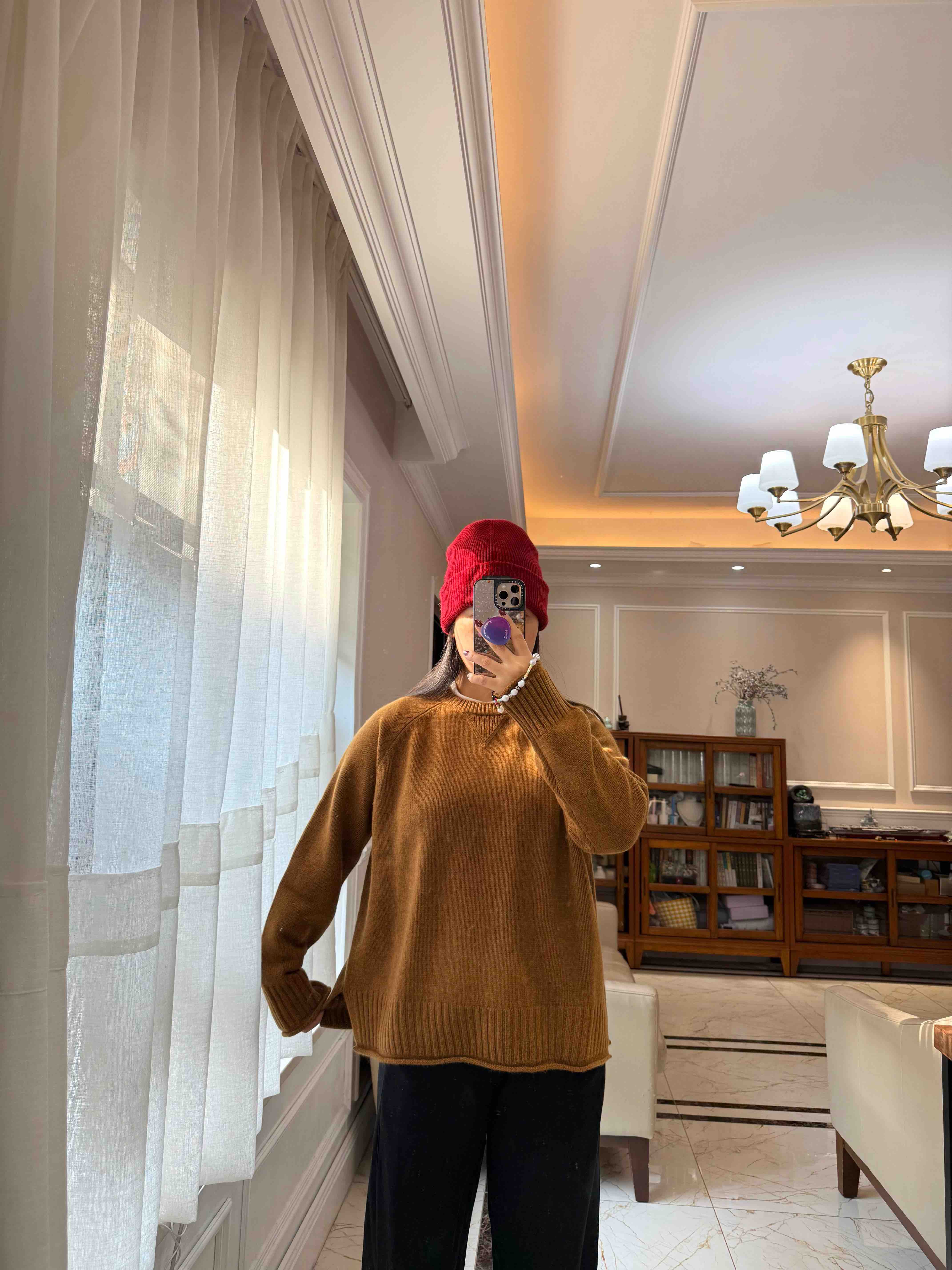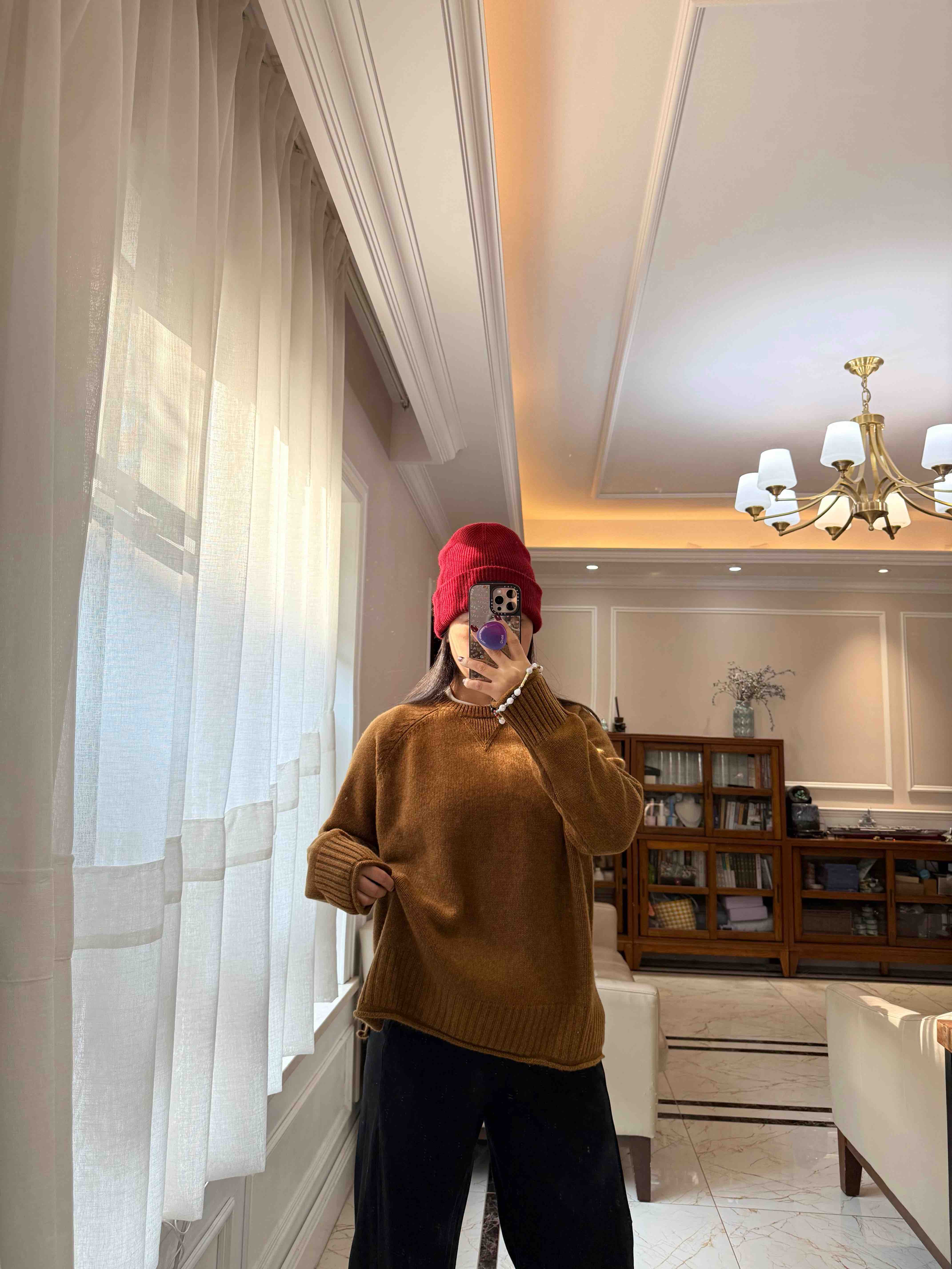 重磅羊绒,宽松版型藏肉绝了,下摆的波浪边更是点睛之笔,随便搭条牛仔裤都像博主出门。
