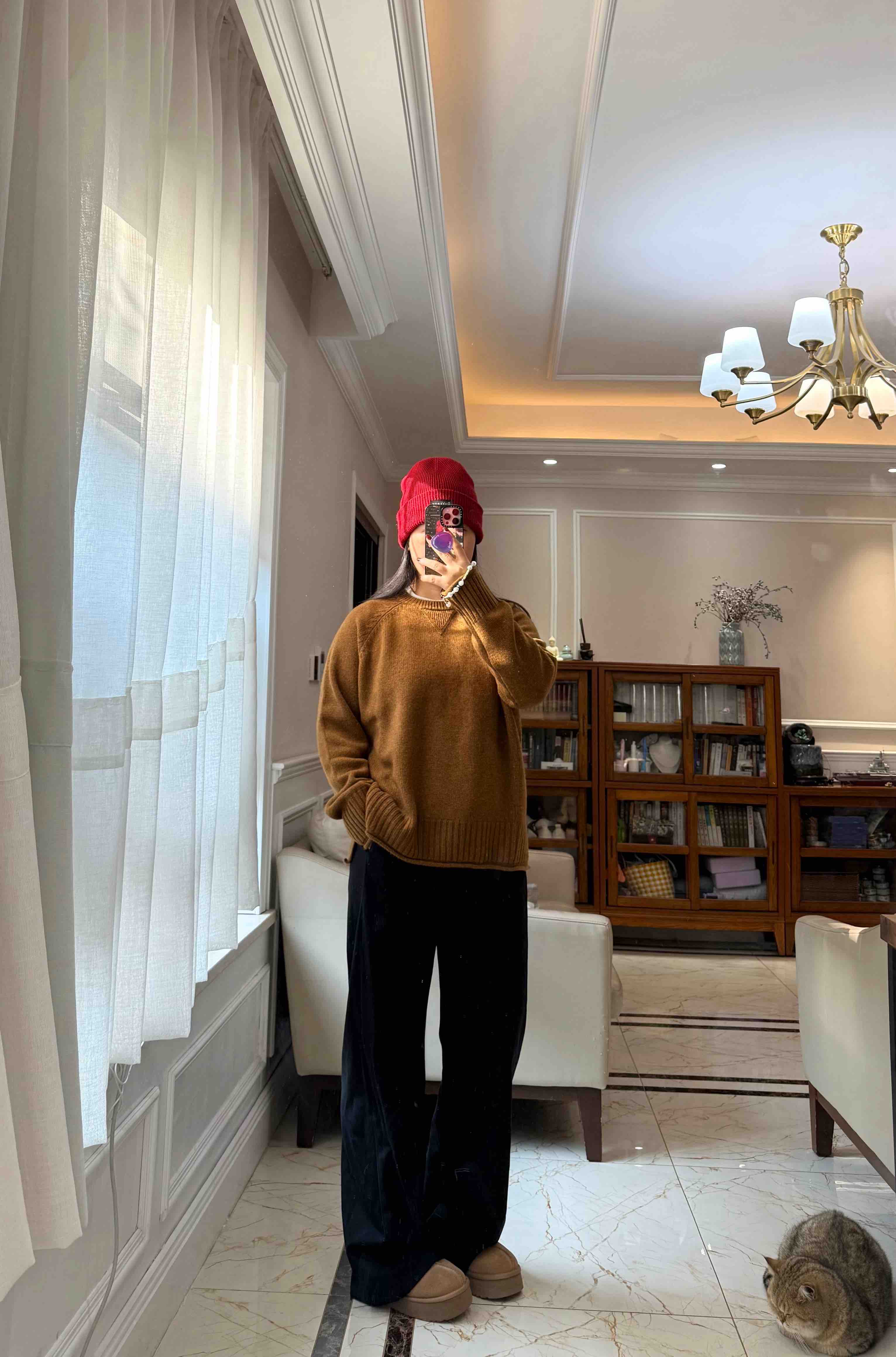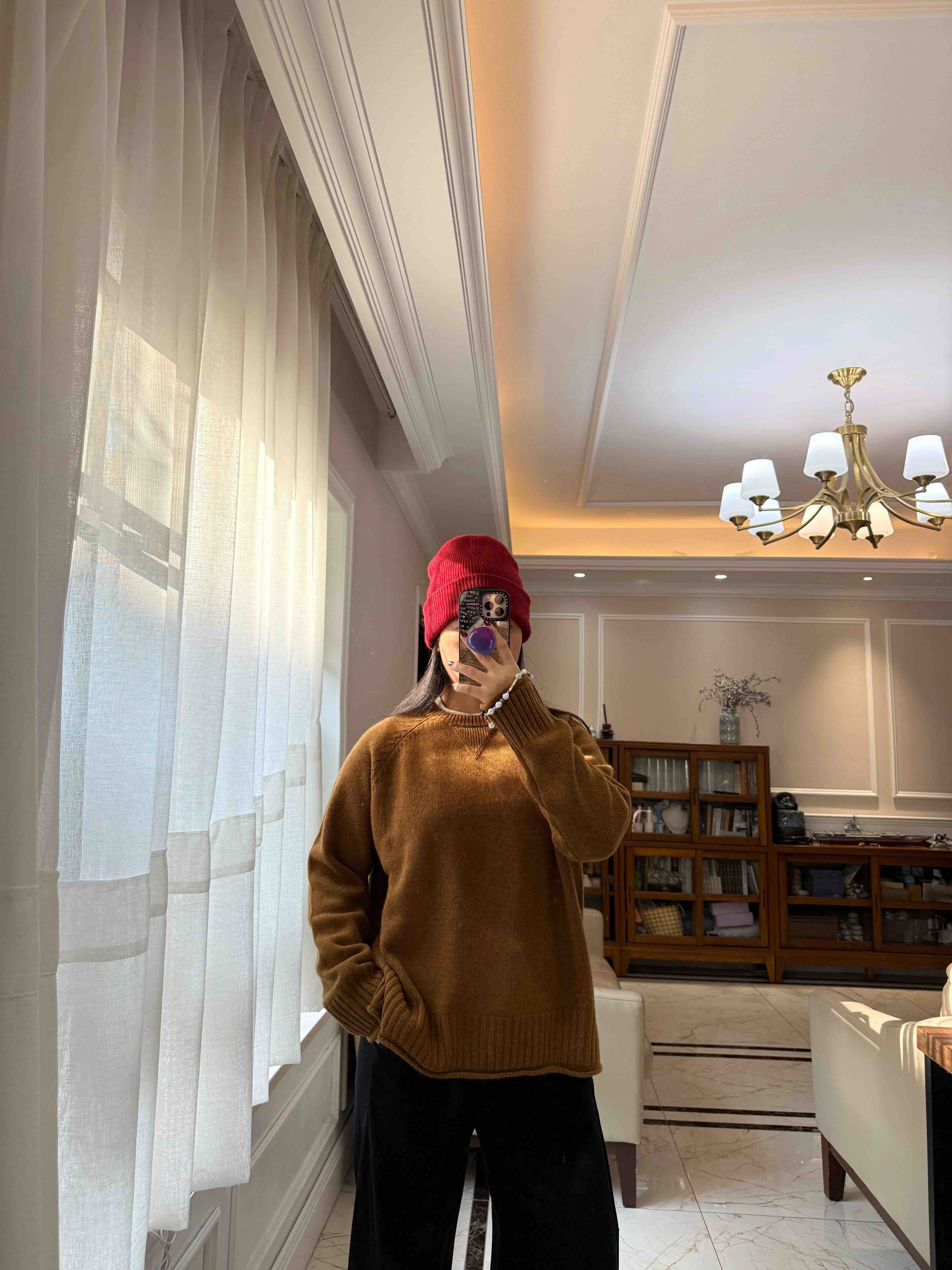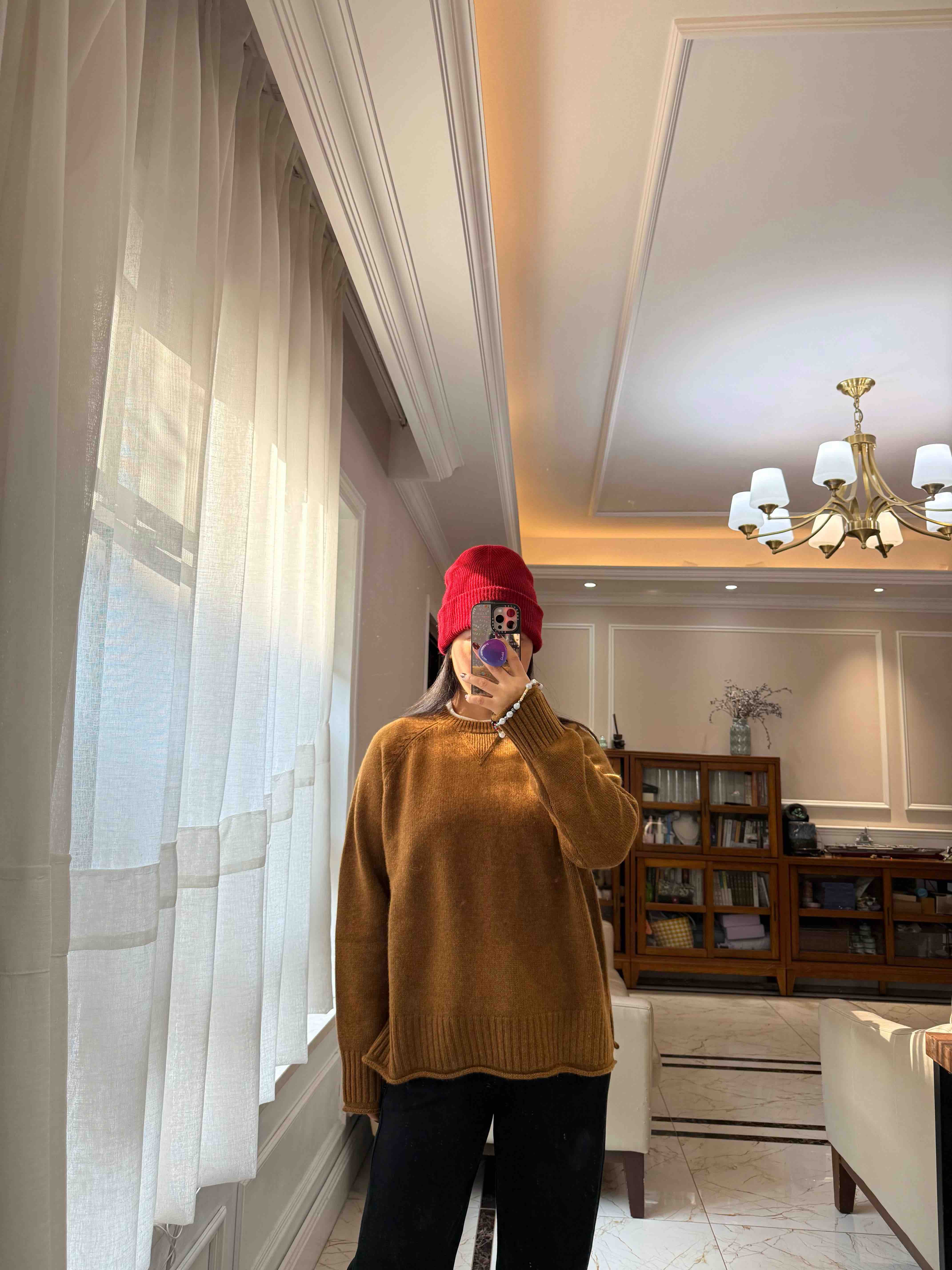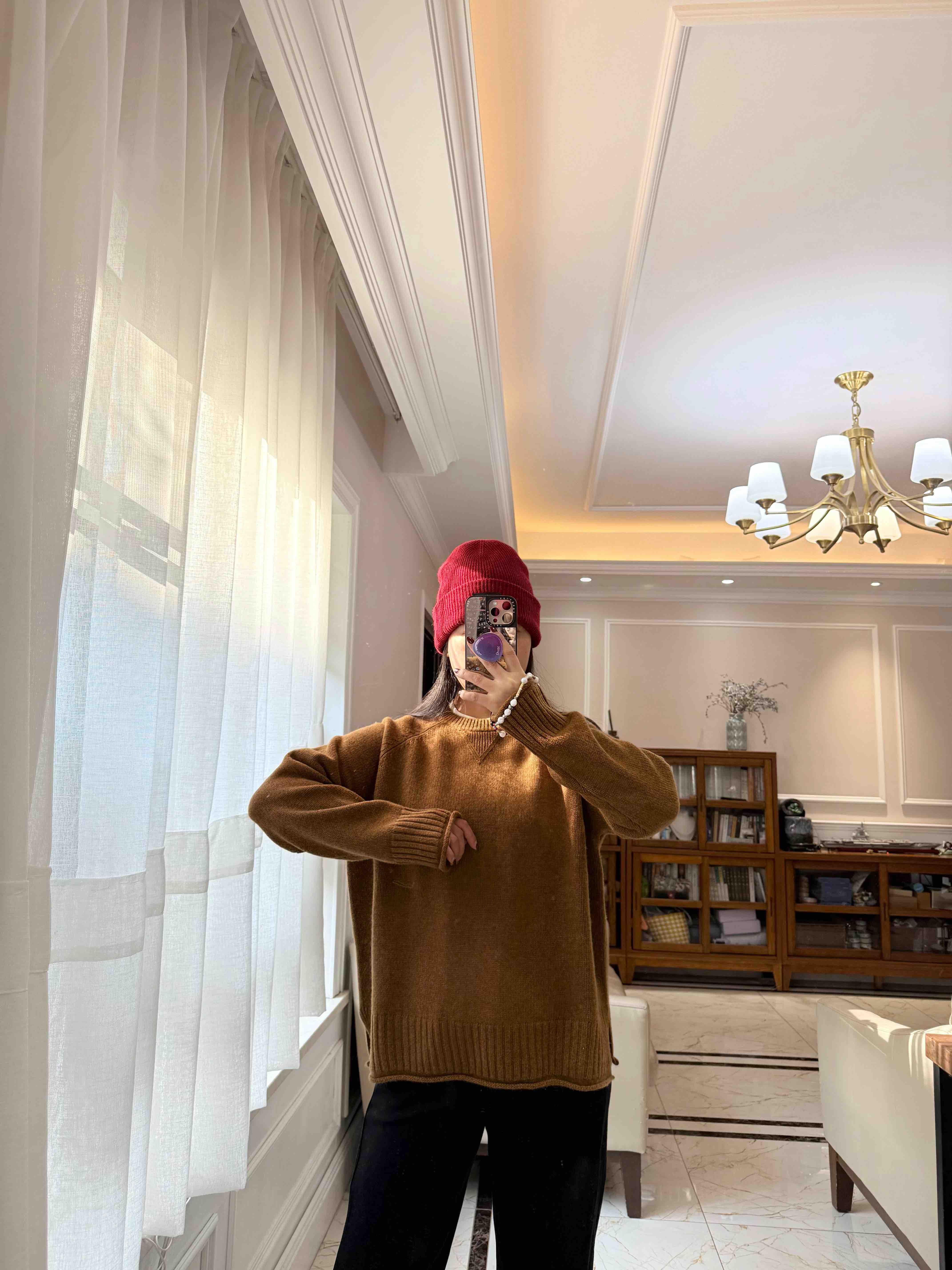重磅羊绒,宽松版型藏肉绝了,下摆的波浪边更是点睛之笔,随便搭条牛仔裤都像博主出门。