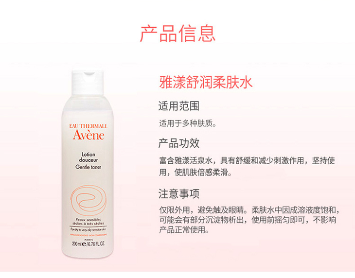 【一般贸易】法国Avene雅漾舒润柔肤水200ml