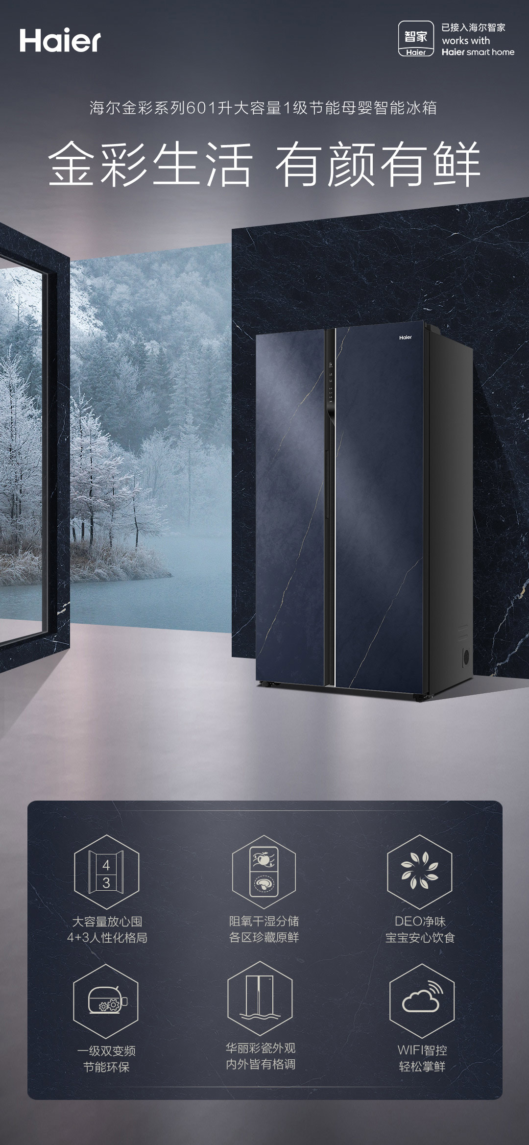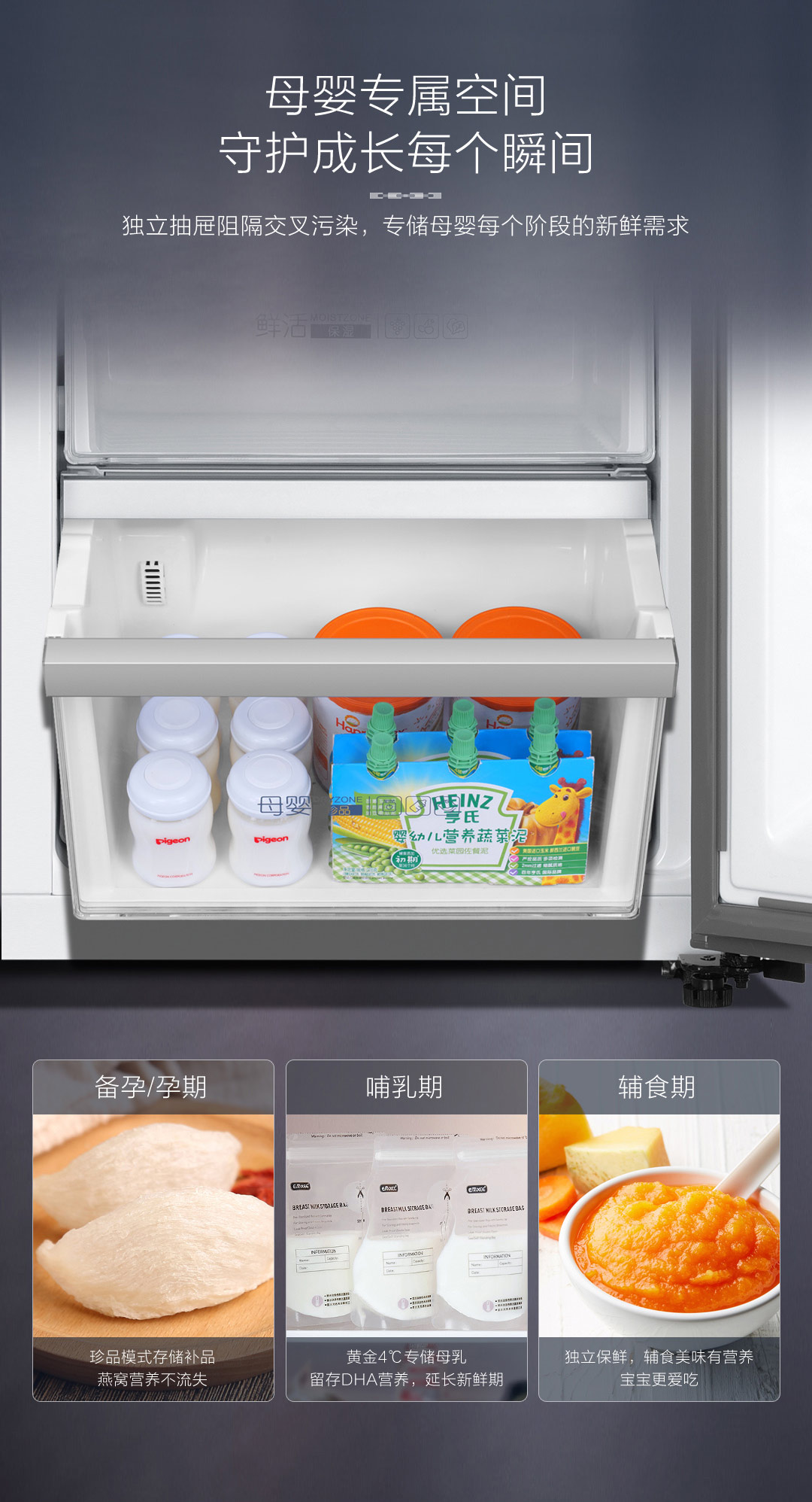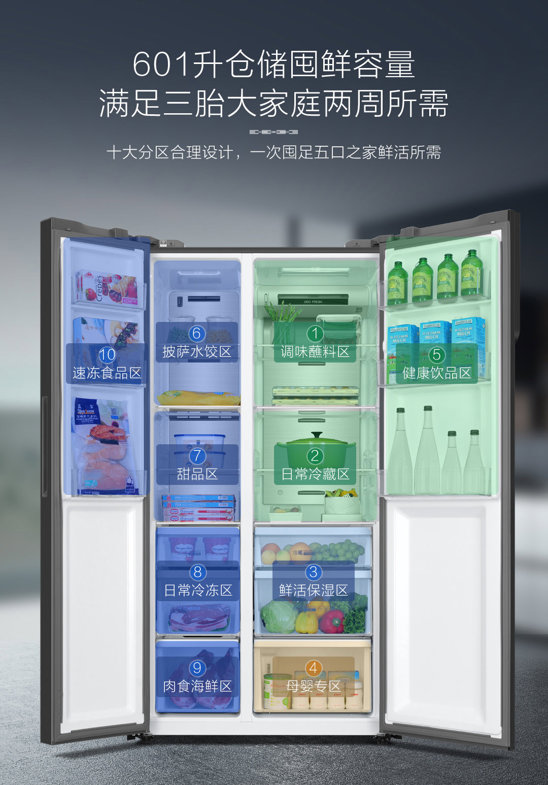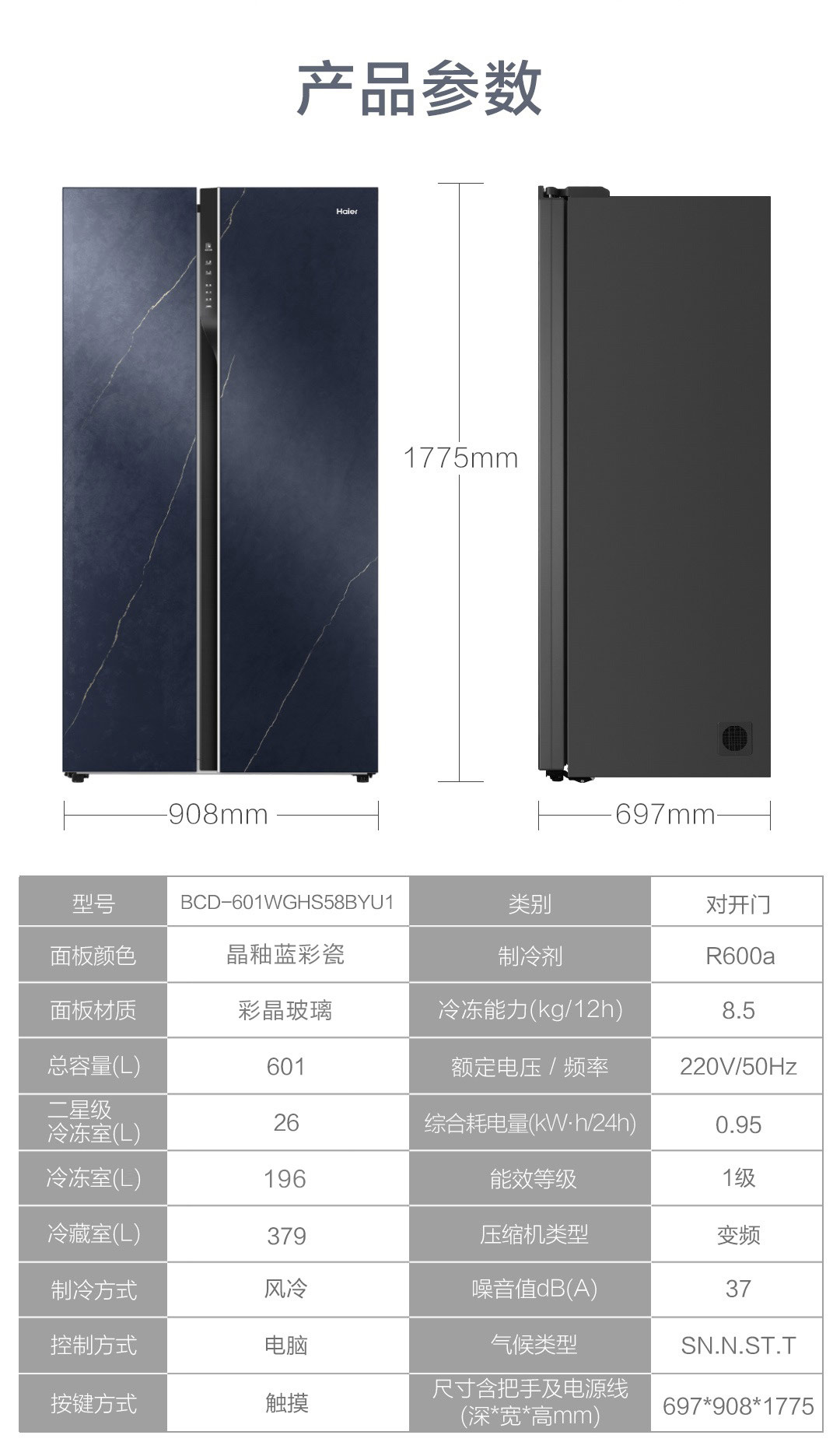 海尔(Haier )京馨系列601升双变频风冷无霜对开门冰箱干湿分储玻璃面板大容量母婴冰箱BCD-601WGHSS58BYU1