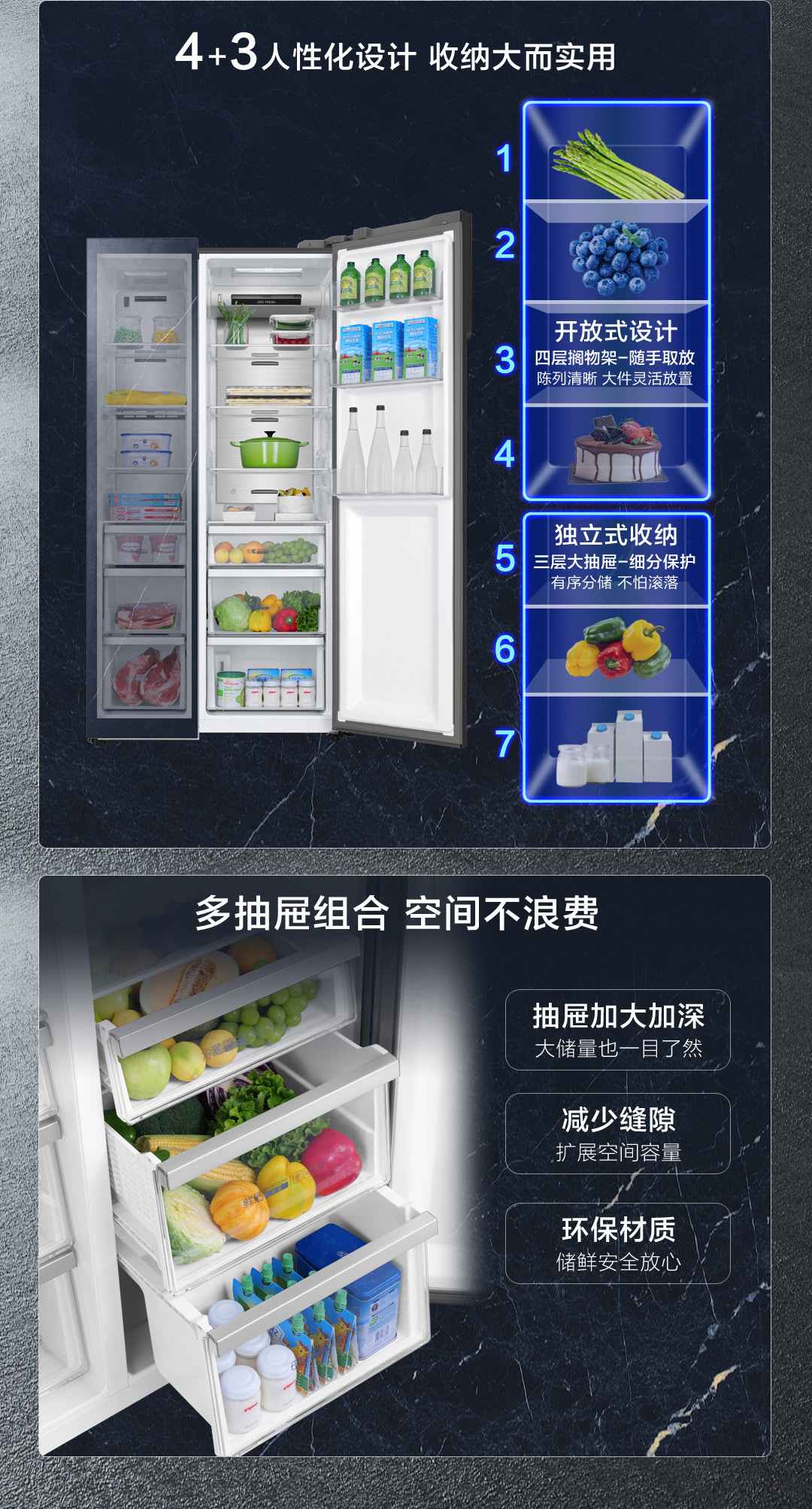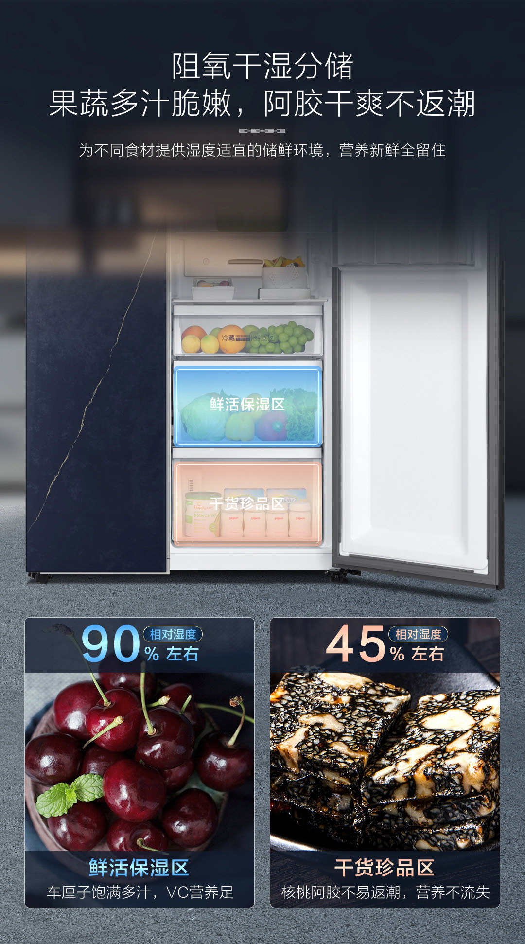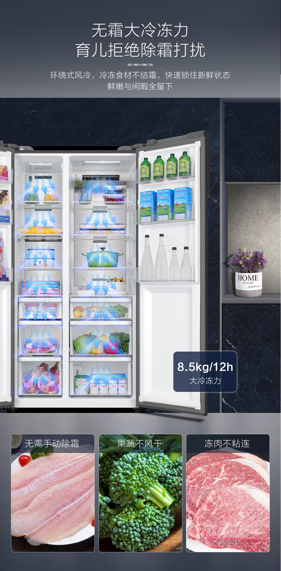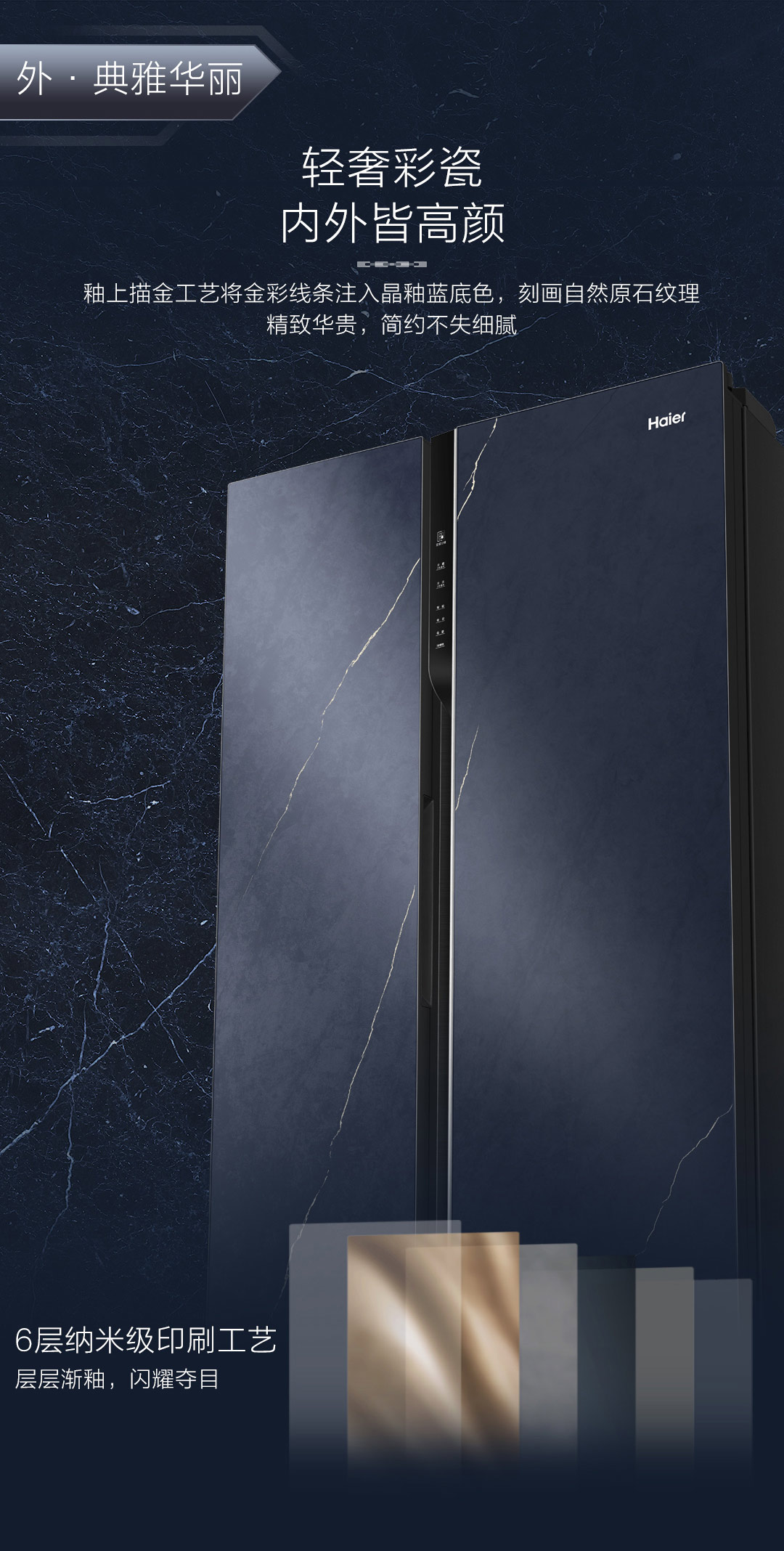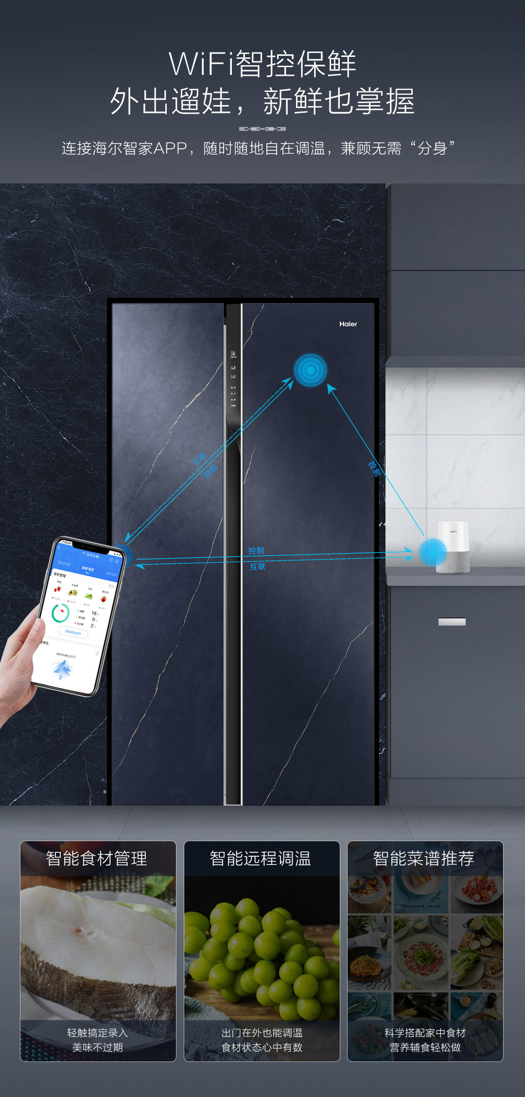 海尔(Haier )京馨系列601升双变频风冷无霜对开门冰箱干湿分储玻璃面板大容量母婴冰箱BCD-601WGHSS58BYU1