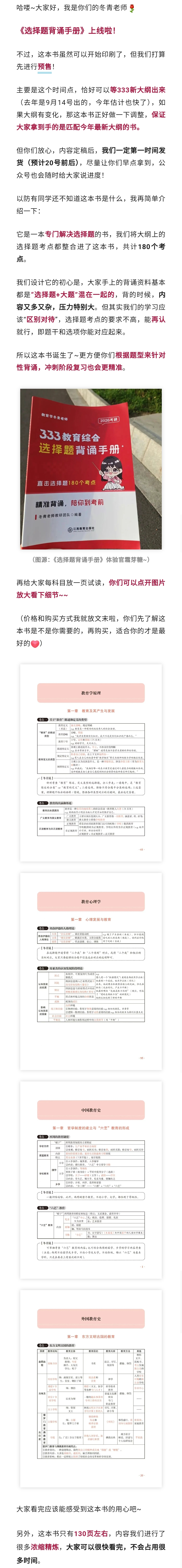 冬青《选择题背诵手册》| 全网独一份!精准背诵,直击180个选择题考点!售后Q群:937044998