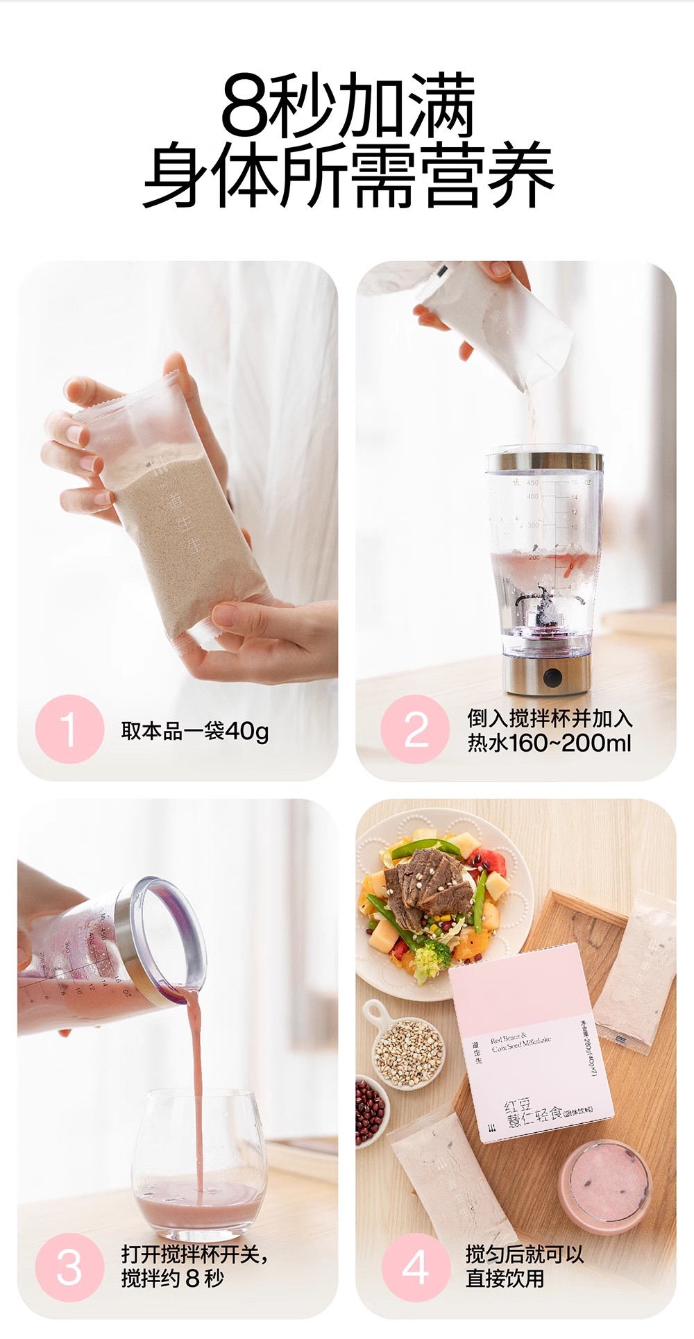 每袋轻食以200毫升温水冲泡