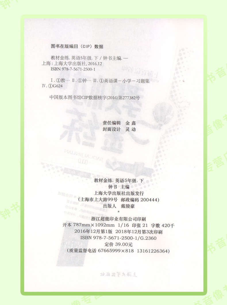 钟书金牌教材金练小学N版 5/五年级英语(下) (书+卷)下学期新课标 教辅 第二学期下册钟书正版辅导书