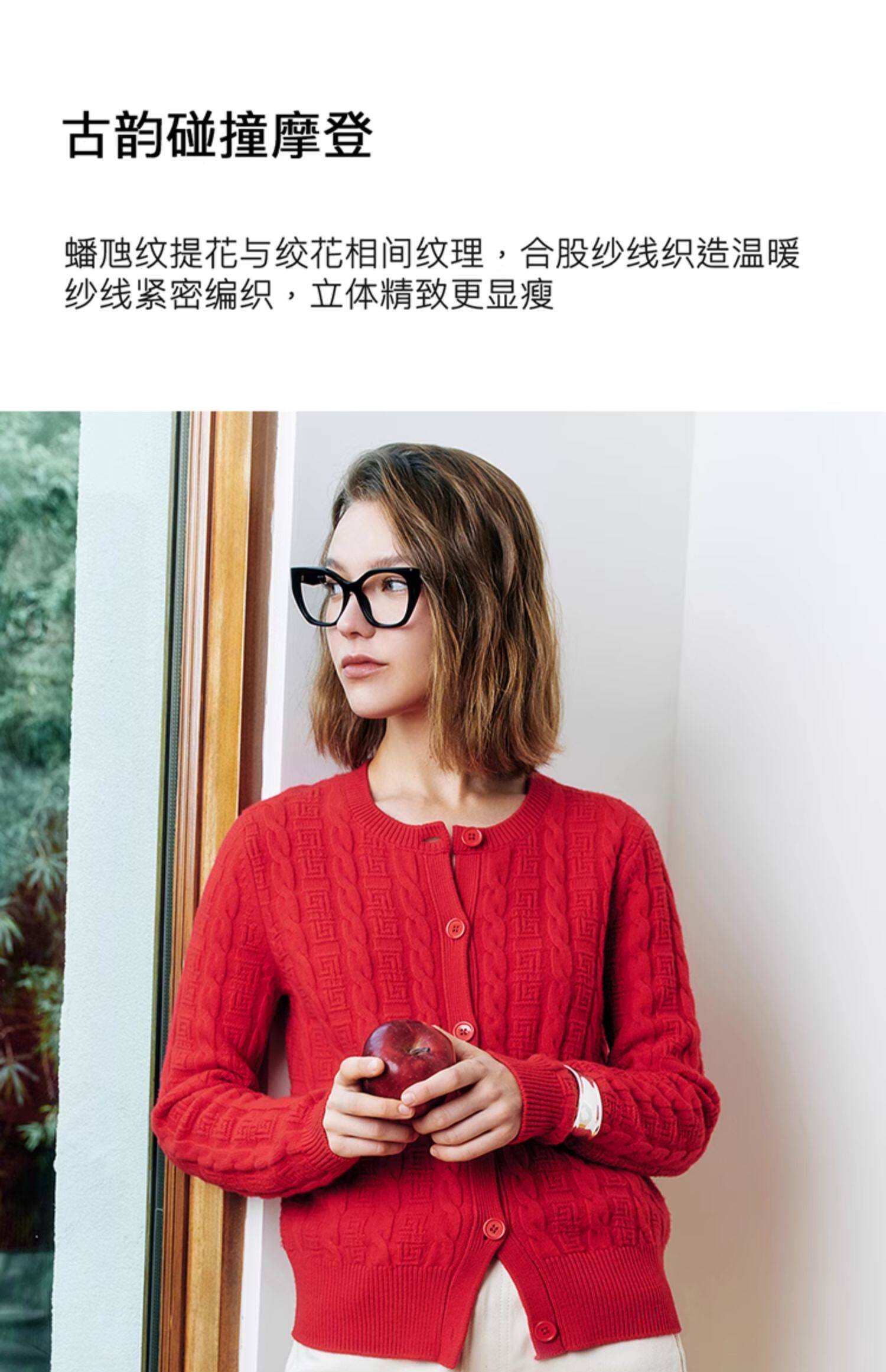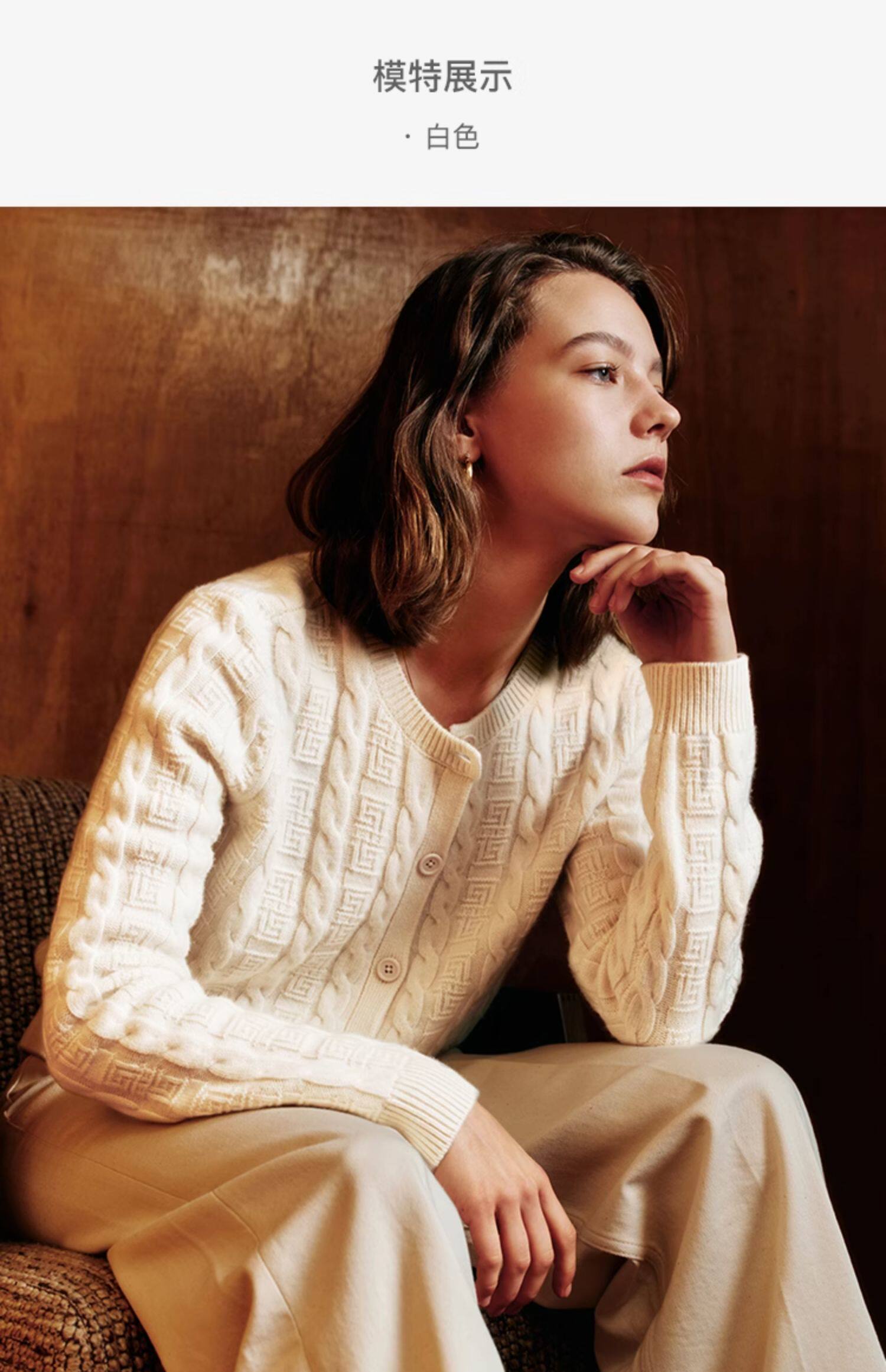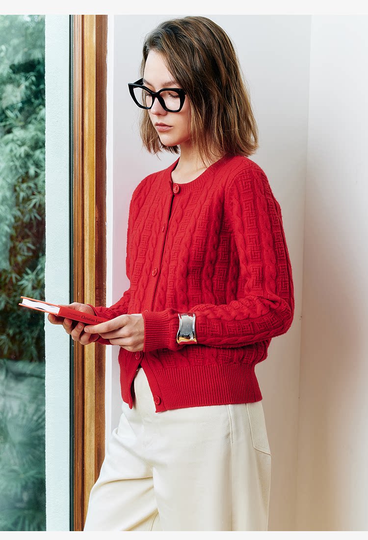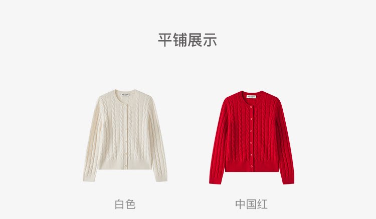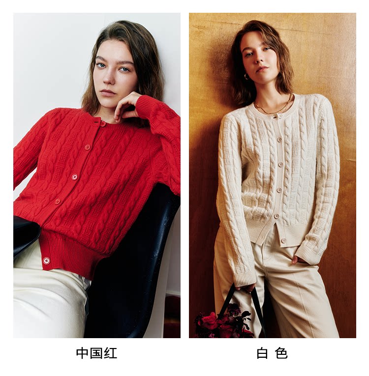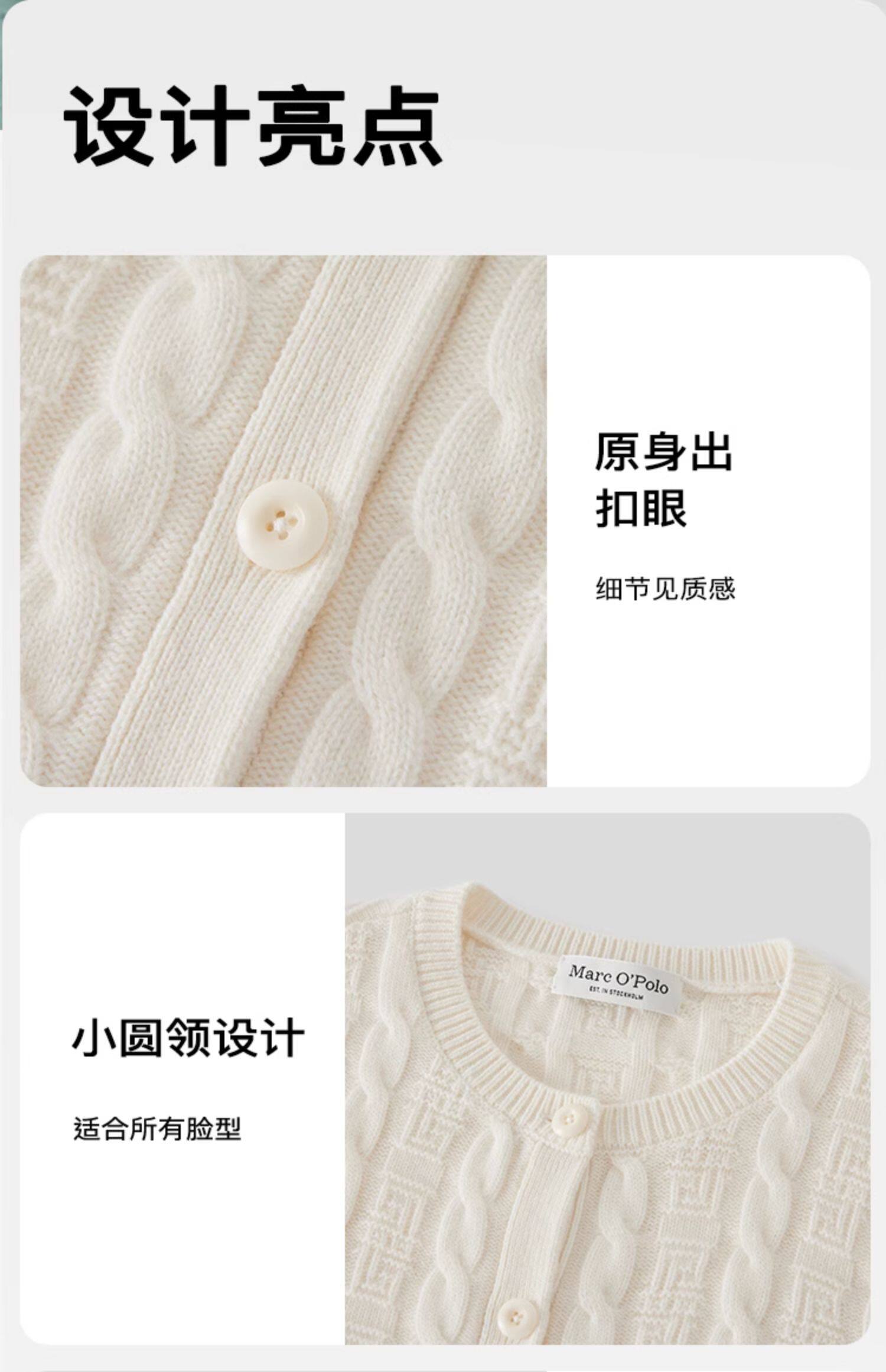 Marc O'Polo/MOP新年系列25春秋季新款绵羊毛圆领绞花针织开衫女