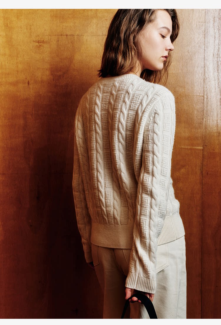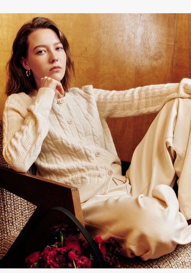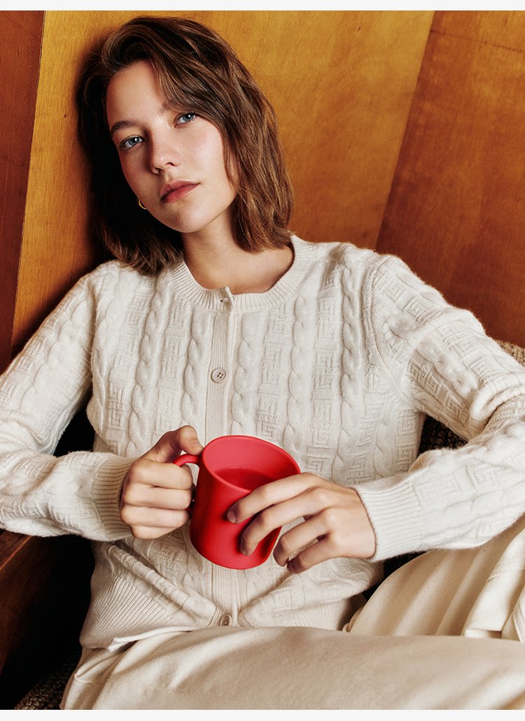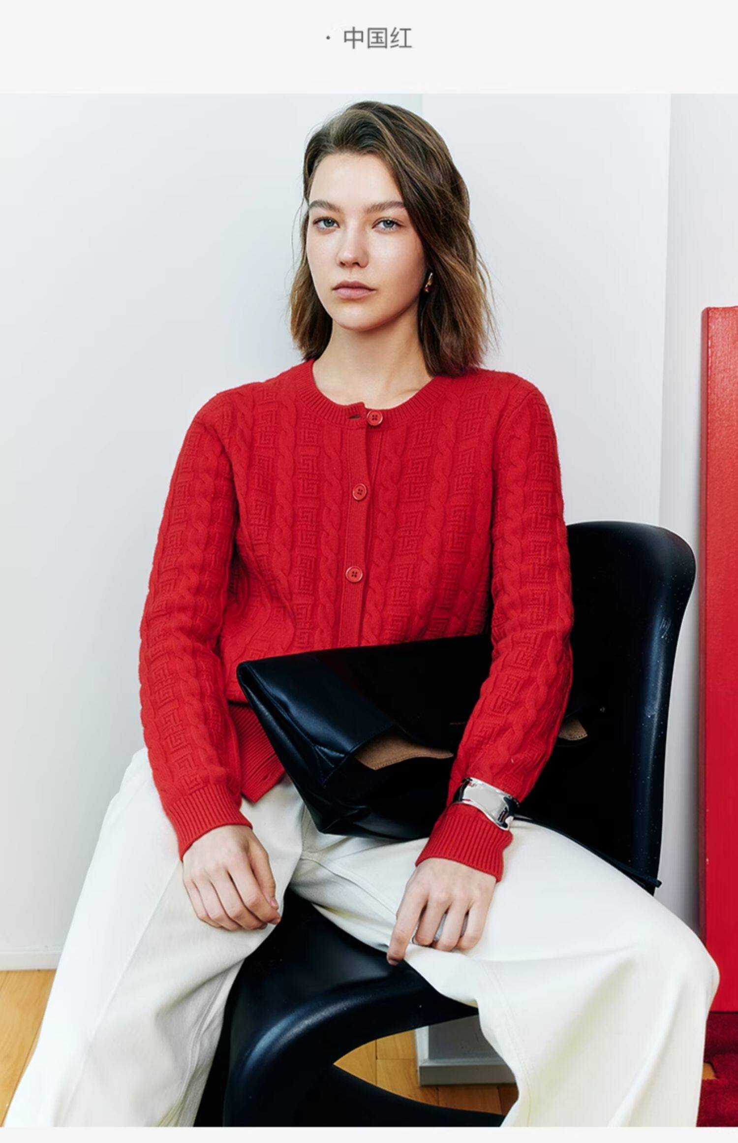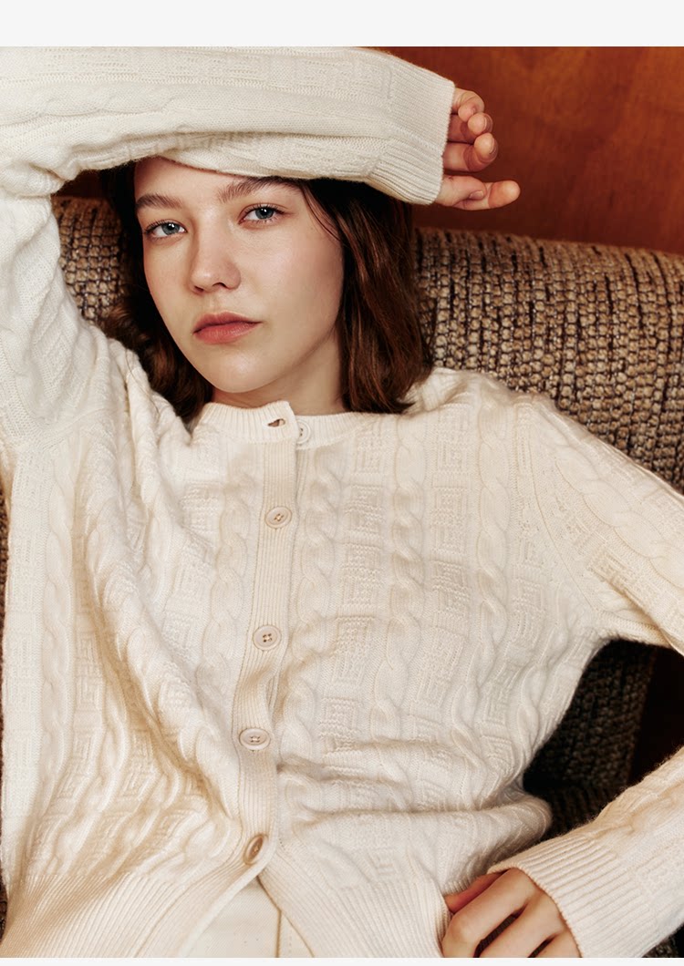 Marc O'Polo/MOP新年系列25春秋季新款绵羊毛圆领绞花针织开衫女