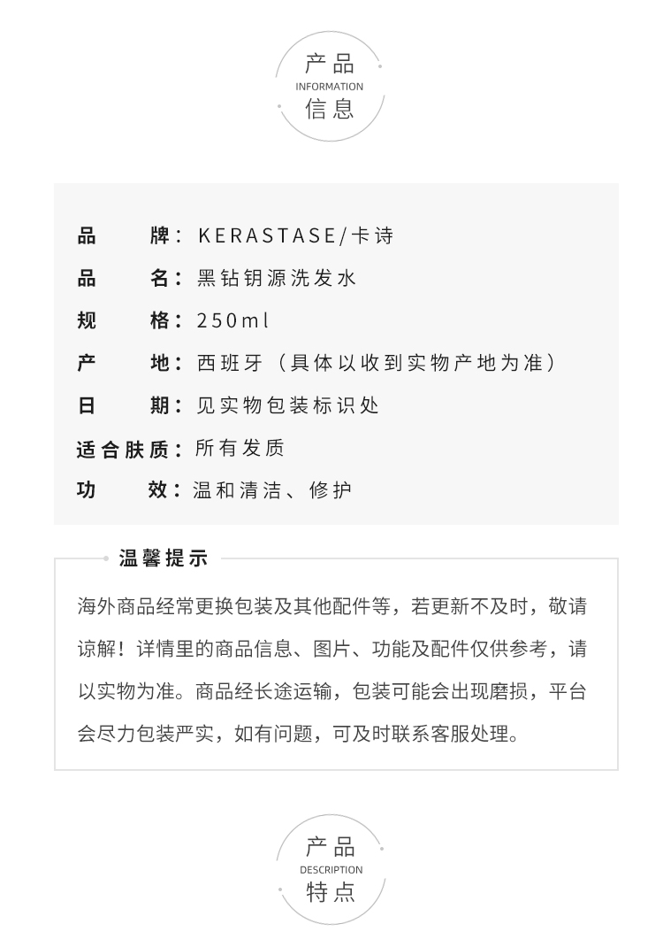 卡诗黑钻钥源/元气姜洗发露柔顺护发修护留香滋润洗发水250ml