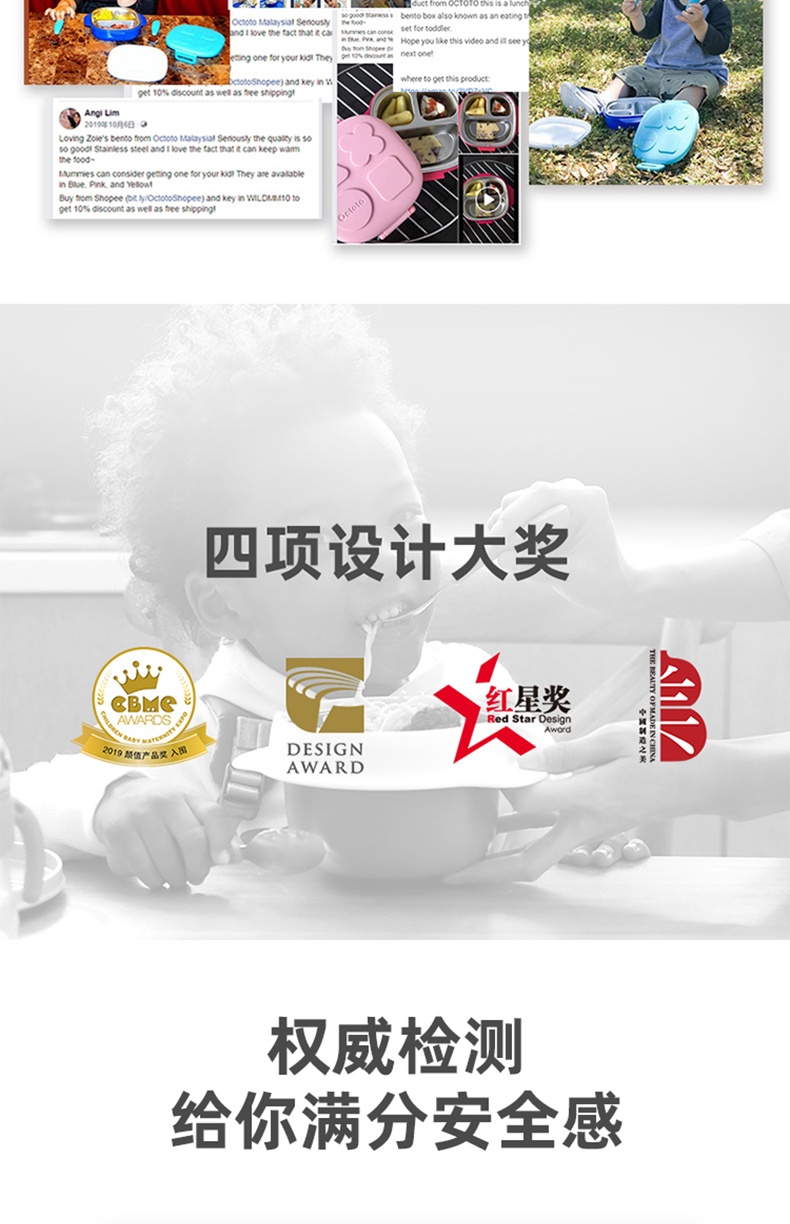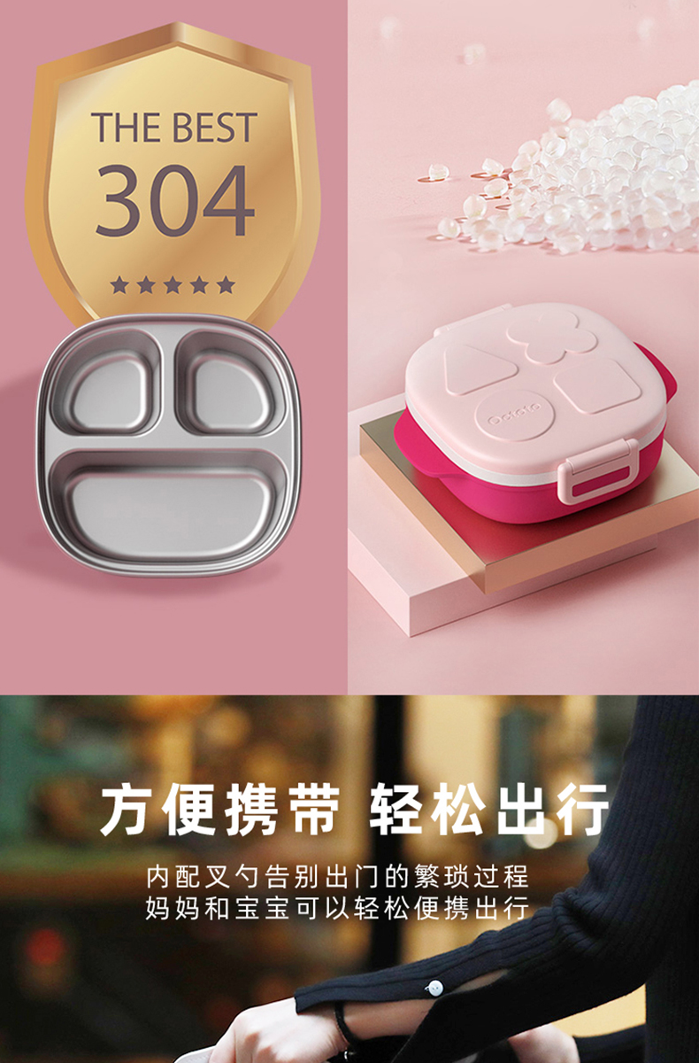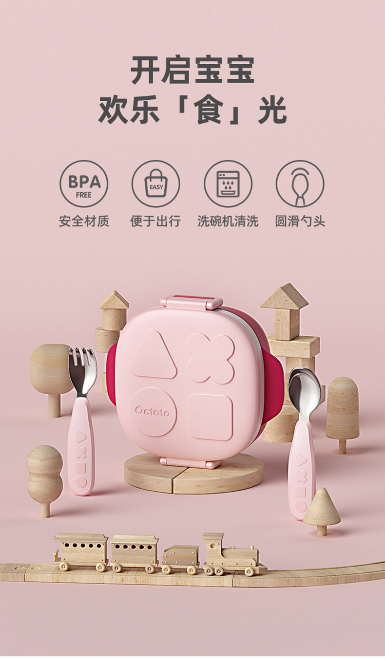 octoto奥克兔兔儿童餐具套装宝宝餐盘保温不锈钢外出便携碗餐盒