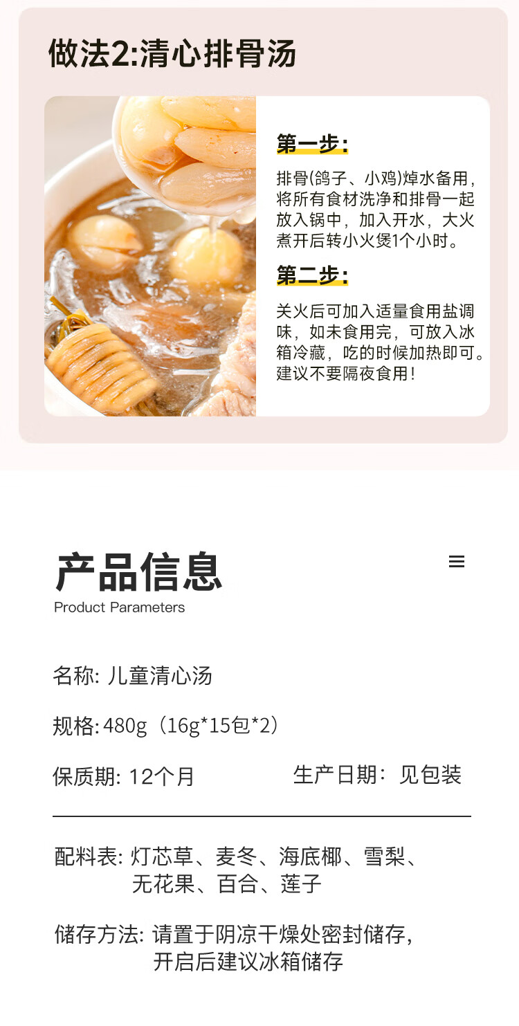 草木方 清心汤480g 灯芯草雪梨海底椰麦冬无花果材料