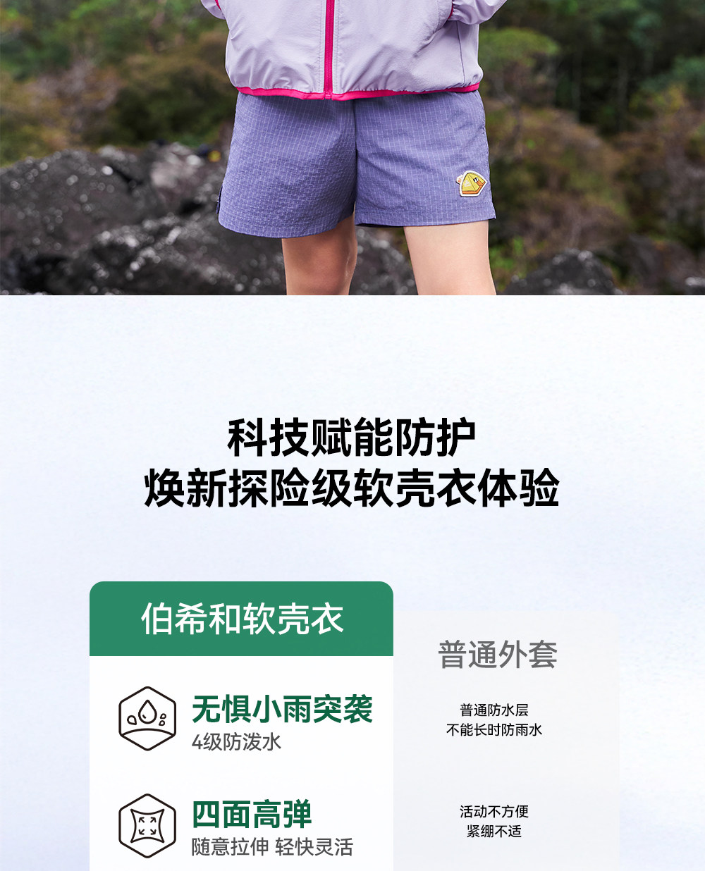 伯希和户外软壳衣男童新款CORDURA耐磨防风防泼水徒步冲锋衣女童