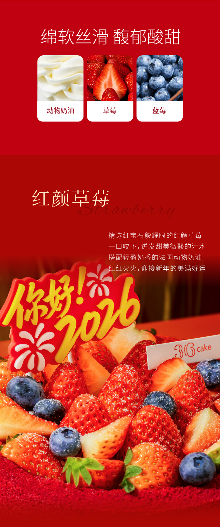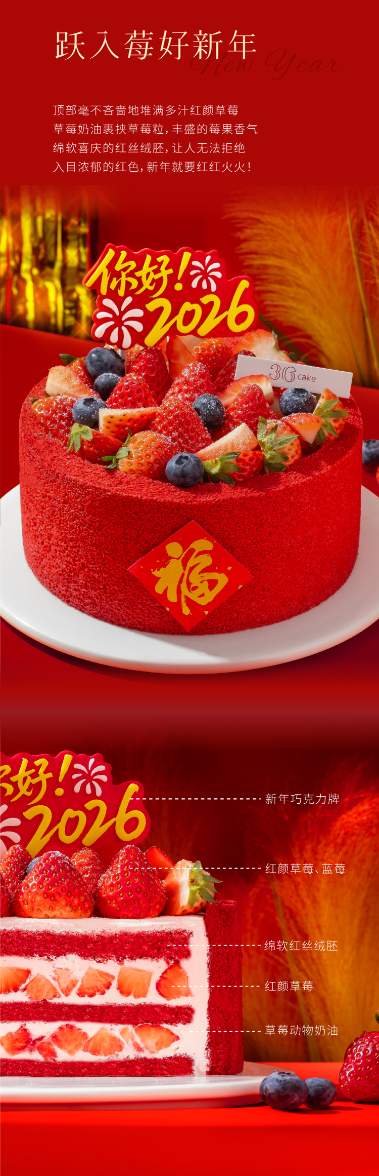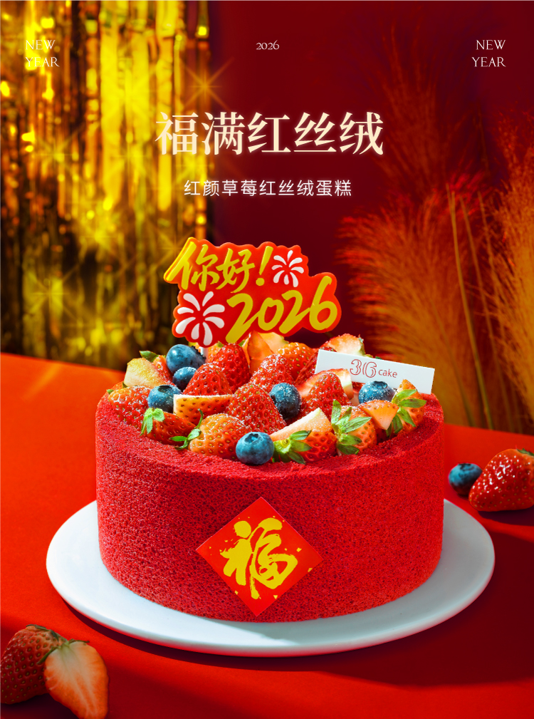 福满红丝绒・红颜草莓红丝绒蛋糕,可选1.5/2.5/6磅 | 36 CAKE