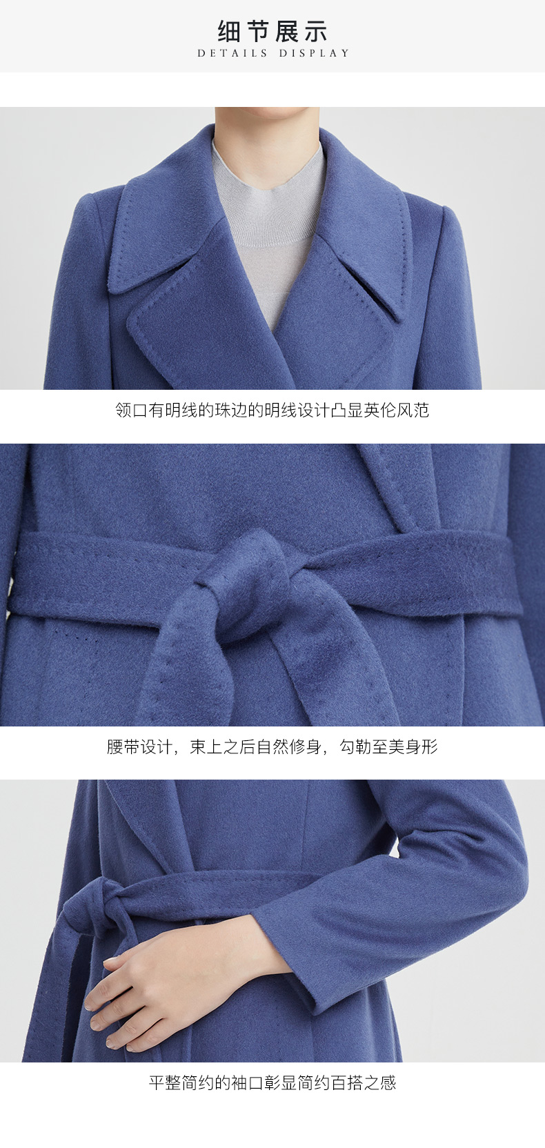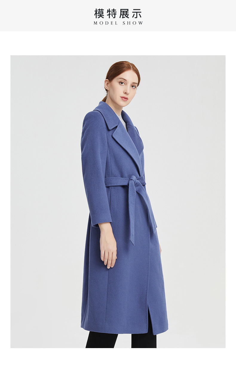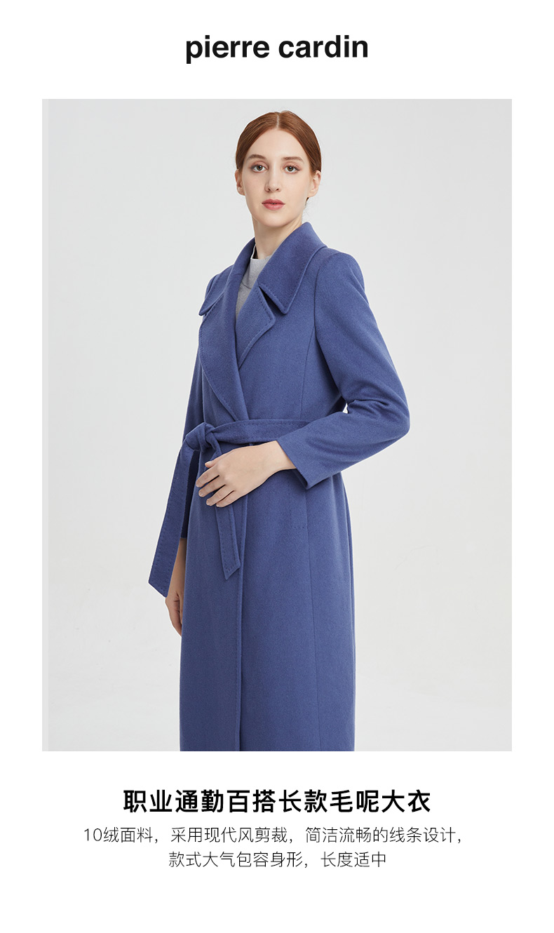 皮尔卡丹女装大衣长款羊绒修身通勤保暖羊绒羊毛外套P1453C1999L2