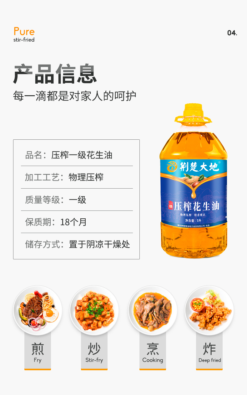 一级花生油荆楚大地5L/桶