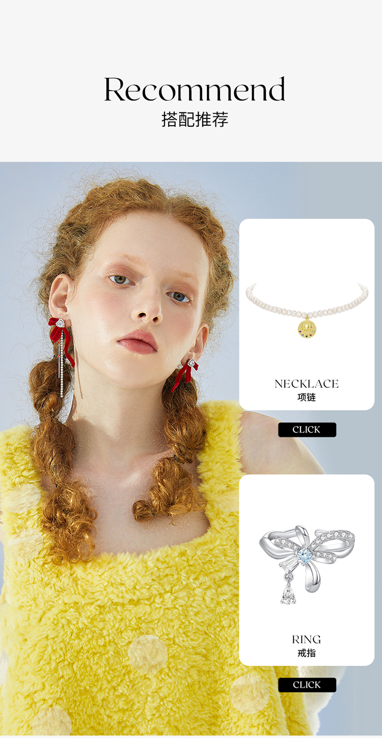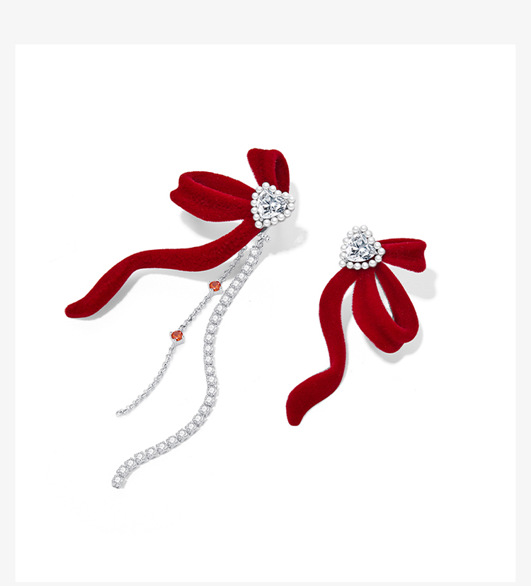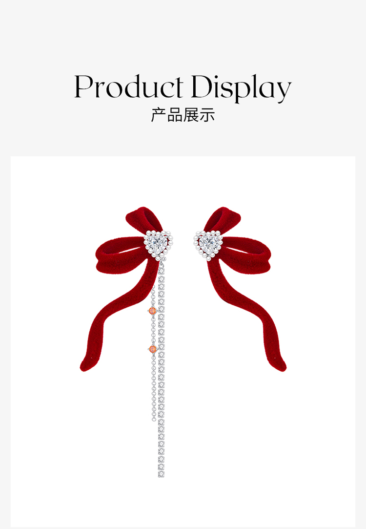 ZEGL设计师本命年兔系列红色丝绒耳环女秋冬流苏耳钉925银针耳饰
