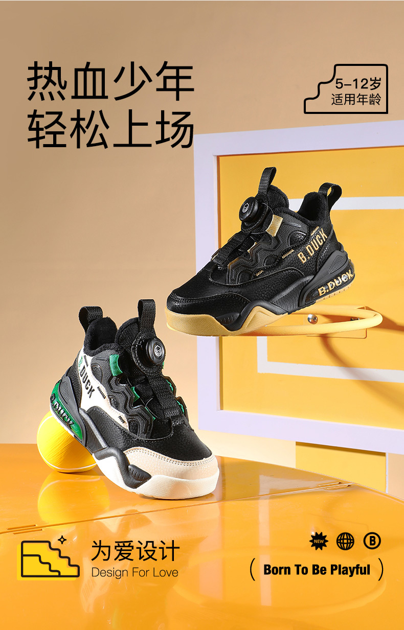 B.DUCK小黄鸭童鞋冬季男童篮球鞋28-37 B5485006
