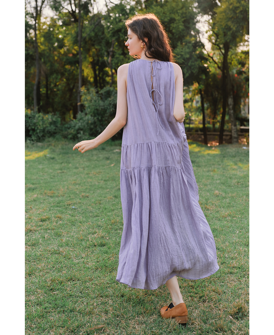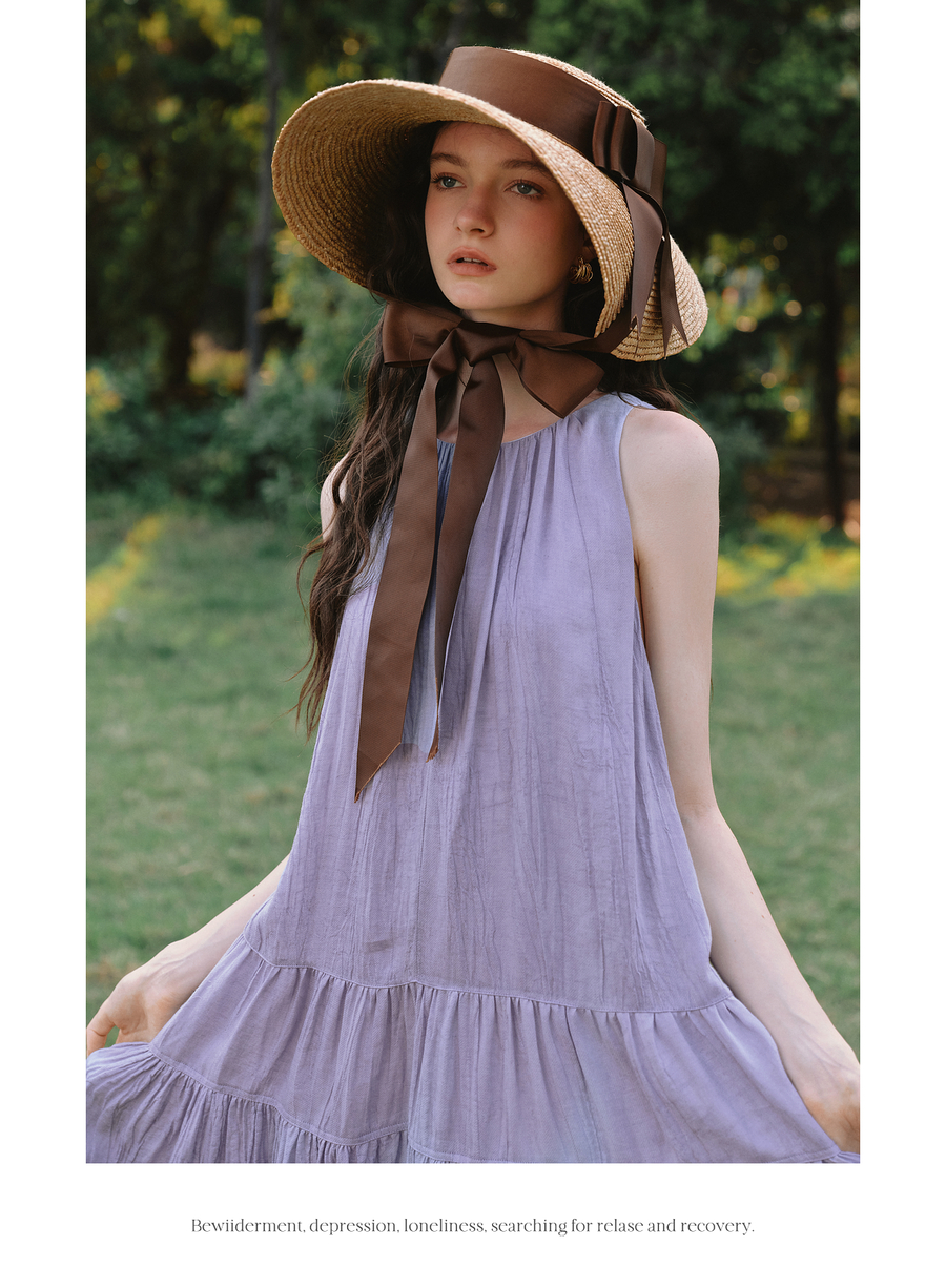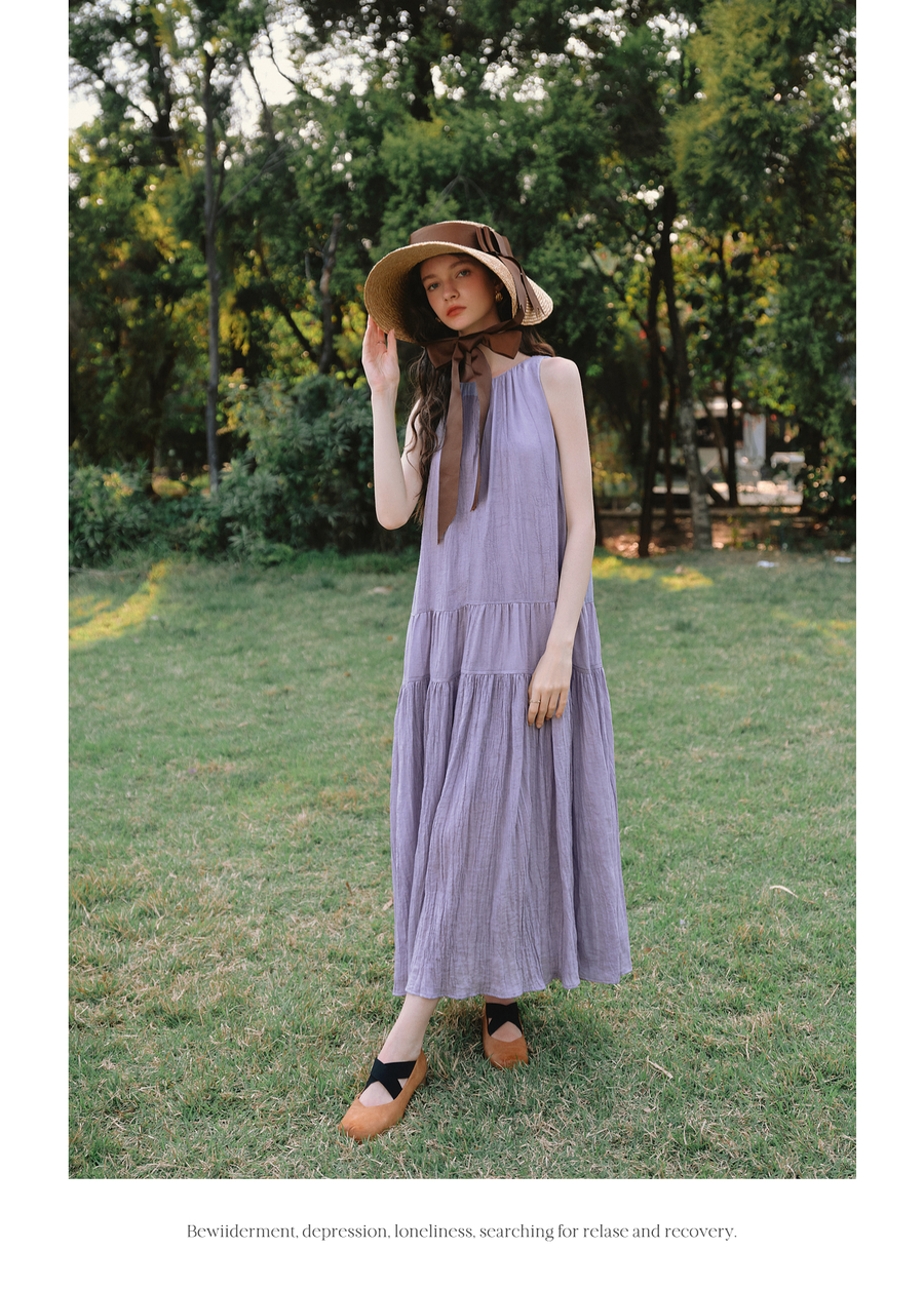 OLrain欧芮儿紫色无袖长款度假连衣裙女夏季2025新款宽松绝美长裙