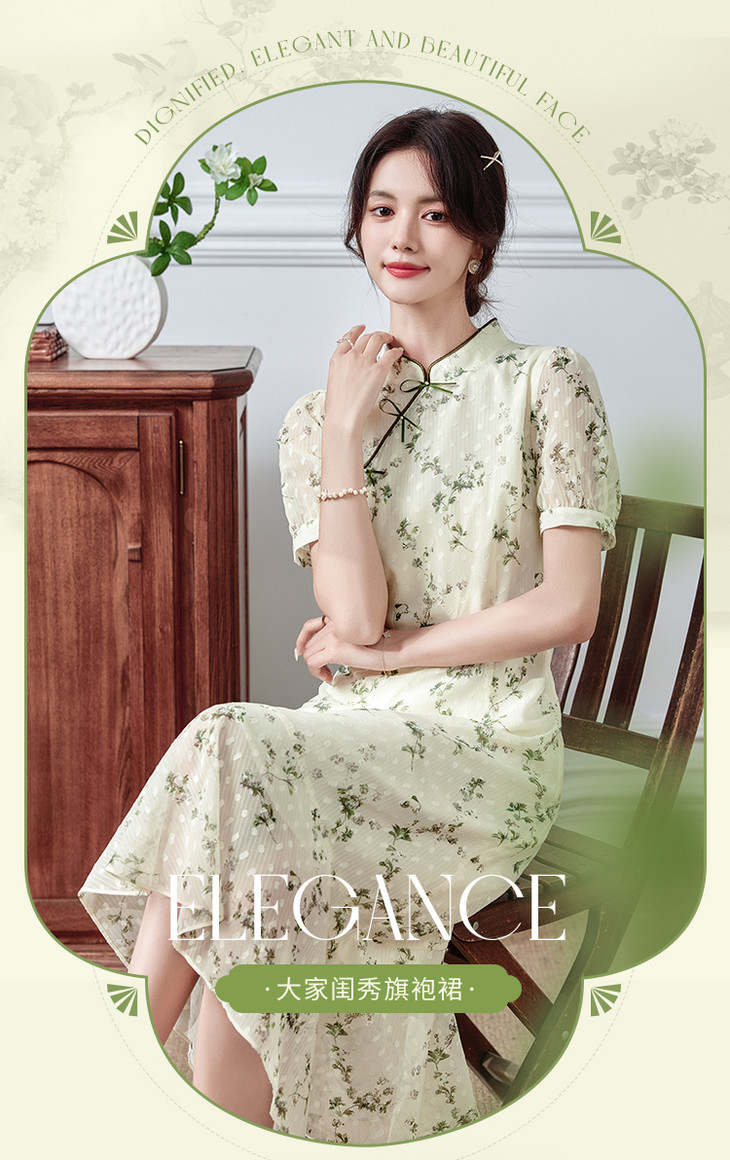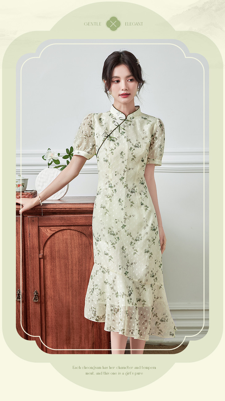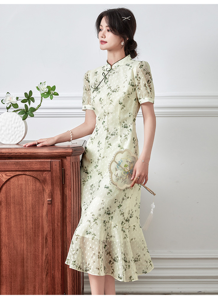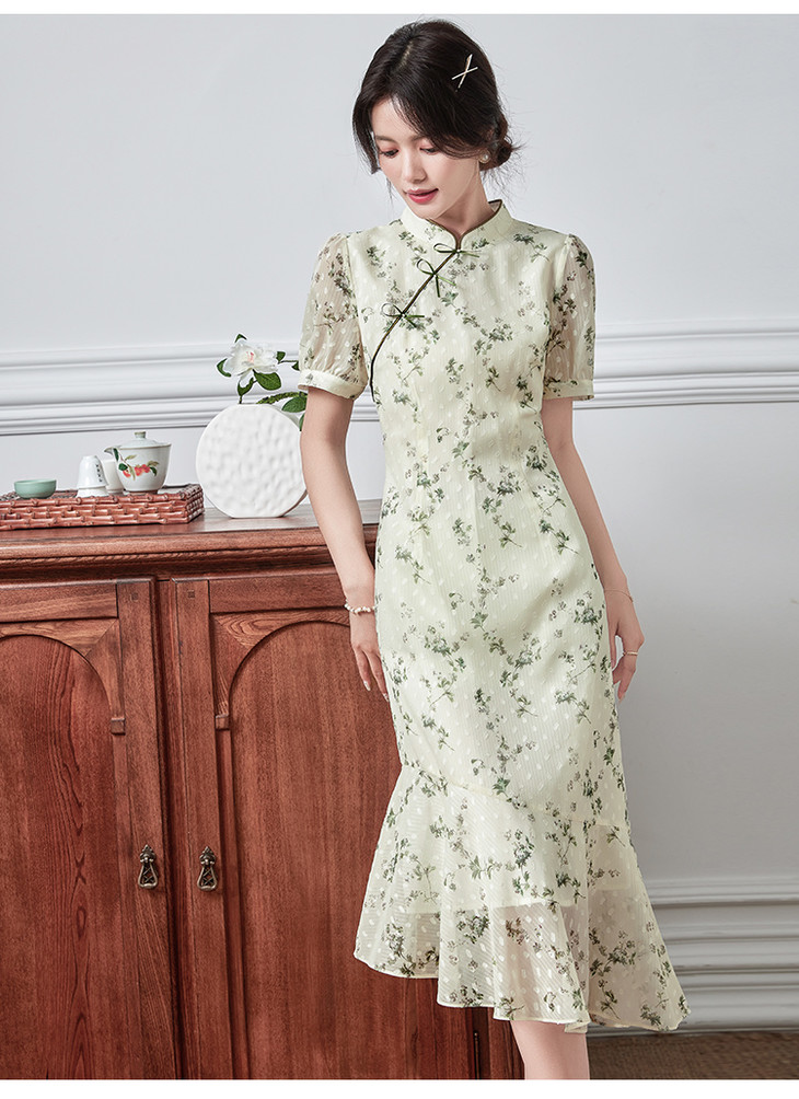 【专属特价】旗袍连衣裙女夏季新款改良版国风复古碎花鱼尾雪纺裙子