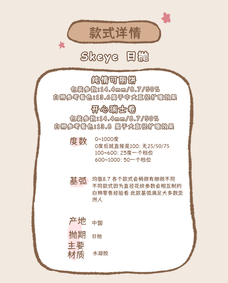 Skeye日抛 · 开心瑞士卷&纯情可丽饼| 14.4mm白狮参考着色大直径 日抛