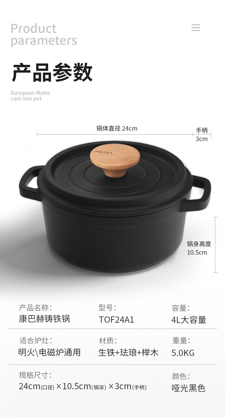 康巴赫 欧式珐琅汤锅24CM 珐琅铸铁/炉灶通用 TOF24A1JPY带授权招加盟代理