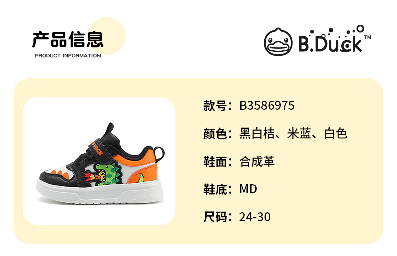 BDuck小黄鸭童鞋女童板鞋低帮春季小童儿童白色休闲童鞋24-32 B3586975