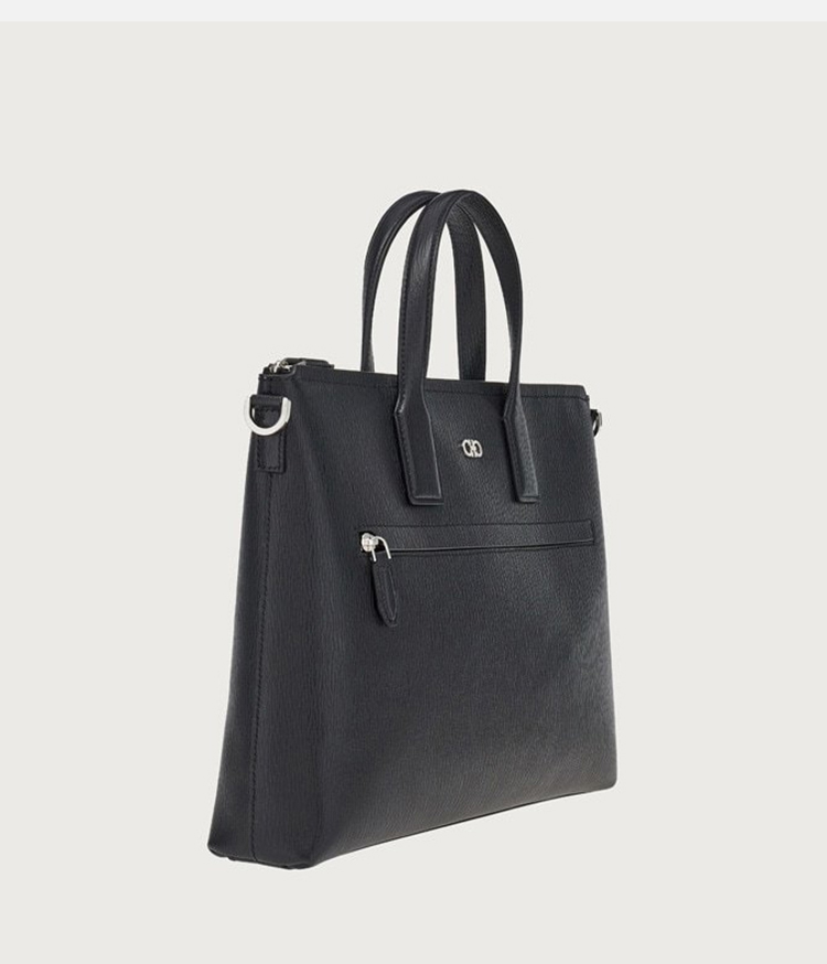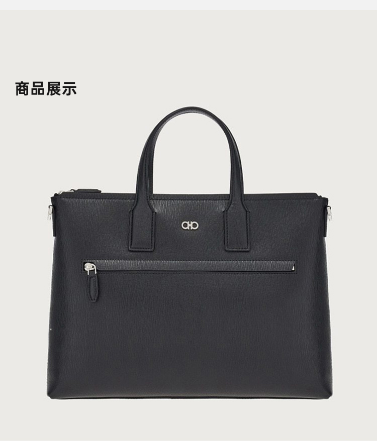 FERRAGAMO 菲拉格慕 男士锤纹小牛皮GANCINI公文包 黑色 24 1210 757916