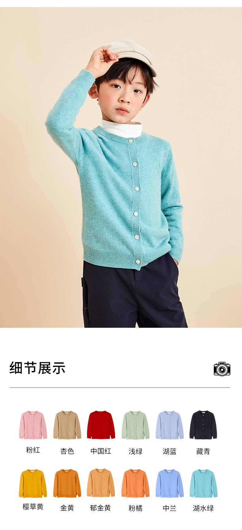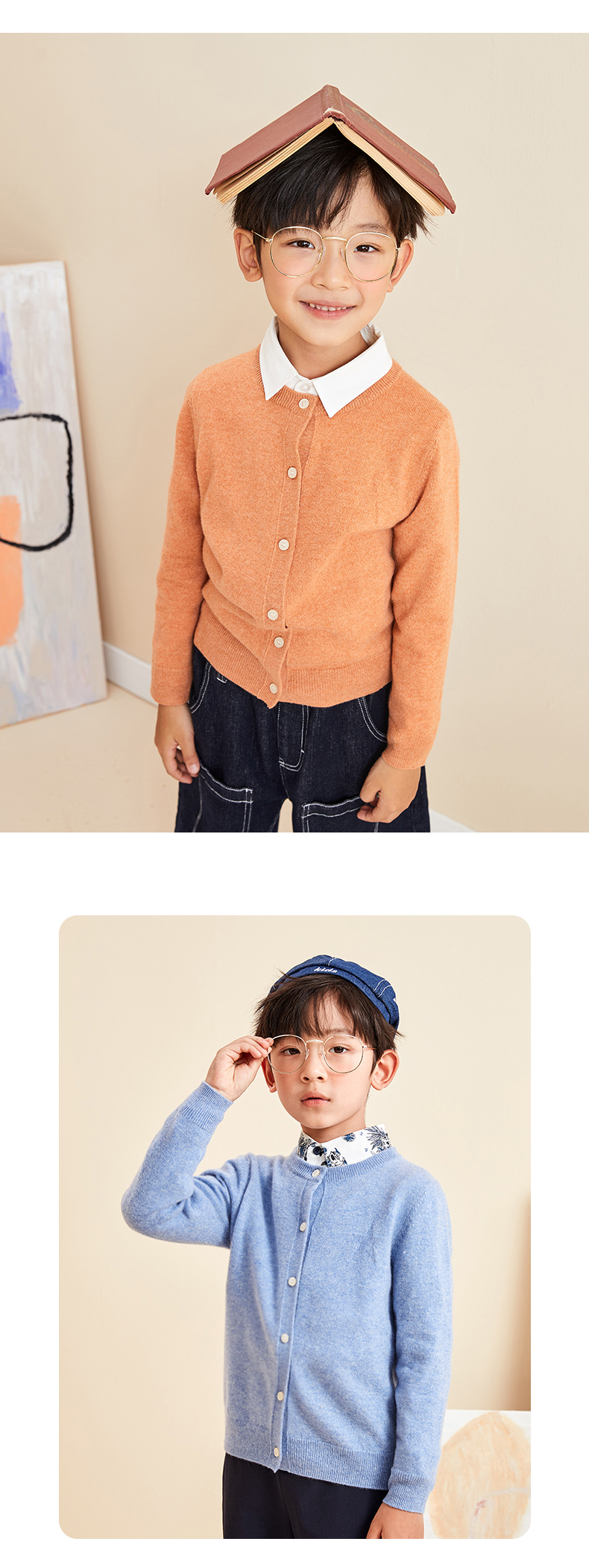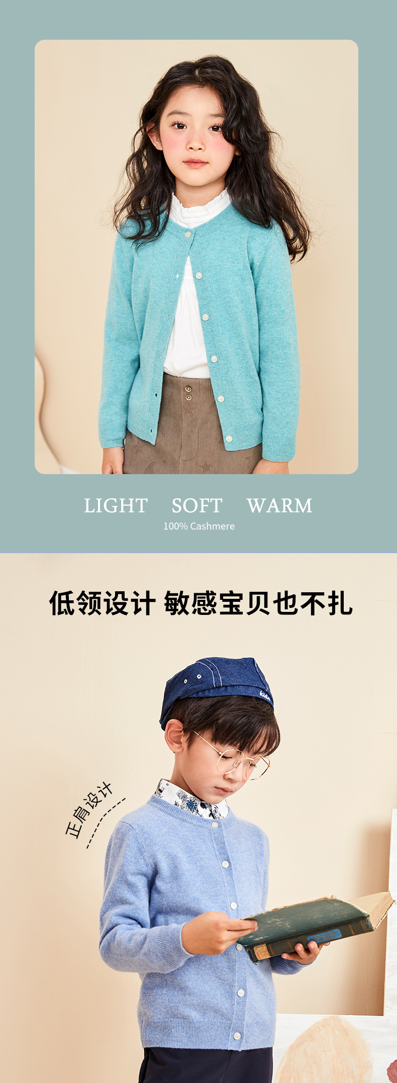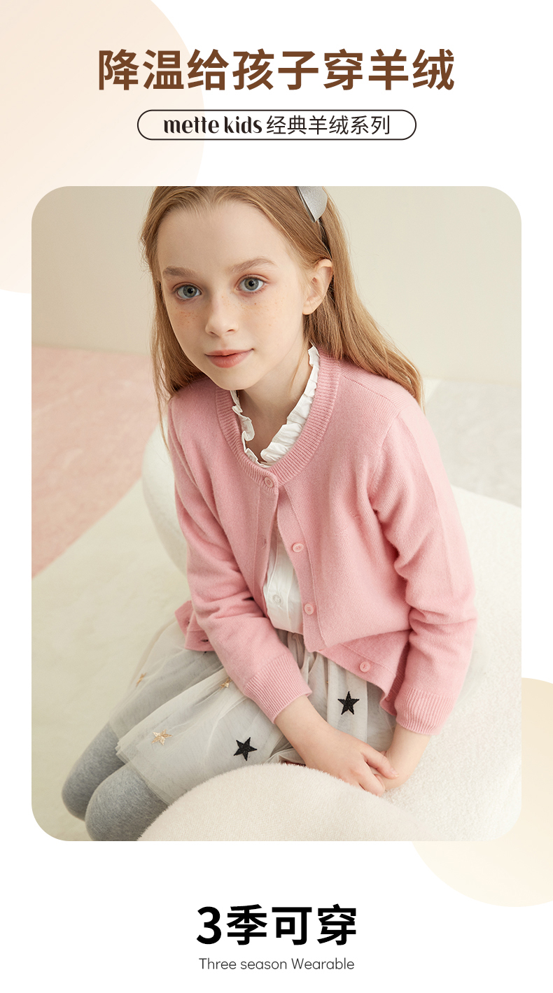 mettekids儿童羊绒衫春秋款轻薄打底男童毛衣大童女童开衫针织衫