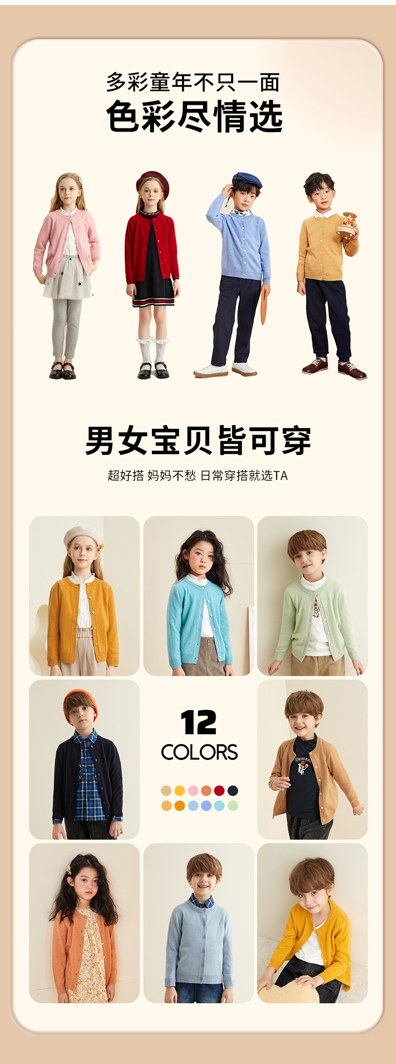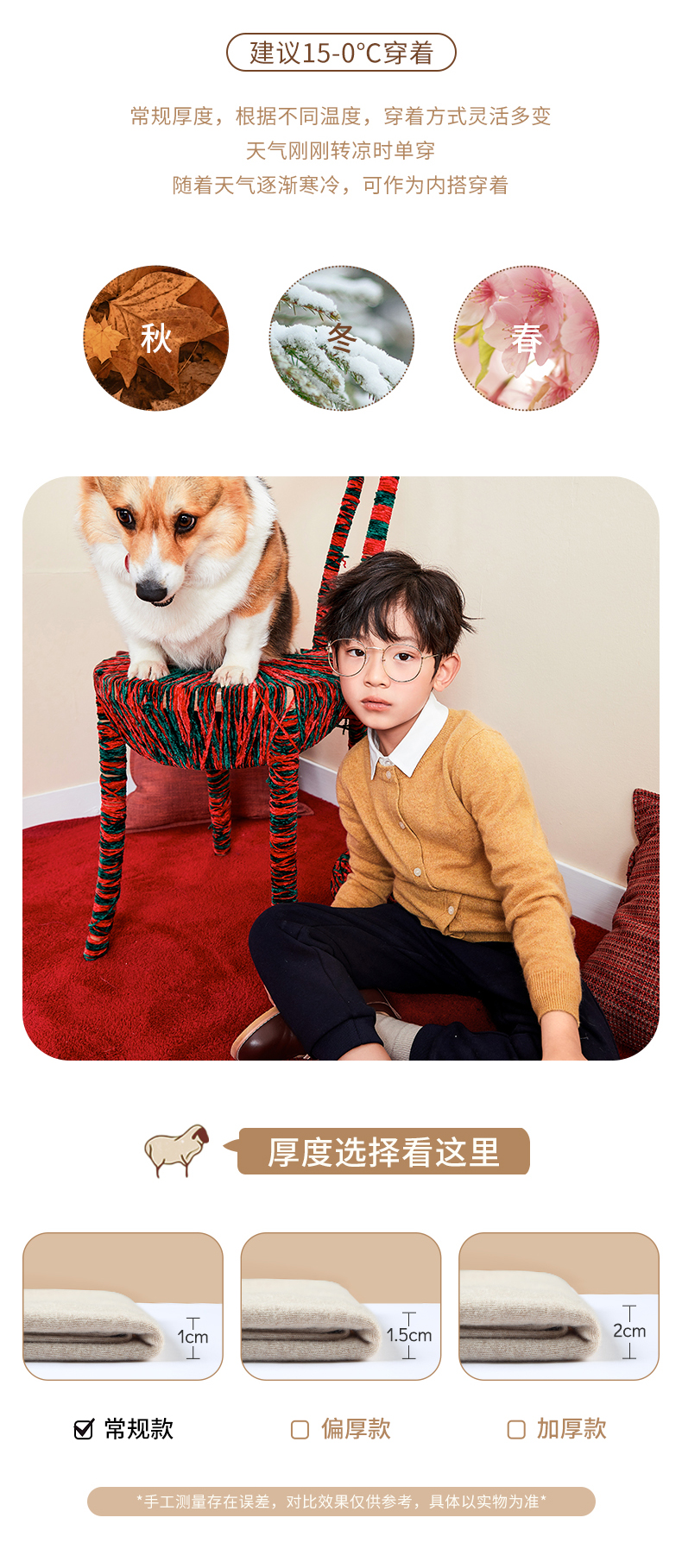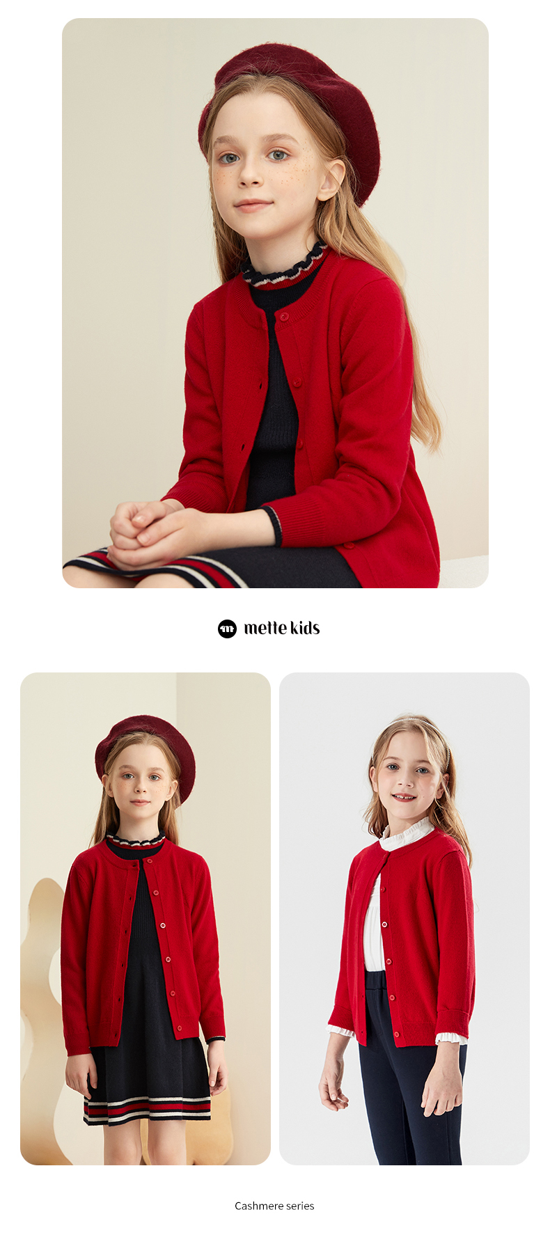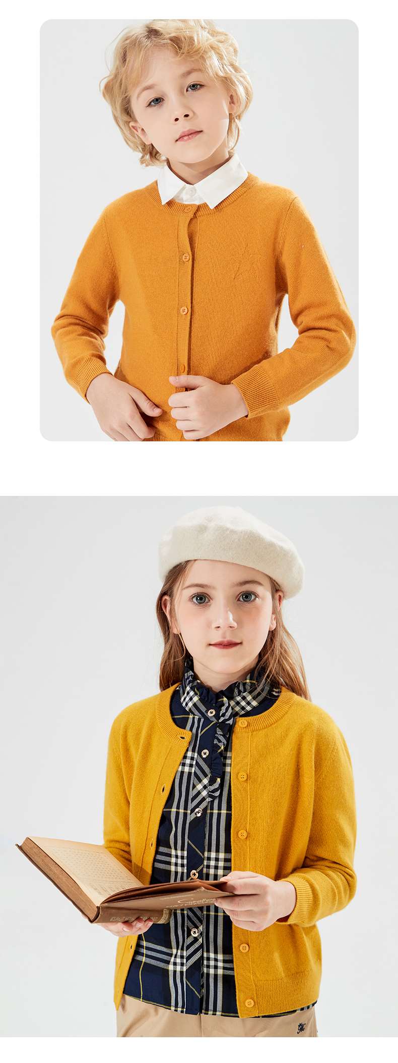 mettekids儿童羊绒衫春秋款轻薄打底男童毛衣大童女童开衫针织衫