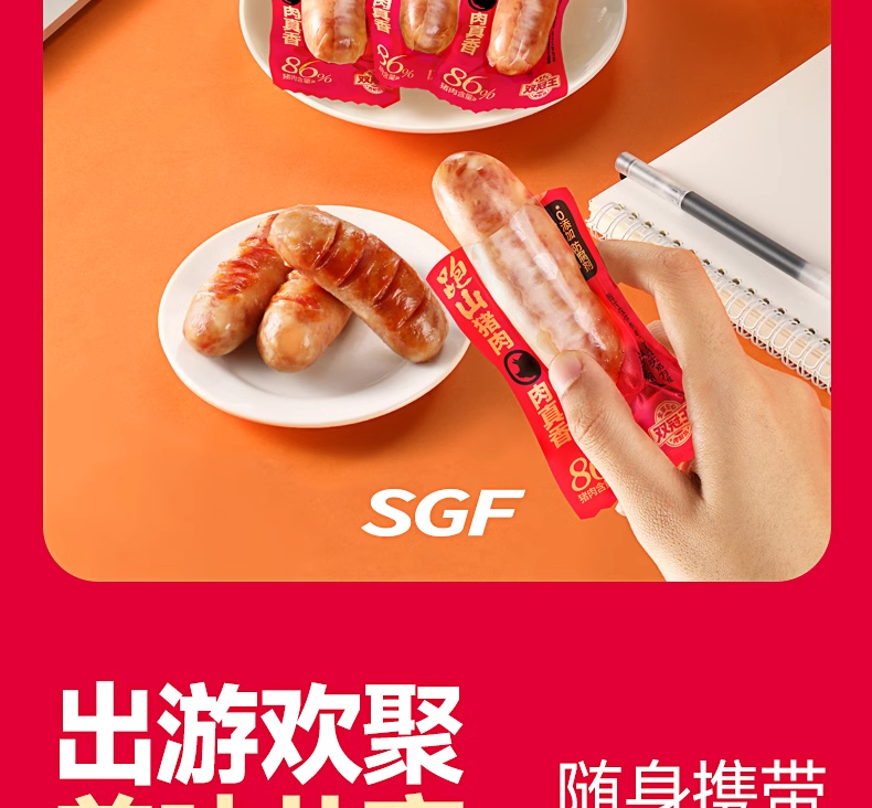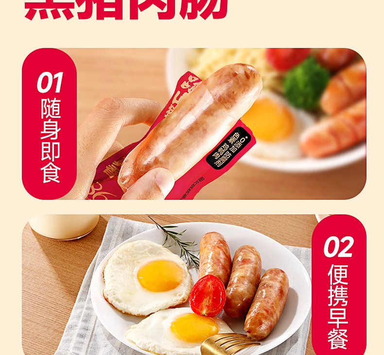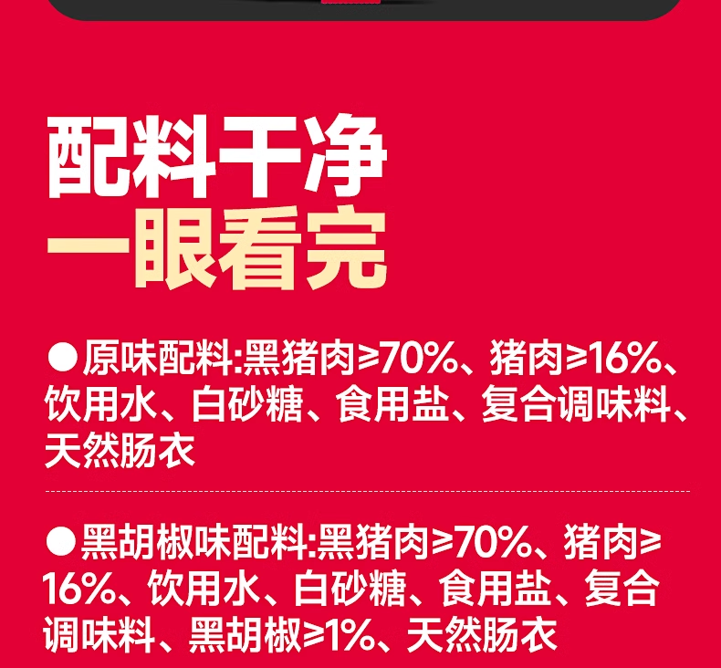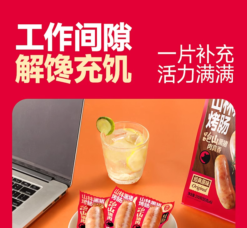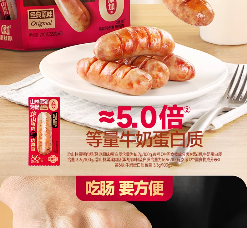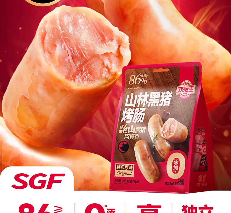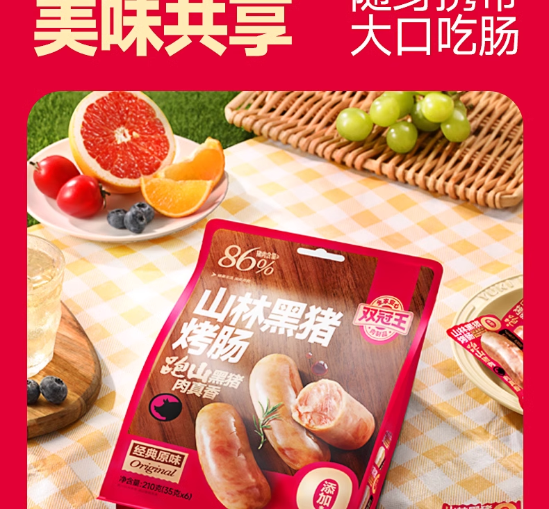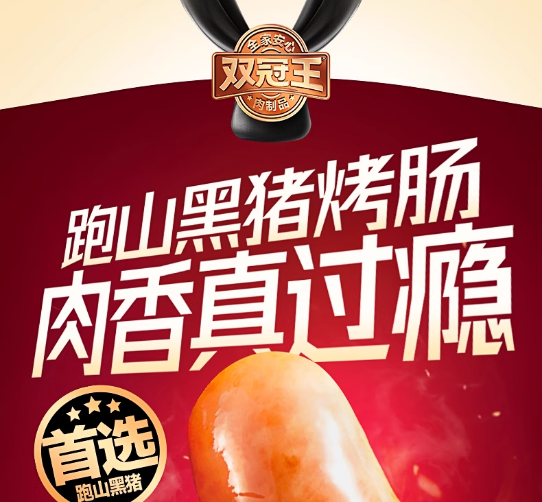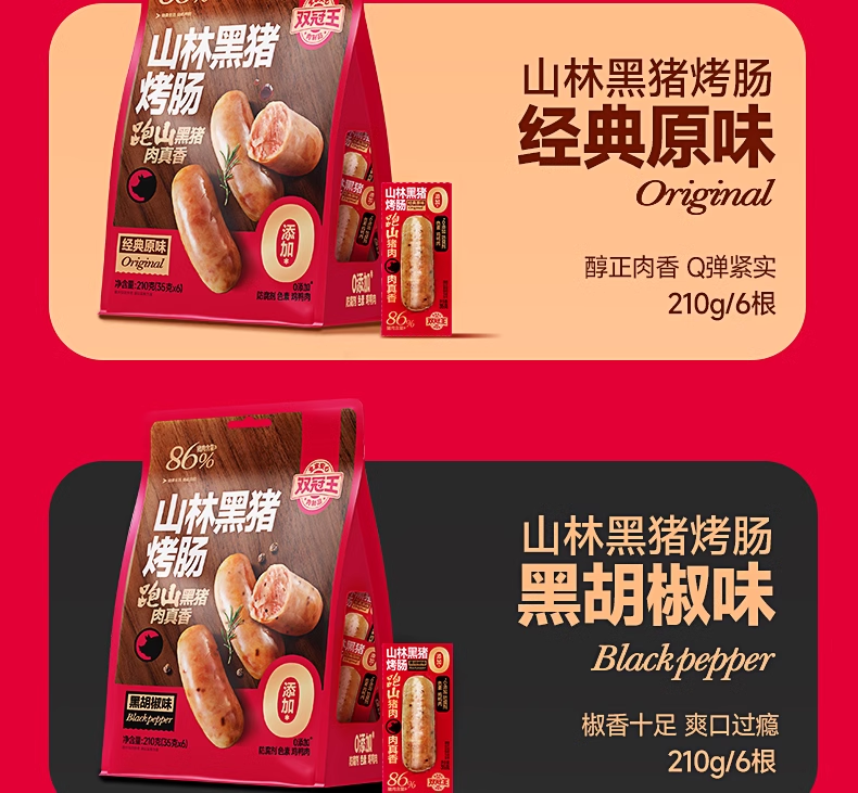 双冠王山林黑猪烤肠黑胡椒味210g/袋*3