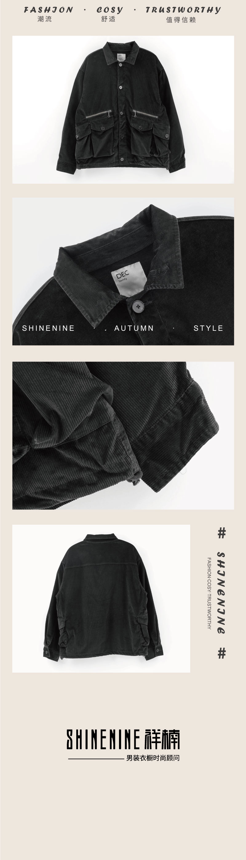 979172364多口袋拉链装饰短款潮流灯芯绒夹克